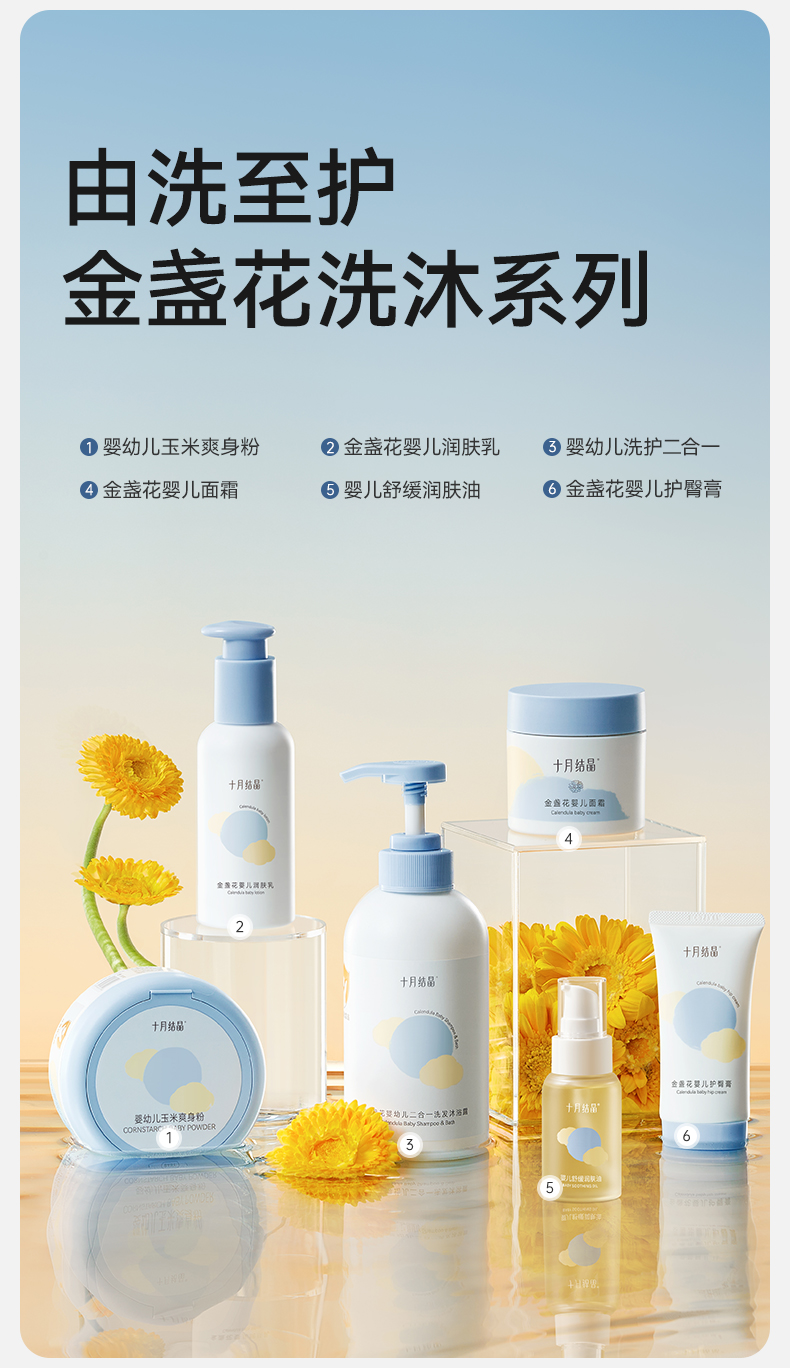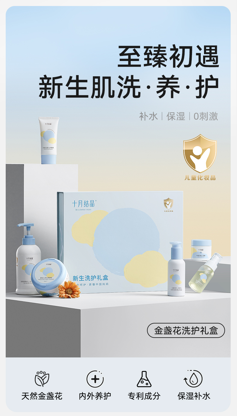 婴儿宝宝专用新生儿洗浴护肤乳护臀面霜爽身粉套装礼盒