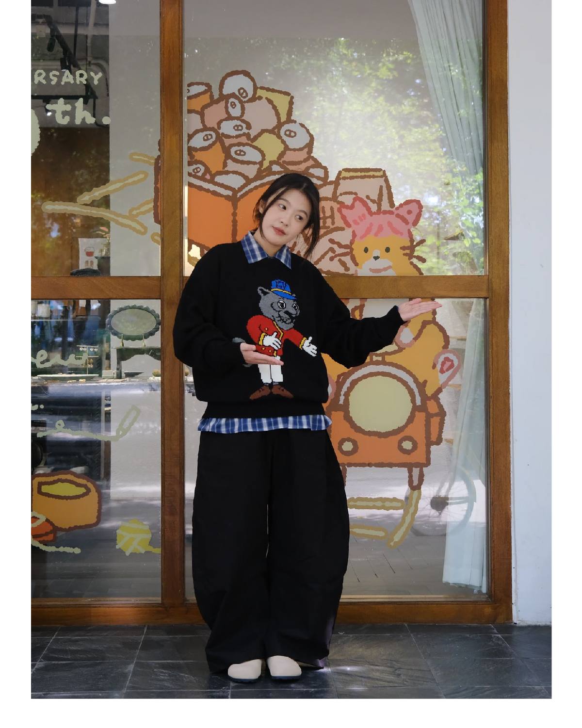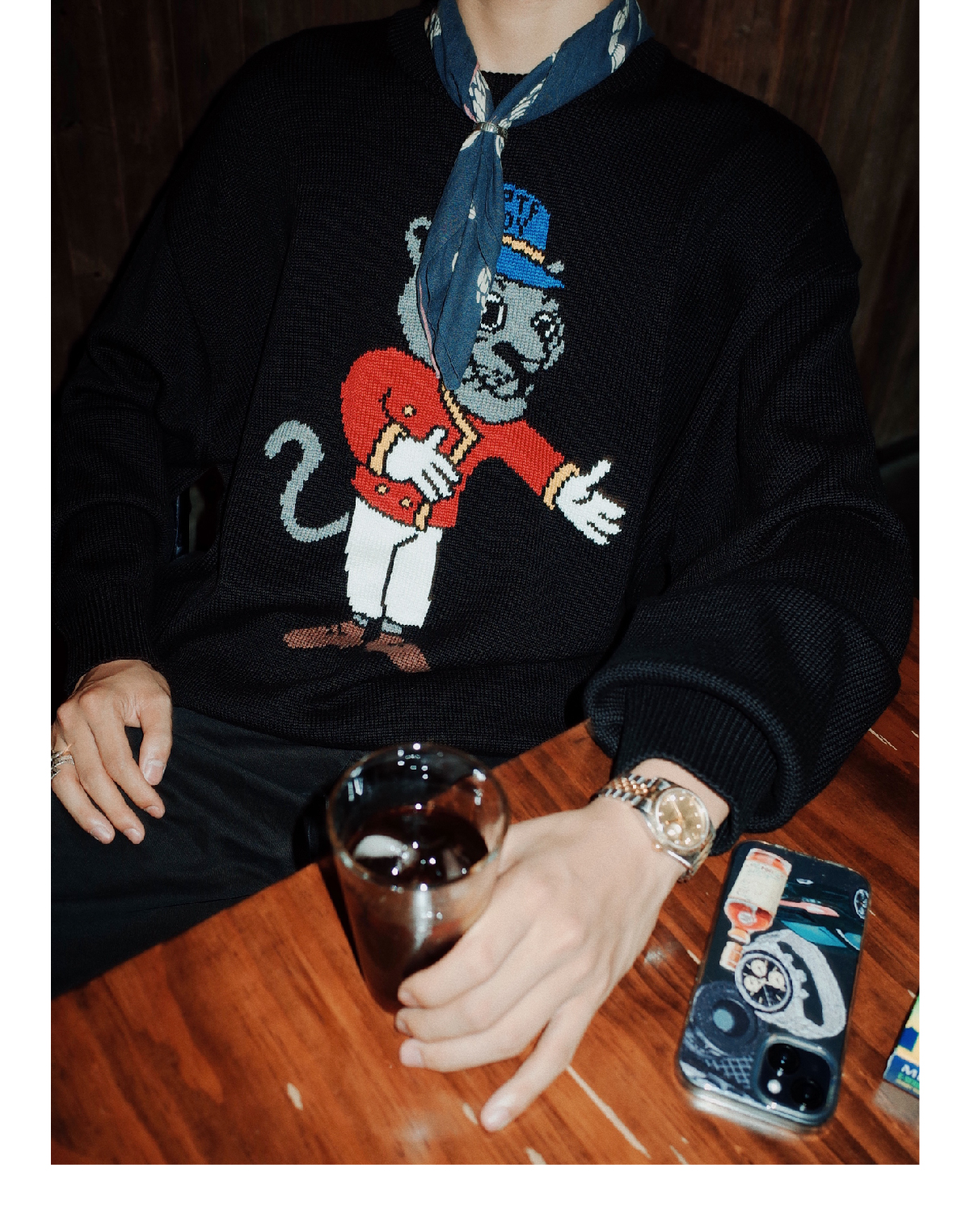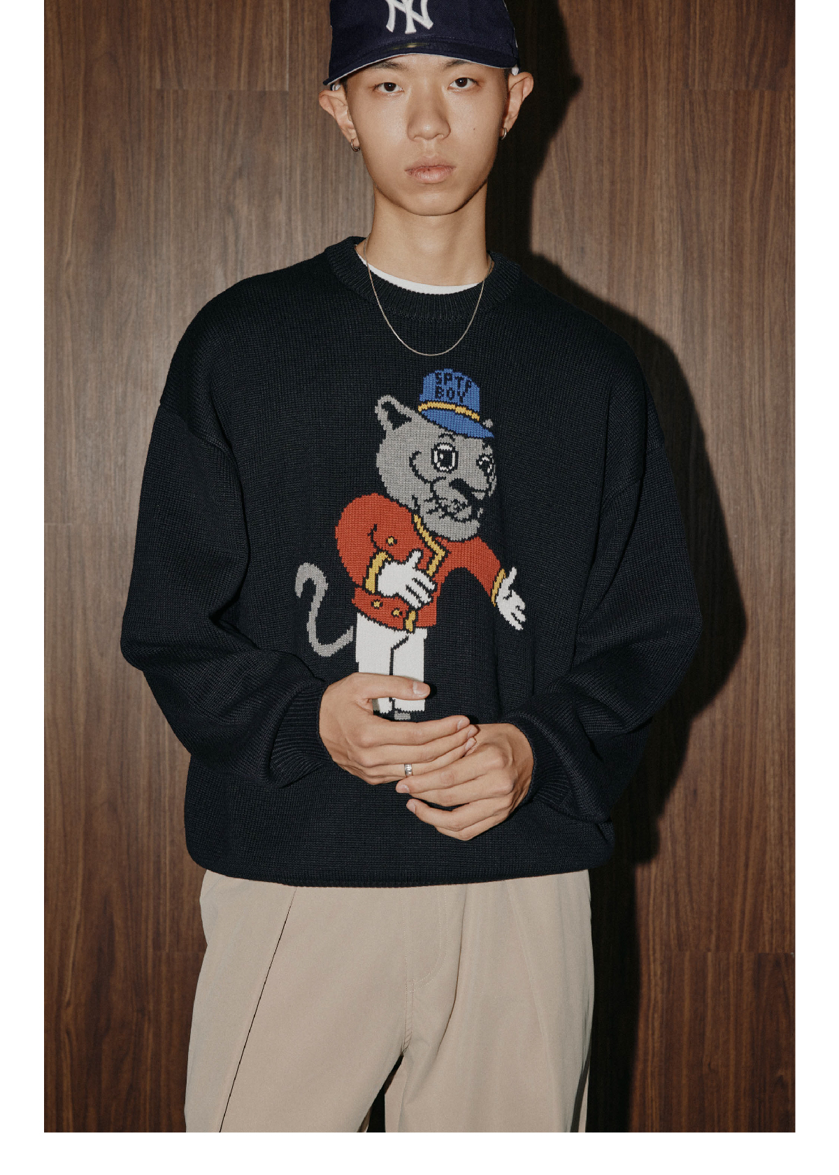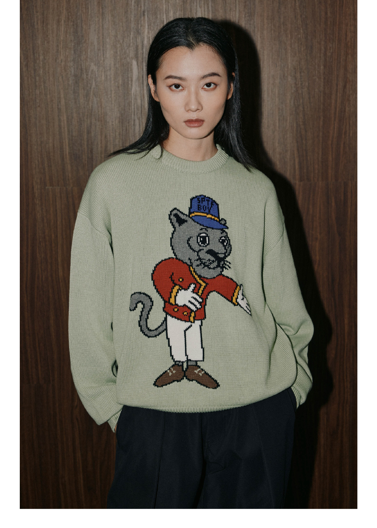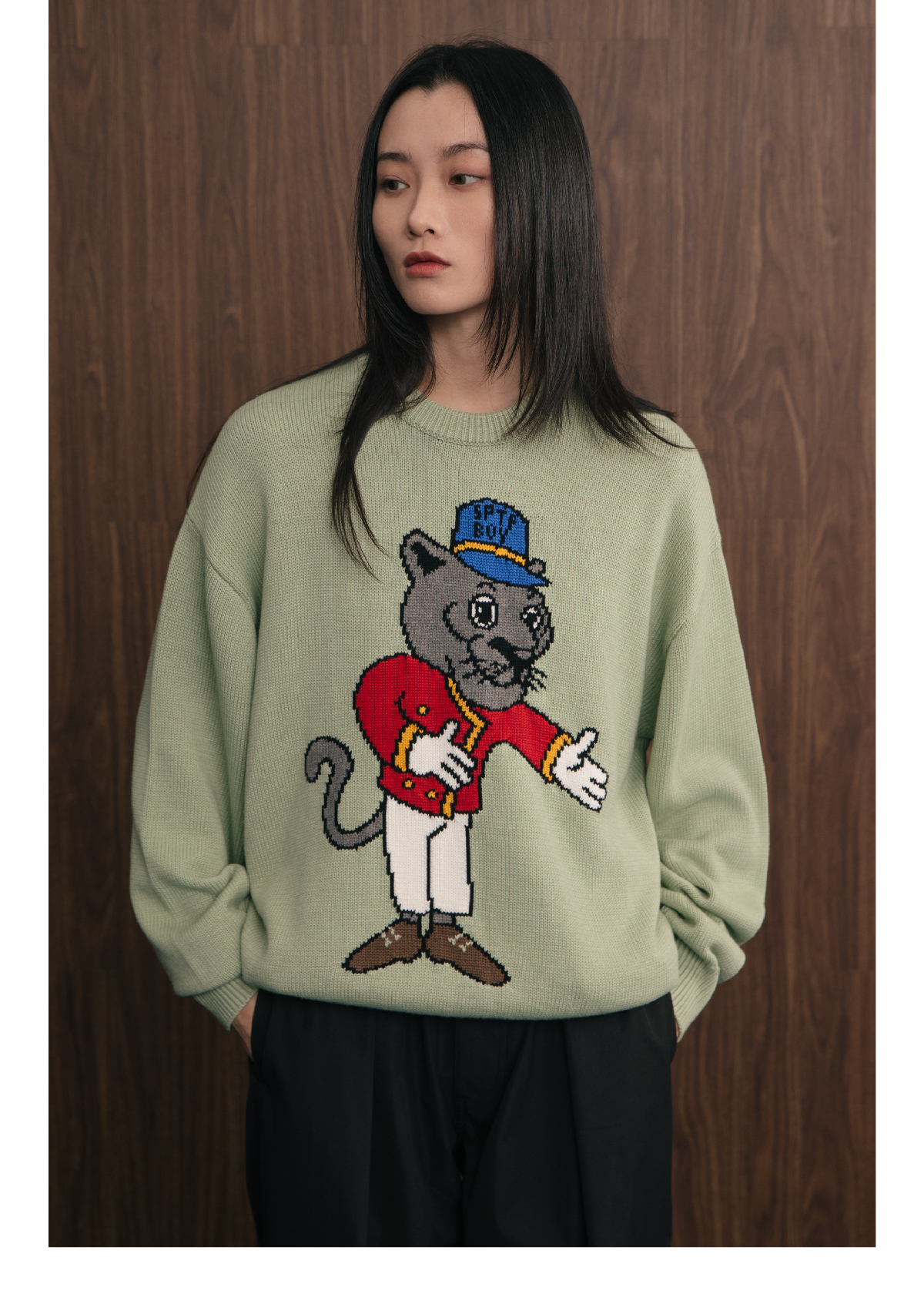 SUPERTOFU(SPTF)/WB-AW24-M003/黑豹门童 手绘图案 针织衫