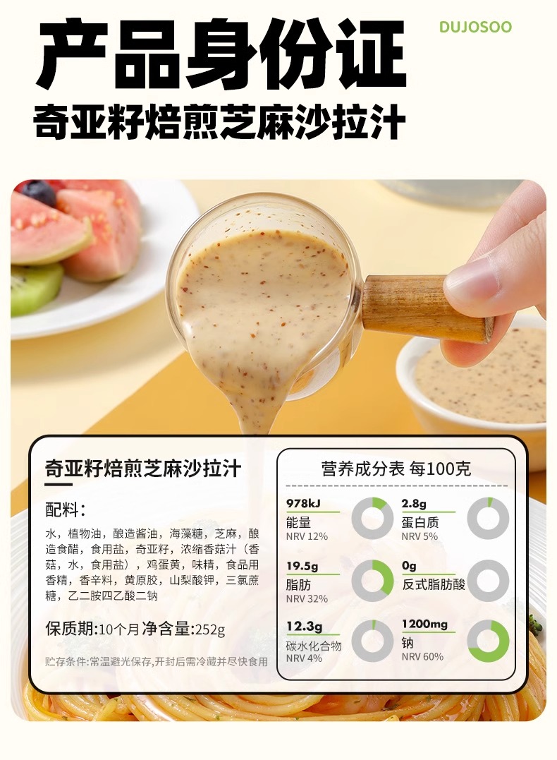 暴肌独角兽奇亚籽沙拉酱蔬菜水果蘸酱轻食健身调味酱清爽型沙拉汁