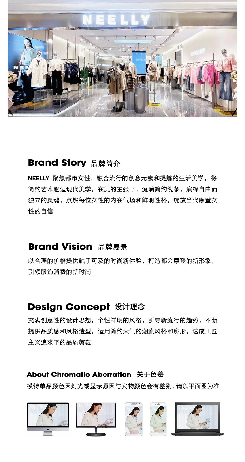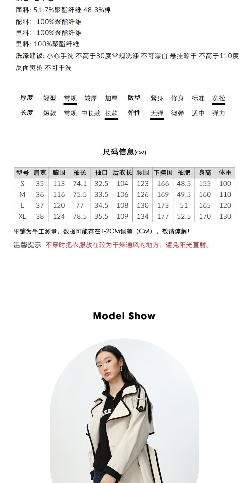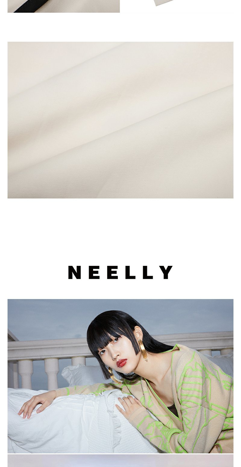 NEELLY纳俪商场同款撞色大翻领双排扣风衣女中长款收腰大衣百搭N23084F14412