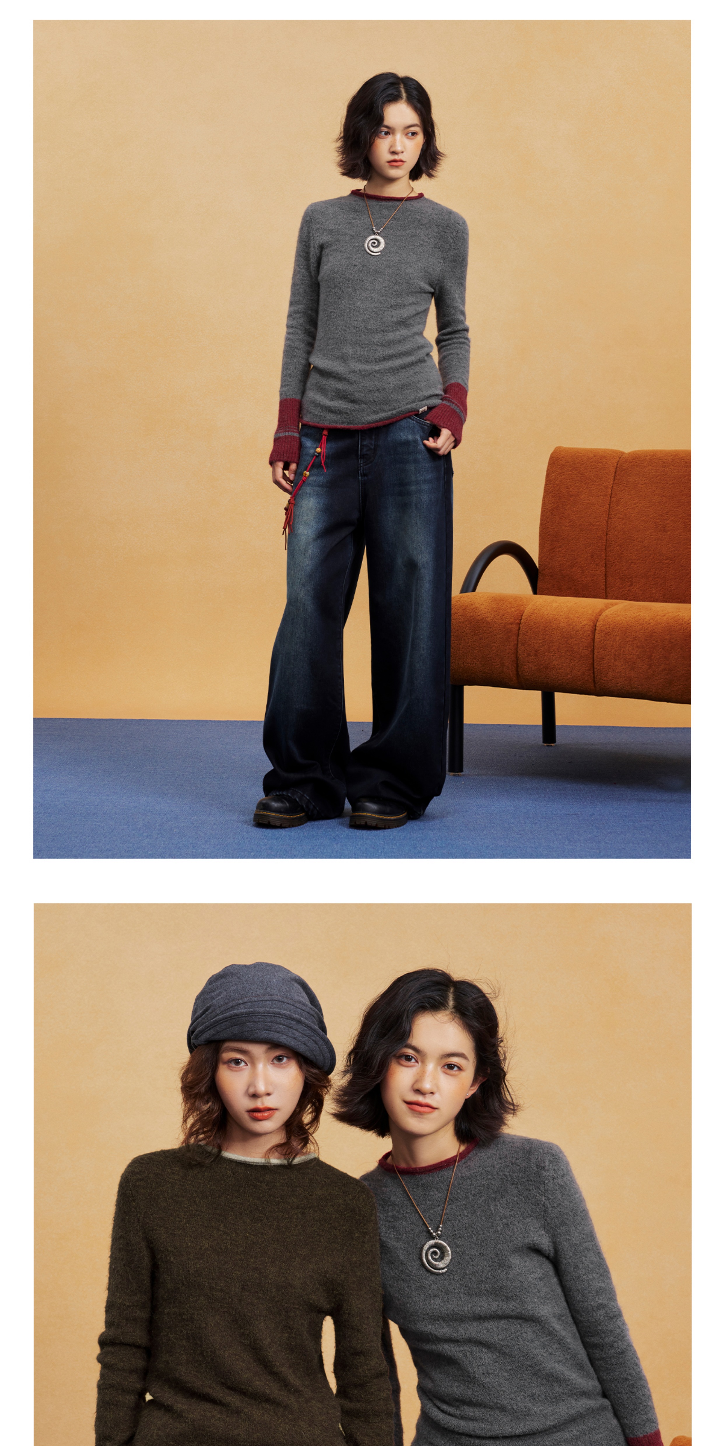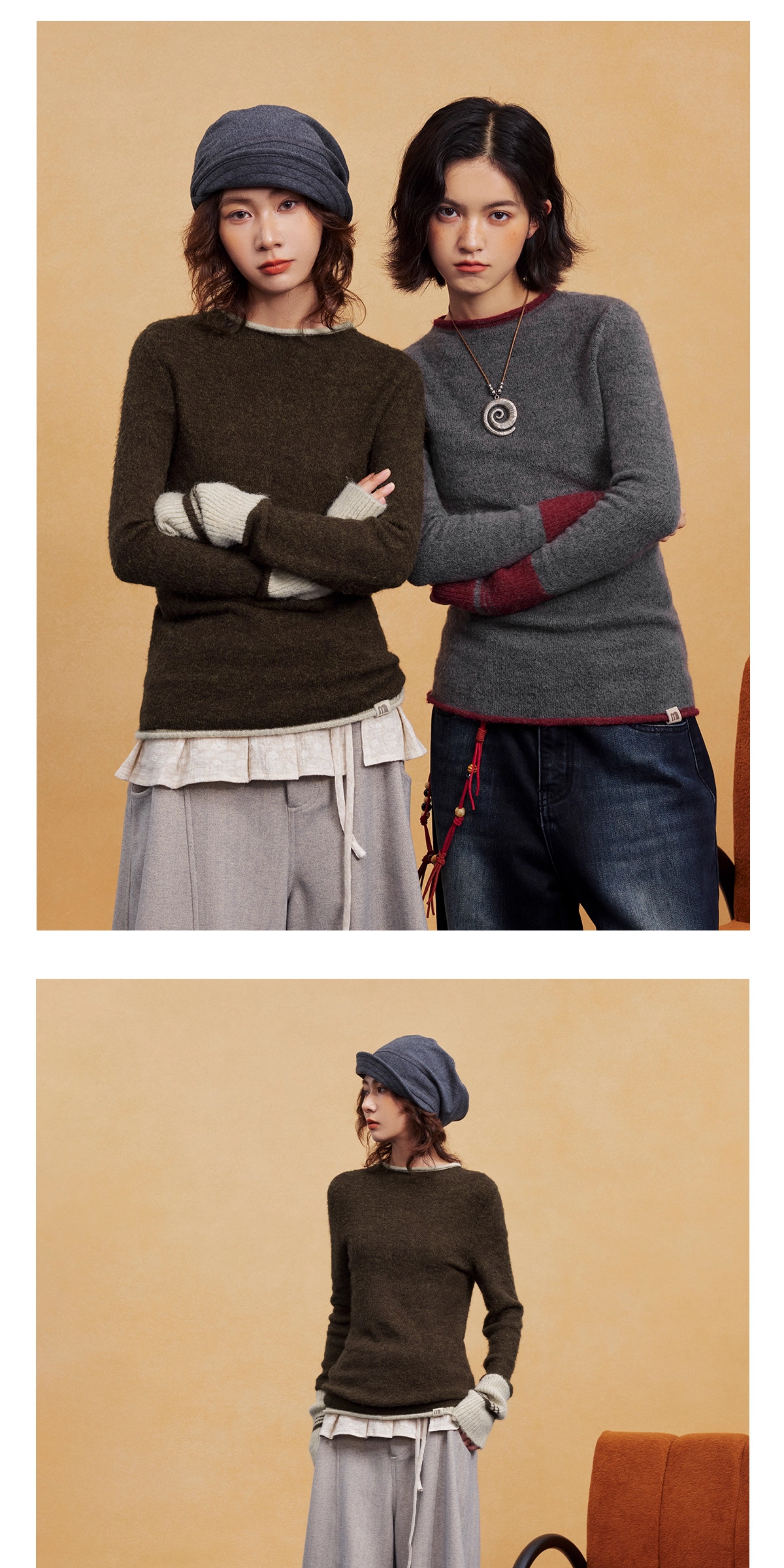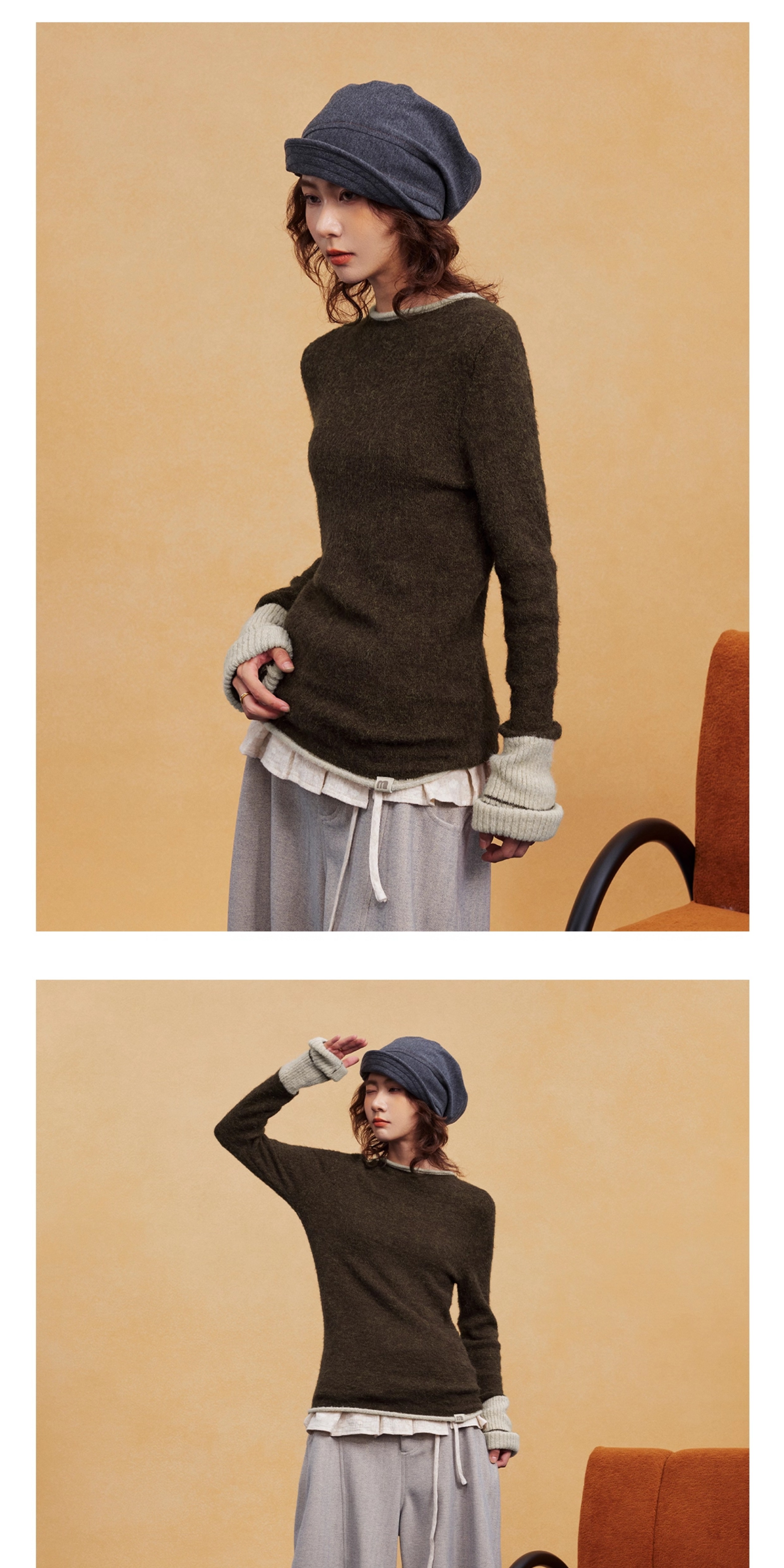 马得工地/MDGDMY14838/撞色假两件套头毛织打底