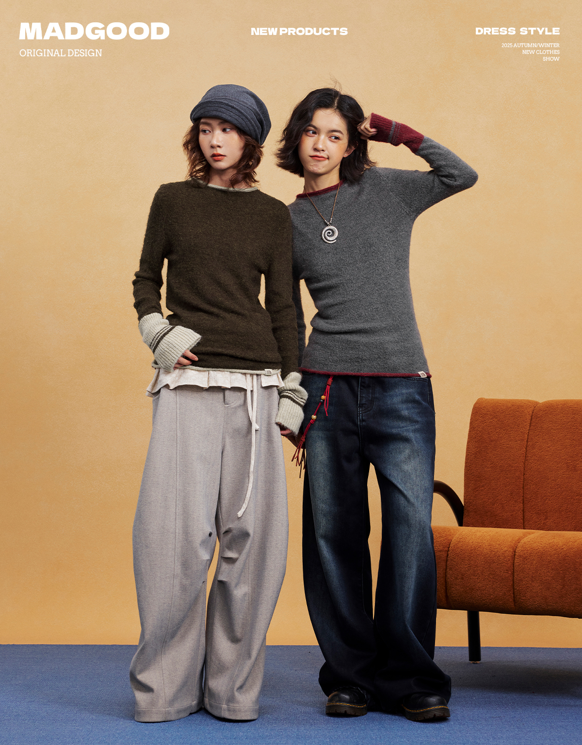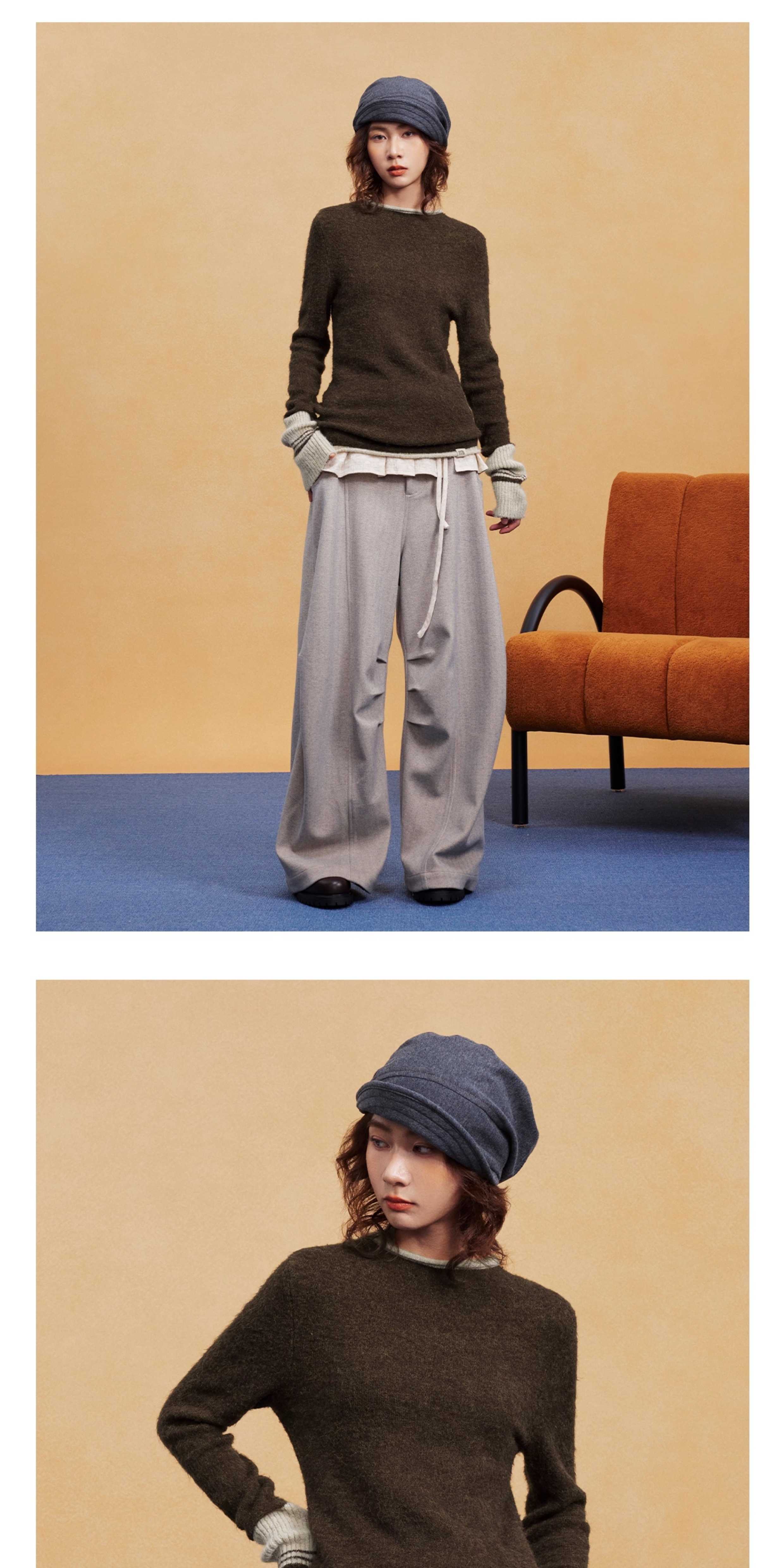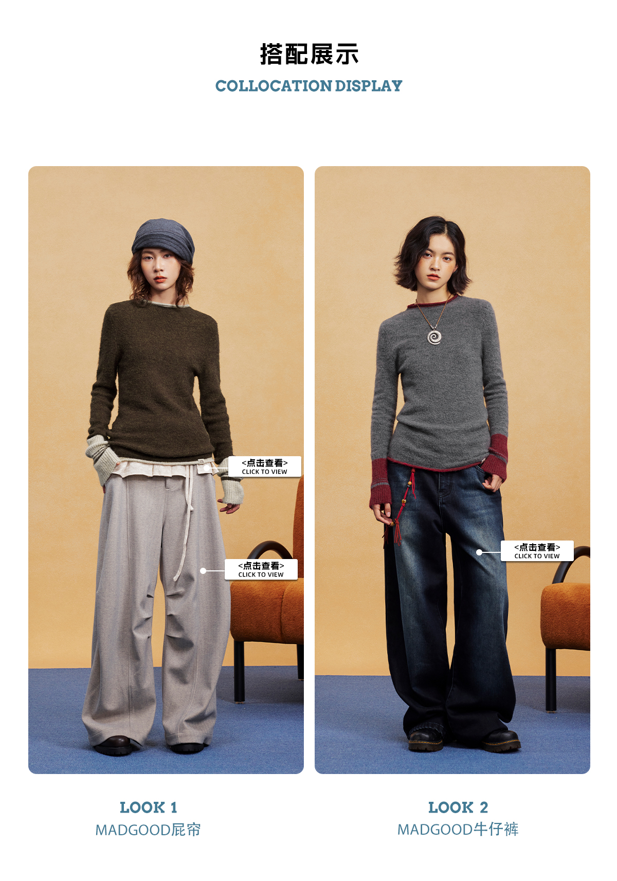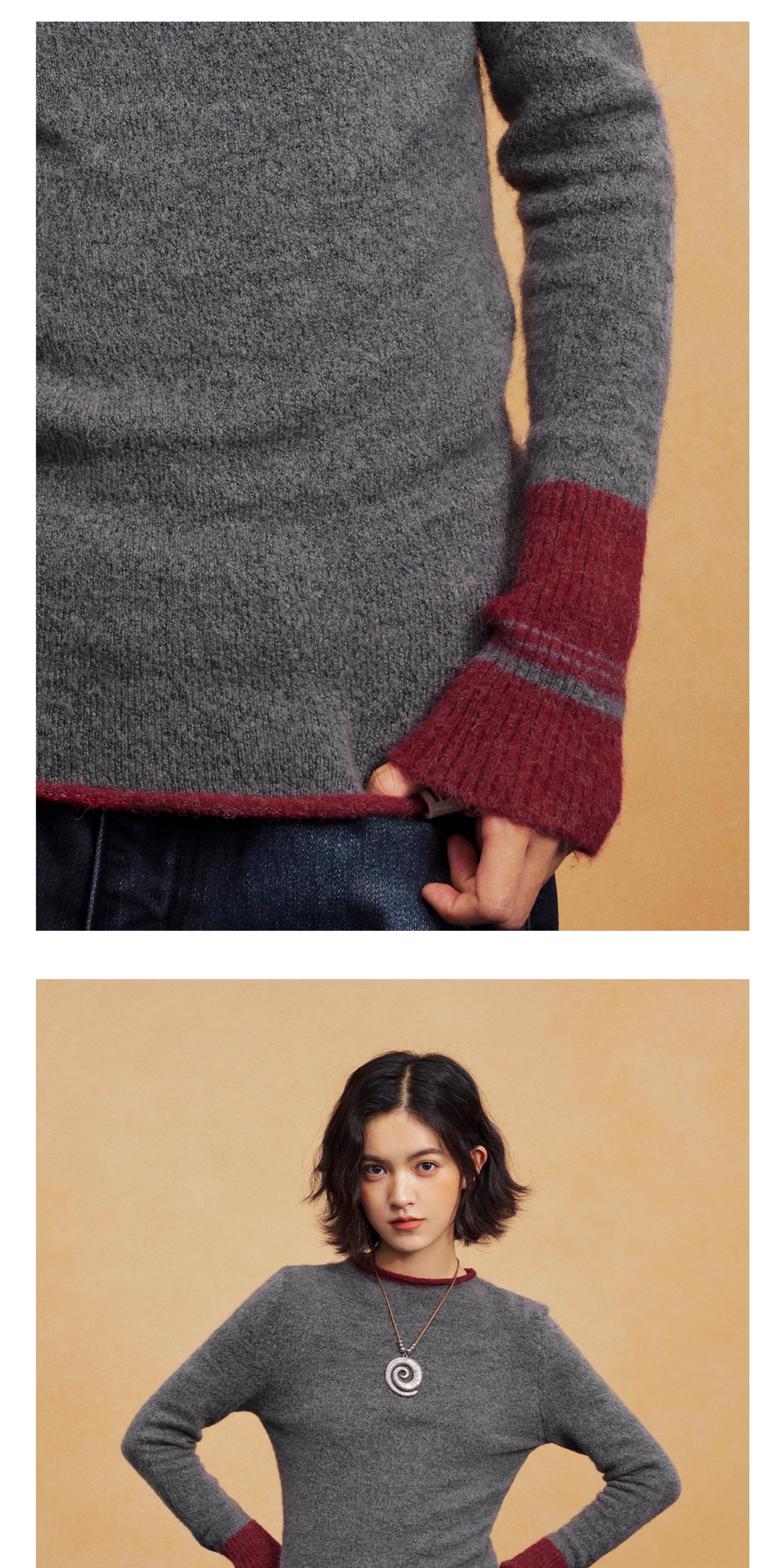 马得工地/MDGDMY14838/撞色假两件套头毛织打底