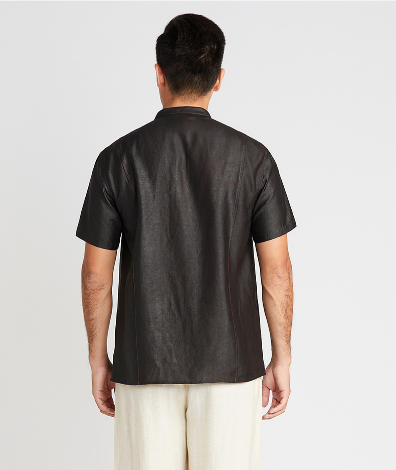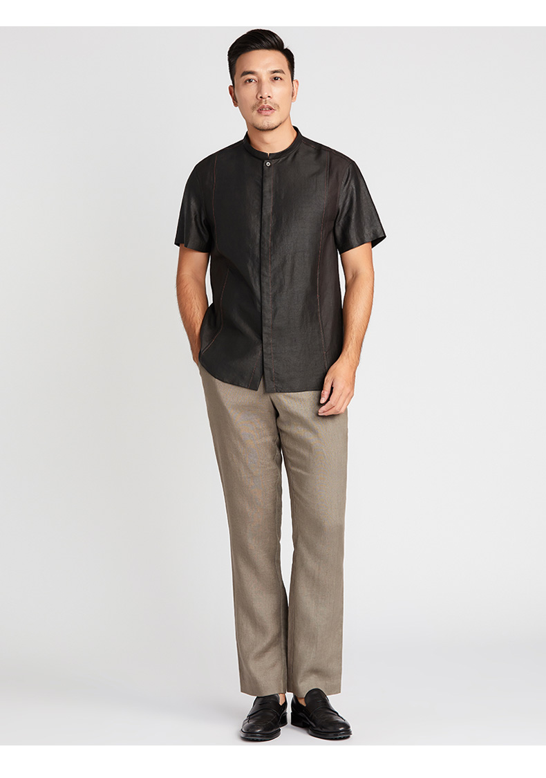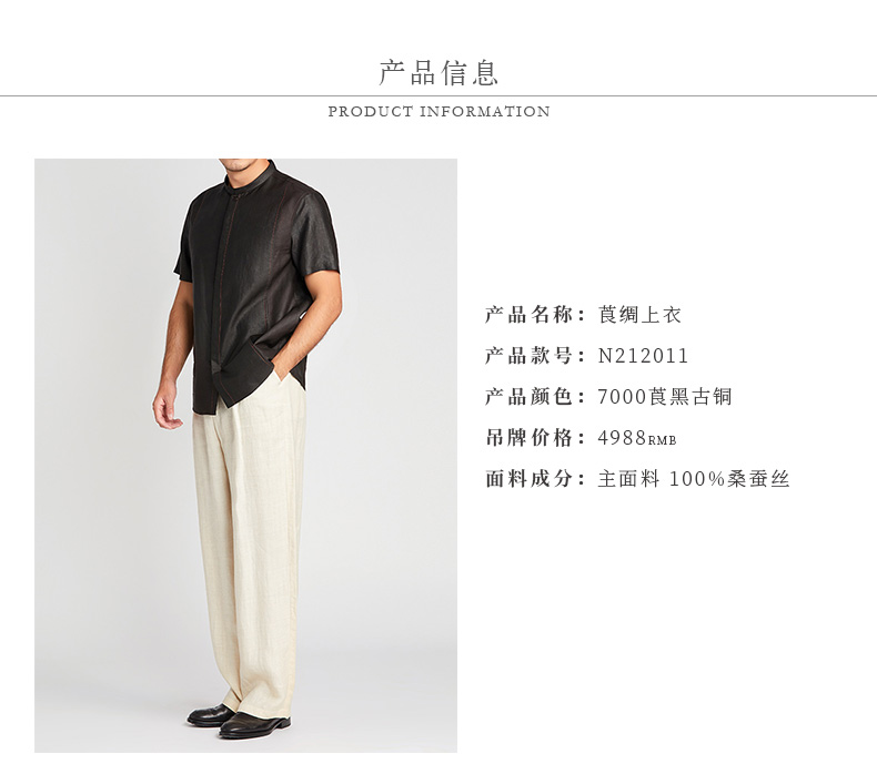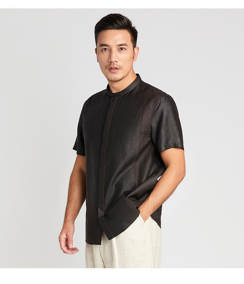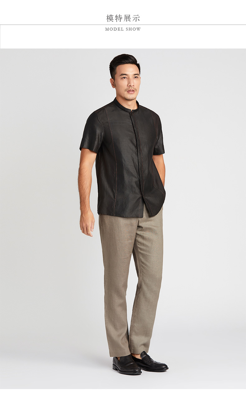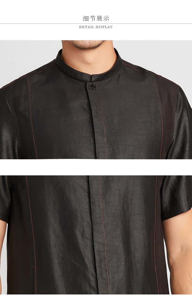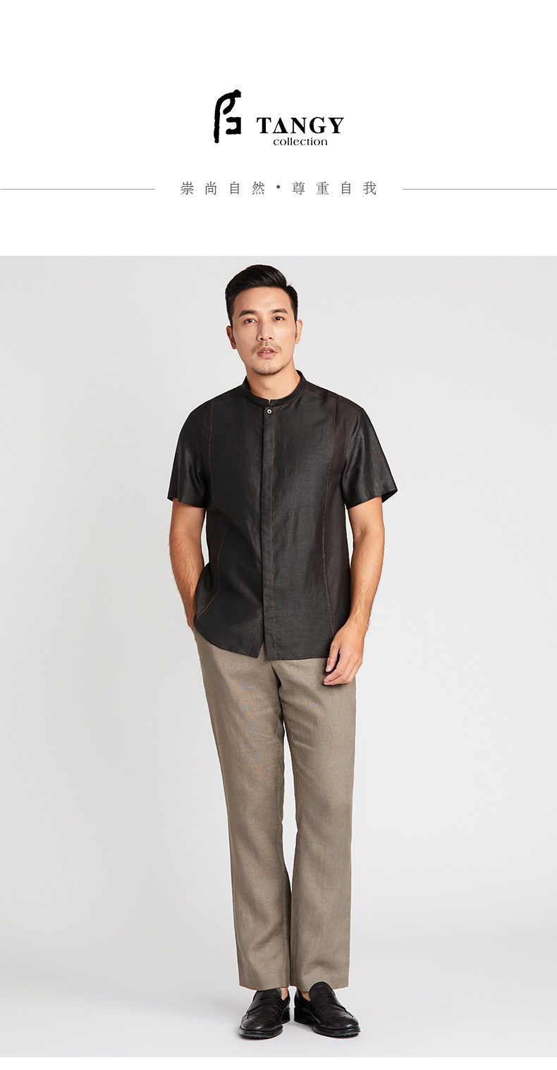TANGY Collection/天意精品2021年春夏新品香云纱真丝莨绸男士衬衫