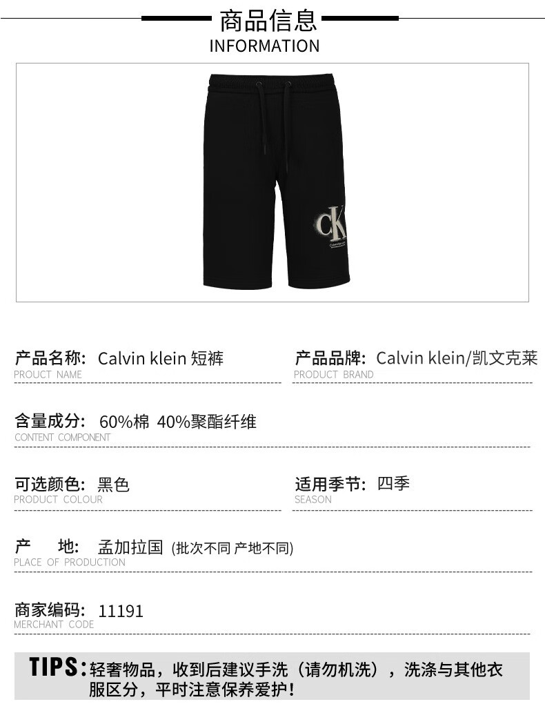 卡尔文·克莱恩(Calvin Klein)CK 男士时尚简约休闲短裤 11191