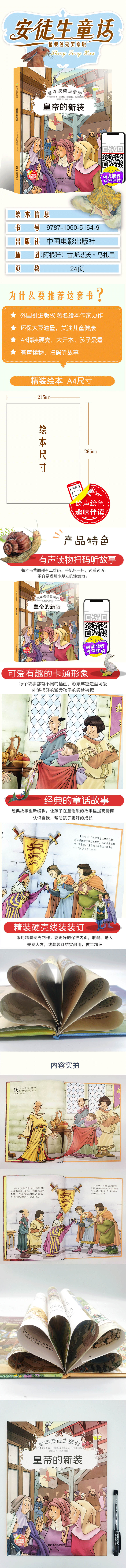 皇帝的新装 安徒生童话幼儿园大班中班小班宝宝3-6岁亲子共读精装绘本儿童早教启蒙认知睡前故事硬壳硬皮童话绘本