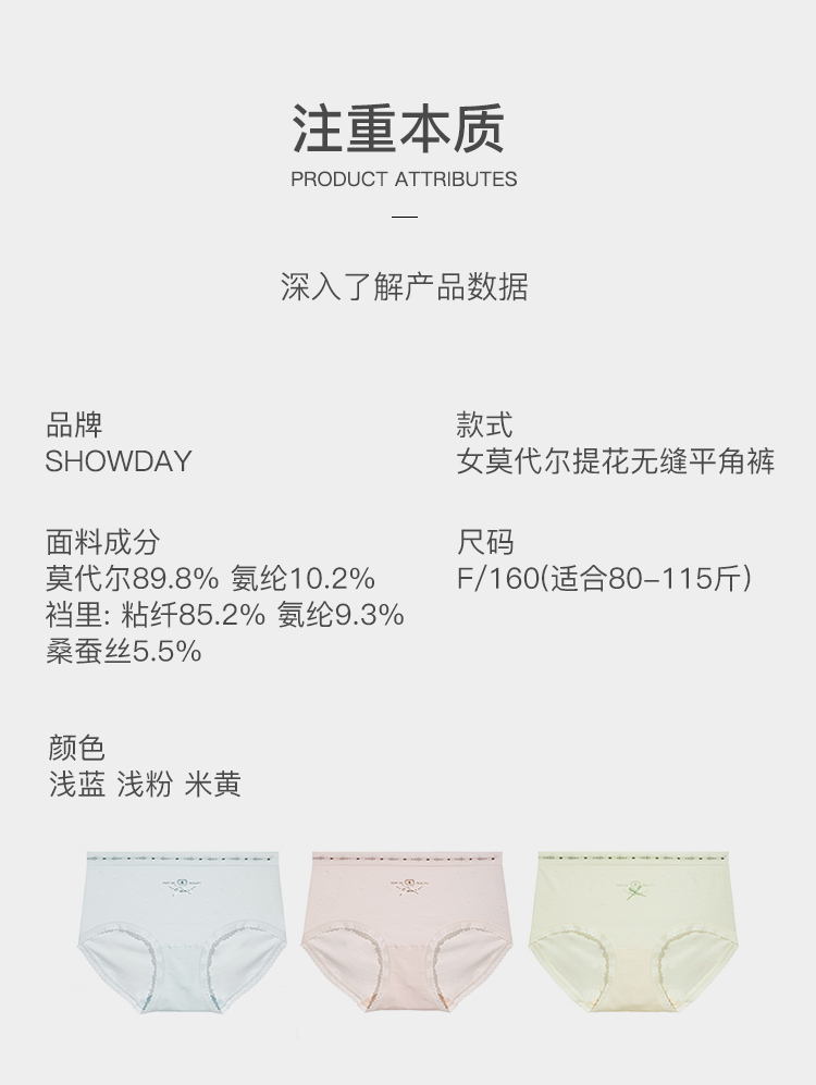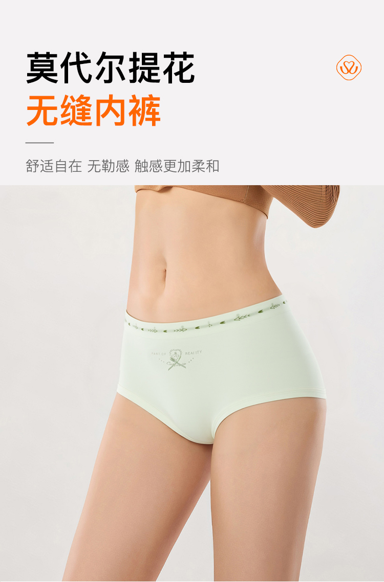 【满4条/7.5折】(小版)【秀黛】女莫代尔提花无缝平角裤女士内裤【1条】W5333010T【门店同款】【内裤非质量问题不退换,介意勿拍】
