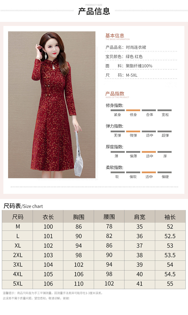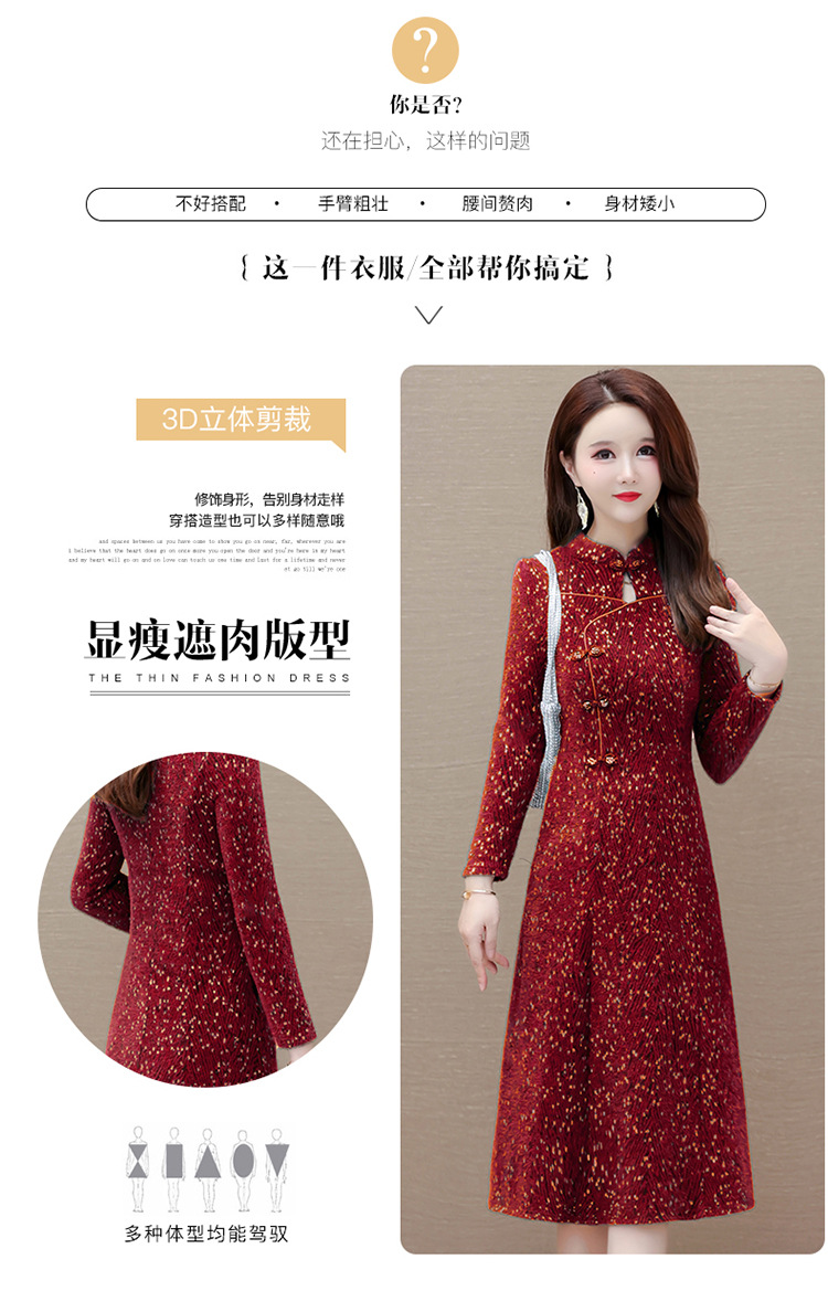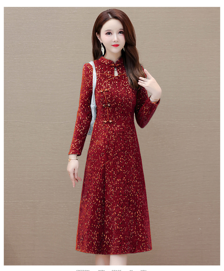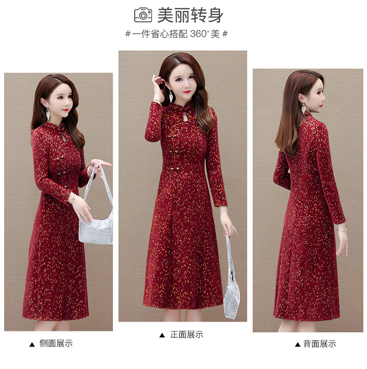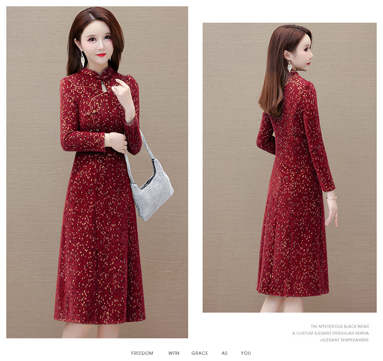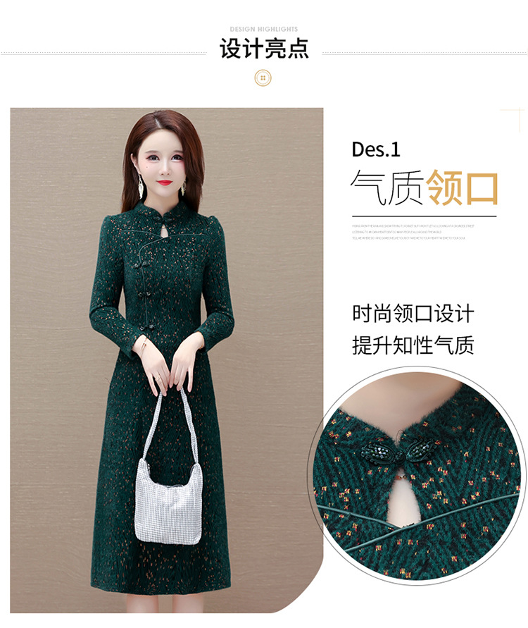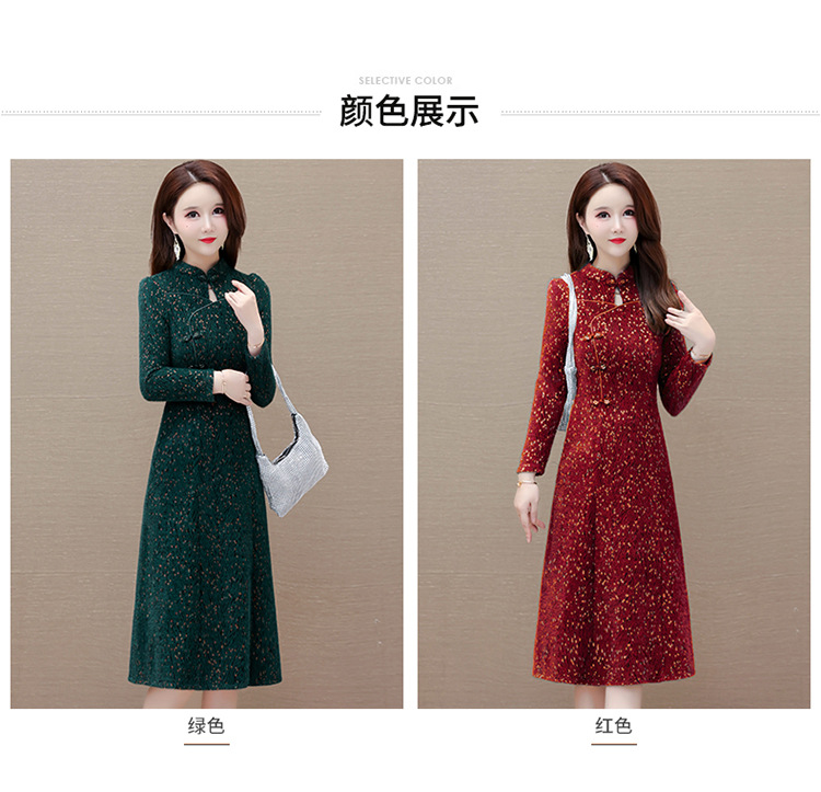 洋气时尚,印花长款中式连衣裙秋冬款立领长袖国风优雅打底裙QYM-XYKL-K523-L