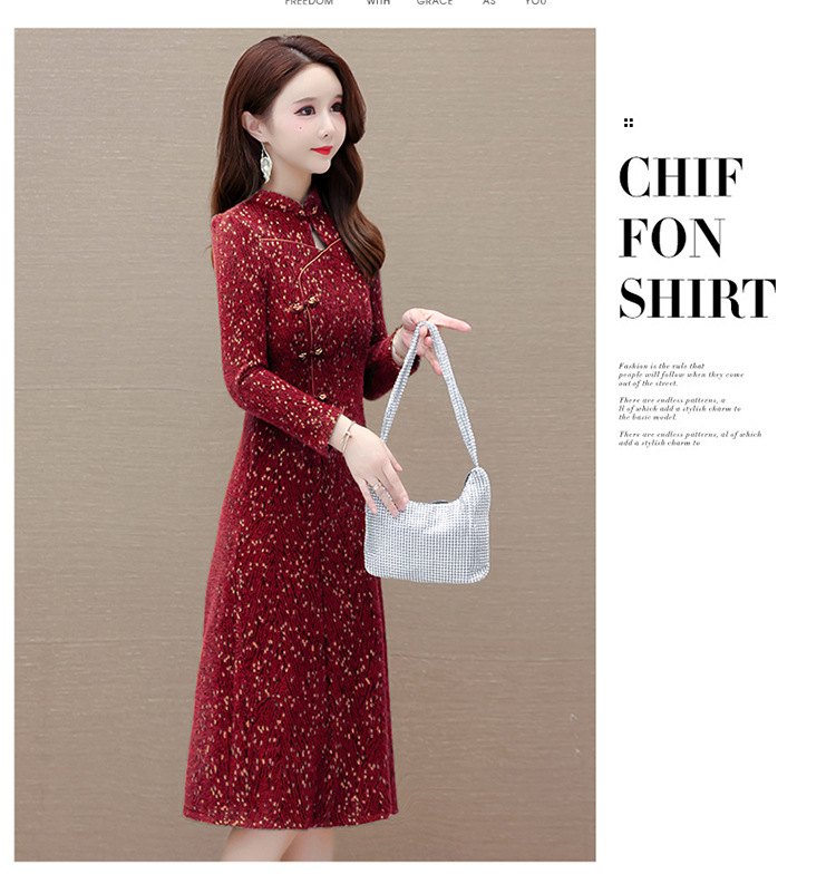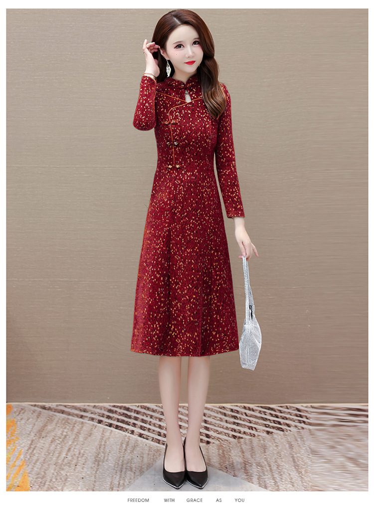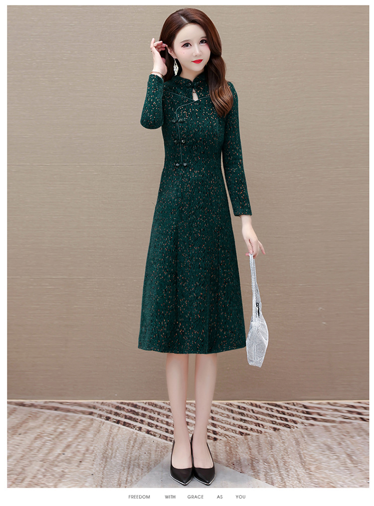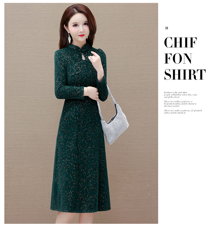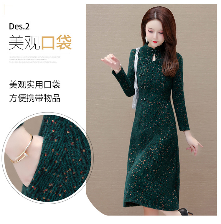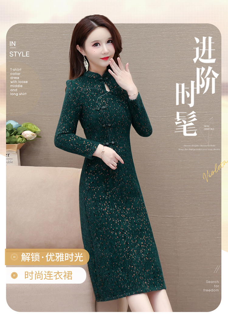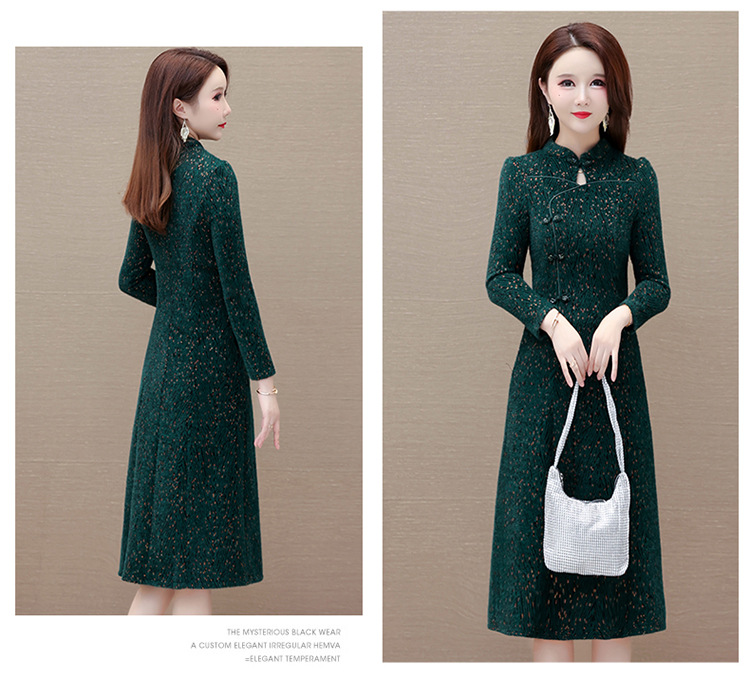 洋气时尚,印花长款中式连衣裙秋冬款立领长袖国风优雅打底裙QYM-XYKL-K523-L