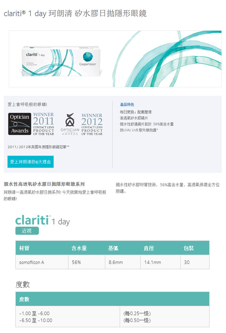 【透明日抛】库博珂朗清30片装 100-1200度可定制散光/远视 度数不同请拍2盒 买三盒送一盒