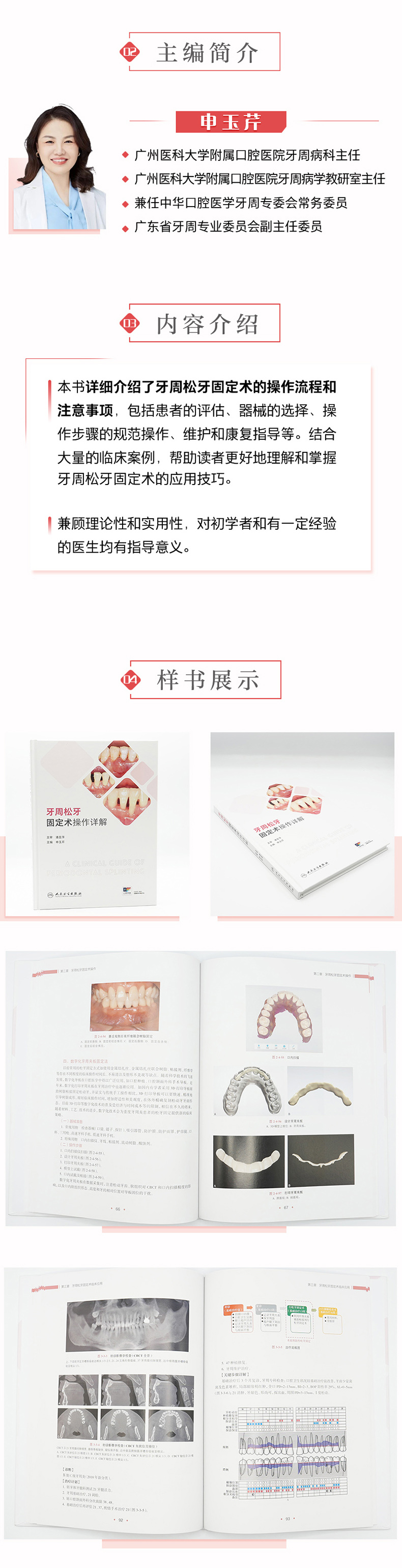 主要内容:本书详细介绍了牙周松牙固定术的操作流程和注意事项,包括患者的评估、器械的选择、操作步骤的规范操作、维护和康复指导等。结合大量的临床案例,帮助读者更好地理解和掌握牙周松牙固定术的应用技巧。此外,强调个性化治疗的重要性,针对不同患者的具体情况,提供了个性化的治疗方案和建议。 读者对象:口腔全科医生、牙周专科医生、口腔医学研究生及本科生等。兼顾理论性和实用性,对初学者和有一定经验的医生均有指导意义。