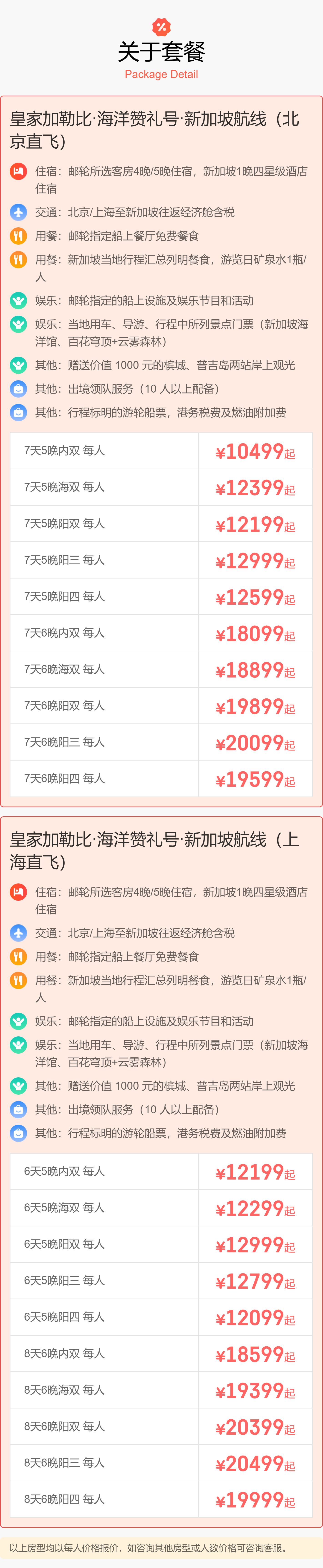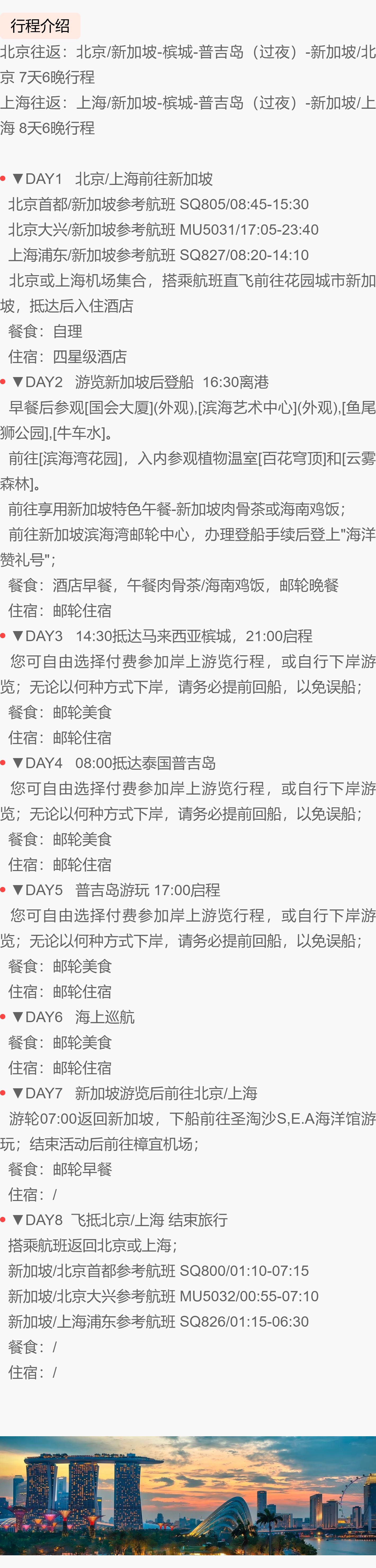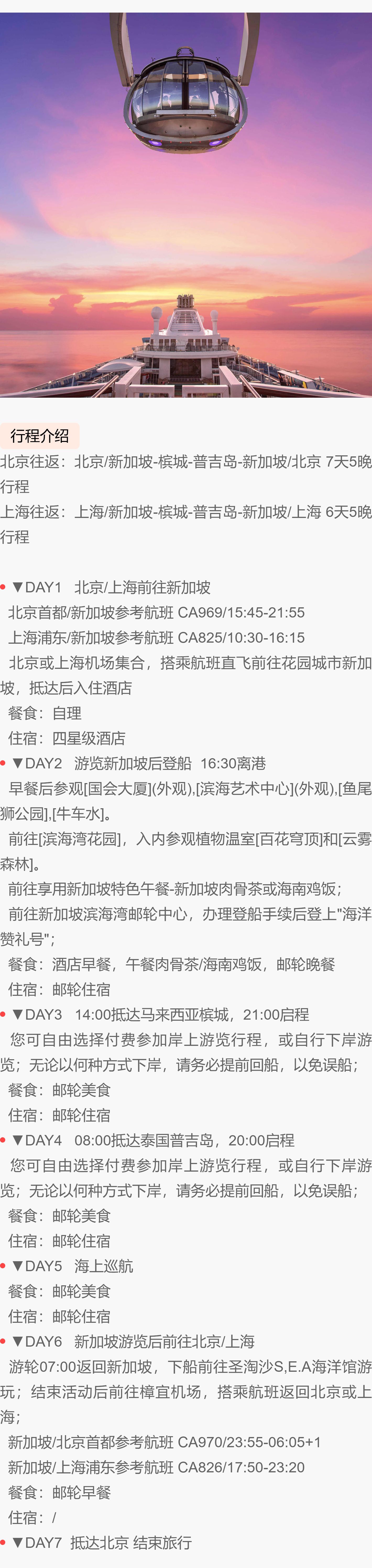 5晚/6晚【皇家加勒比邮轮·海洋赞礼号·新加坡航线·含北京/上海往返机票】多航程可选,寒假春节可用,娱乐设施超丰富,免签省心,家庭出游的不二之选~