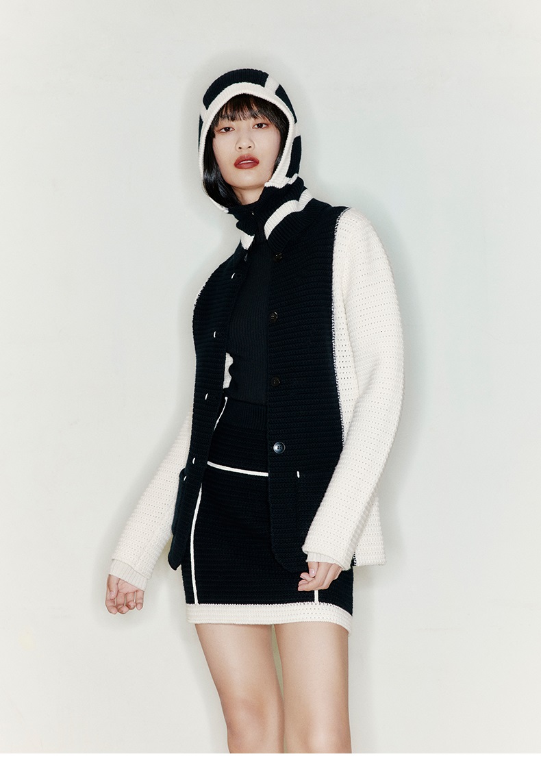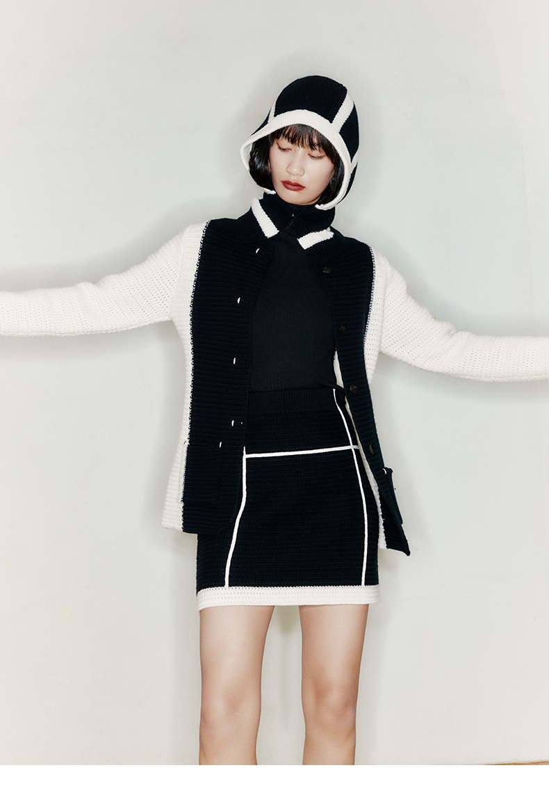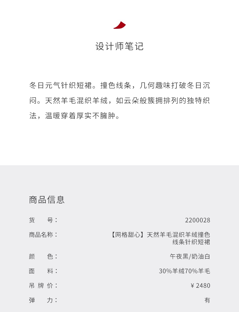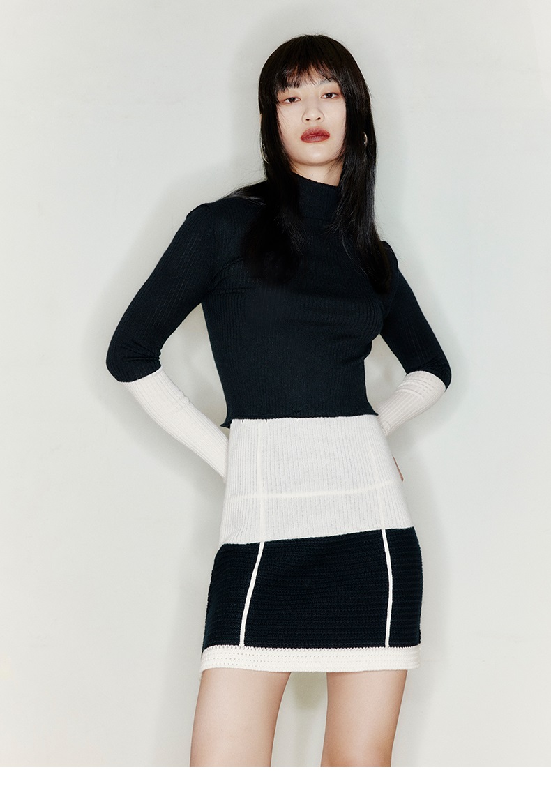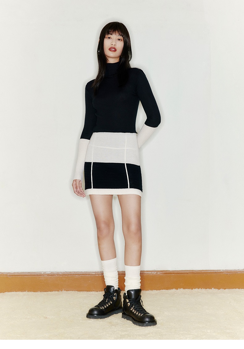 【网格甜心】天然羊毛混织羊绒撞色线条针织短裙/2200028