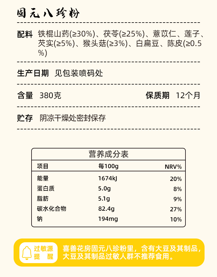 喜善花房 固元八珍粉380g*2罐