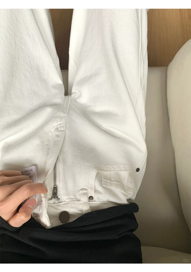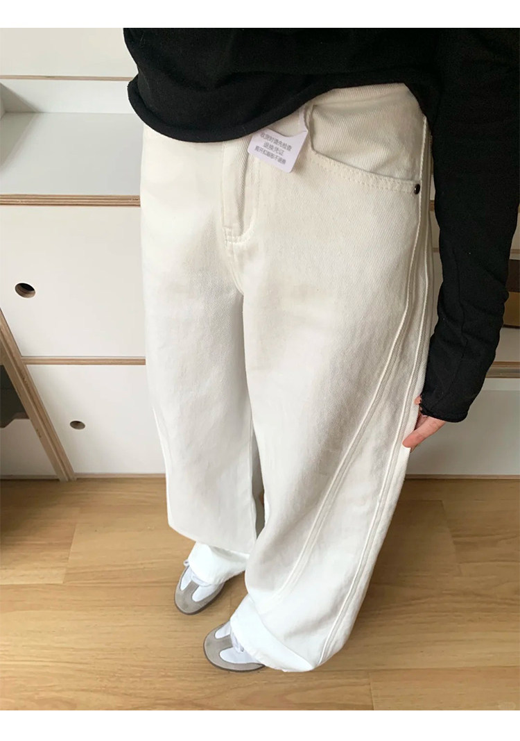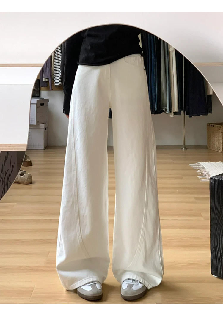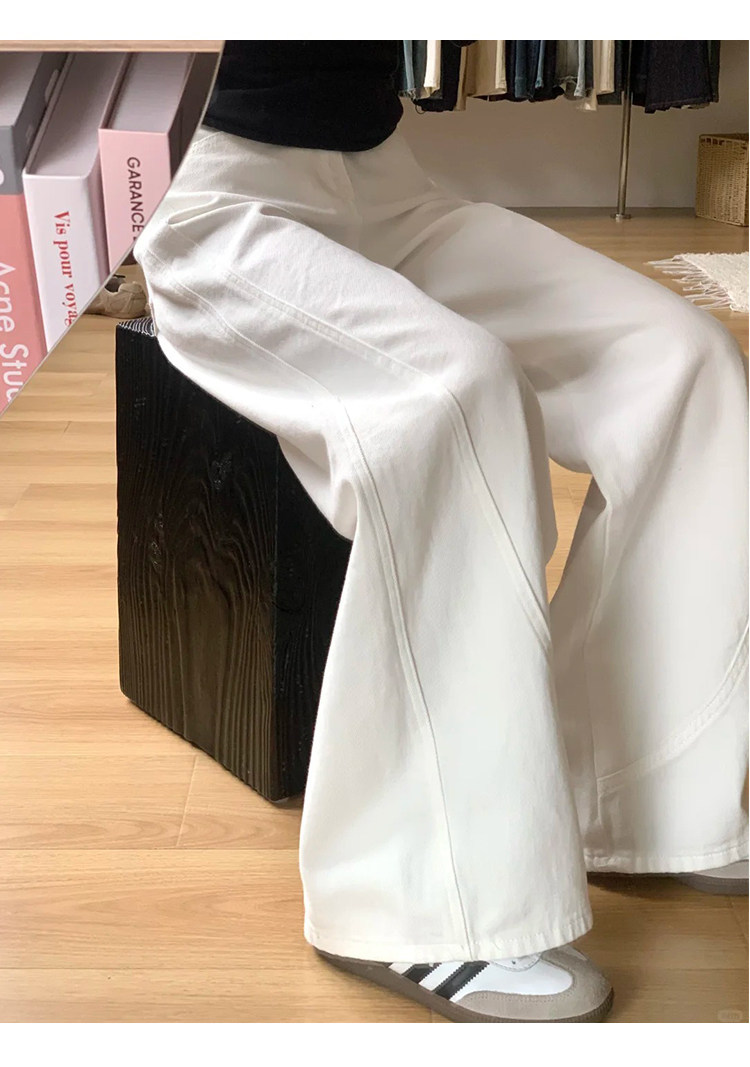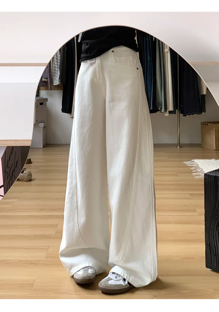 白色阔腿弯刀牛仔裤 女2026春季新款高腰宽松显瘦裤 垂感直筒镰刀裤子