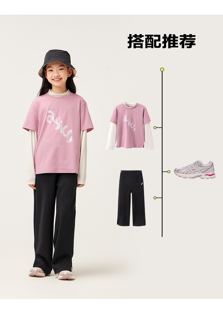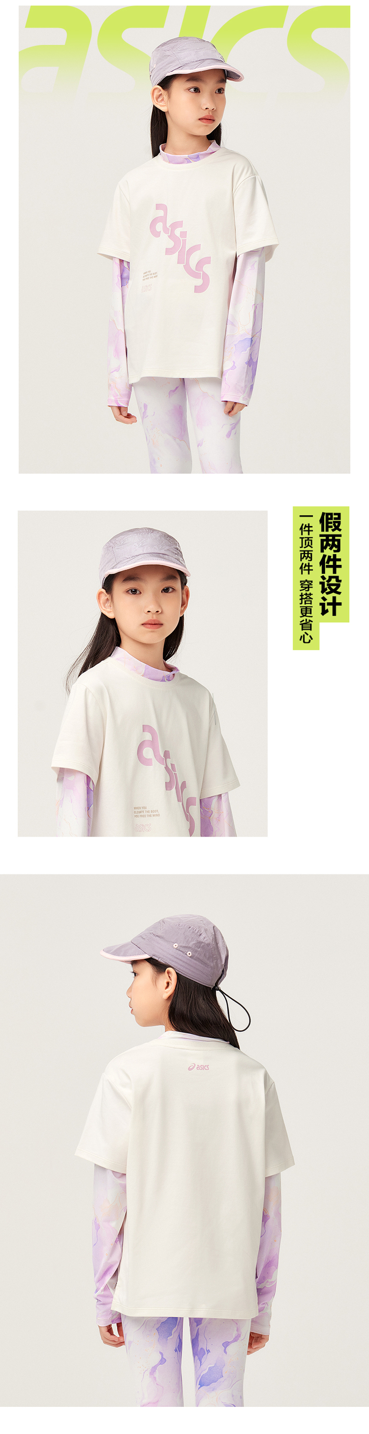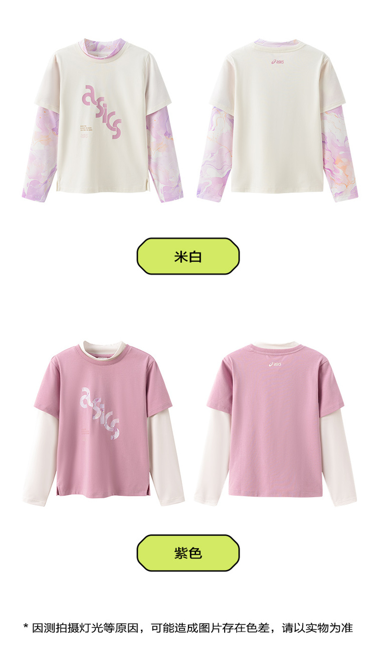【商城同款】ASICS/亚瑟士童装女生假两件长袖T恤吸湿速干柔软秋