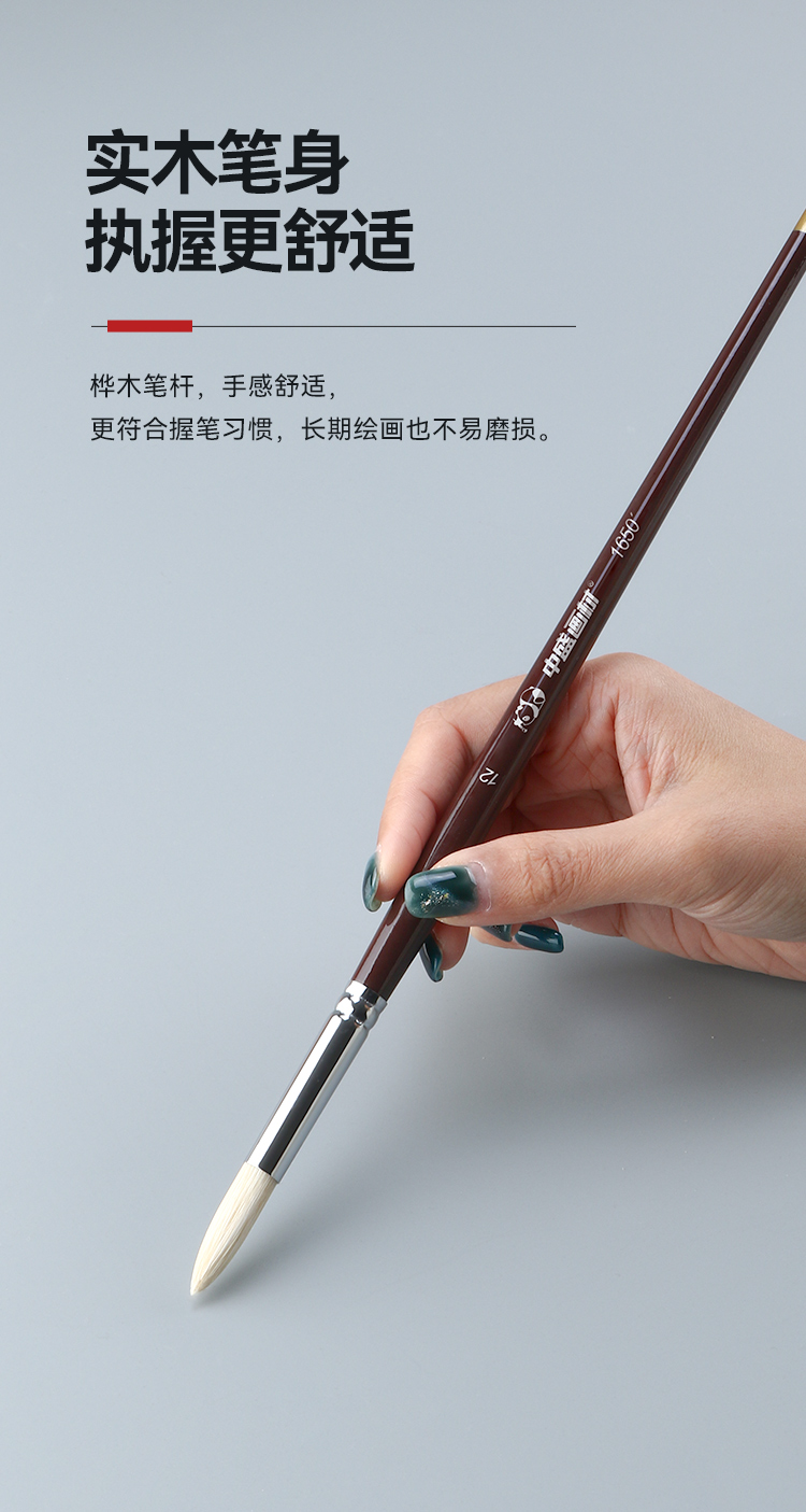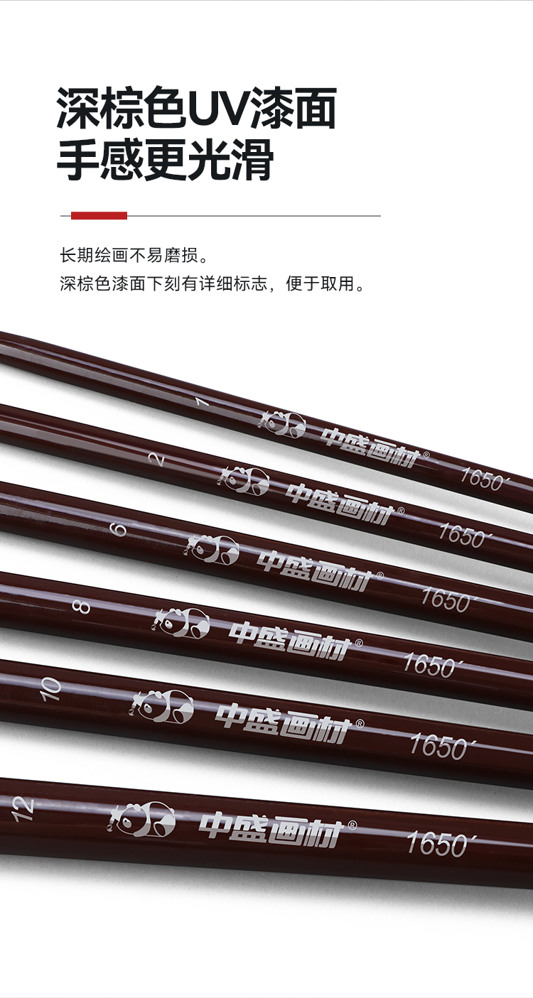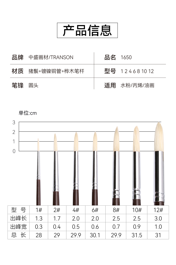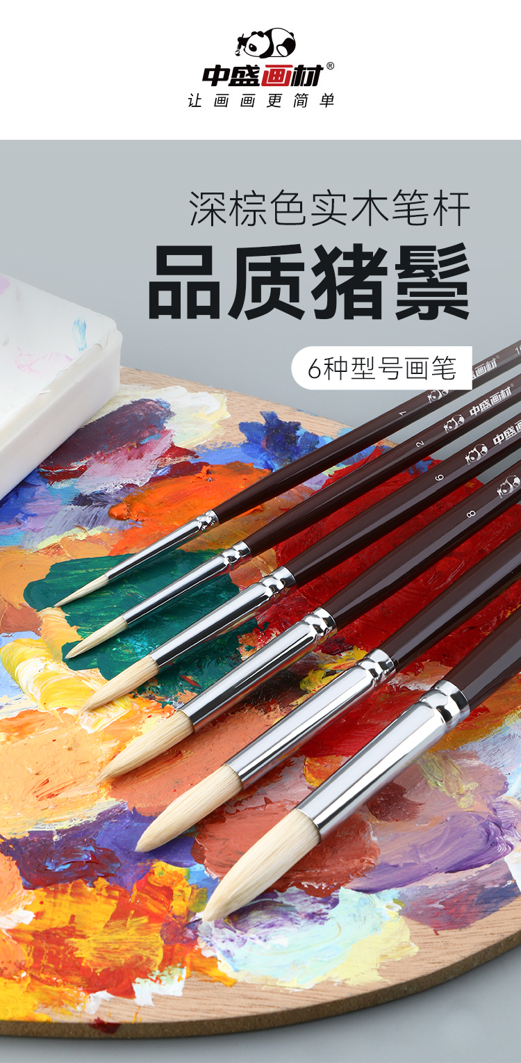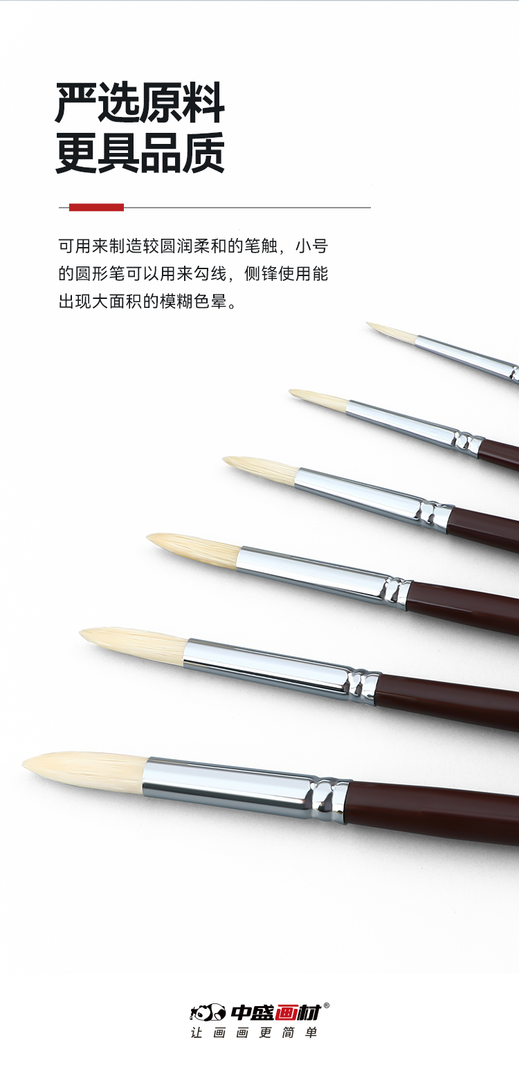 中盛画材 1650圆头猪鬃桦木UV漆杆油画笔 水粉笔 丙烯画笔