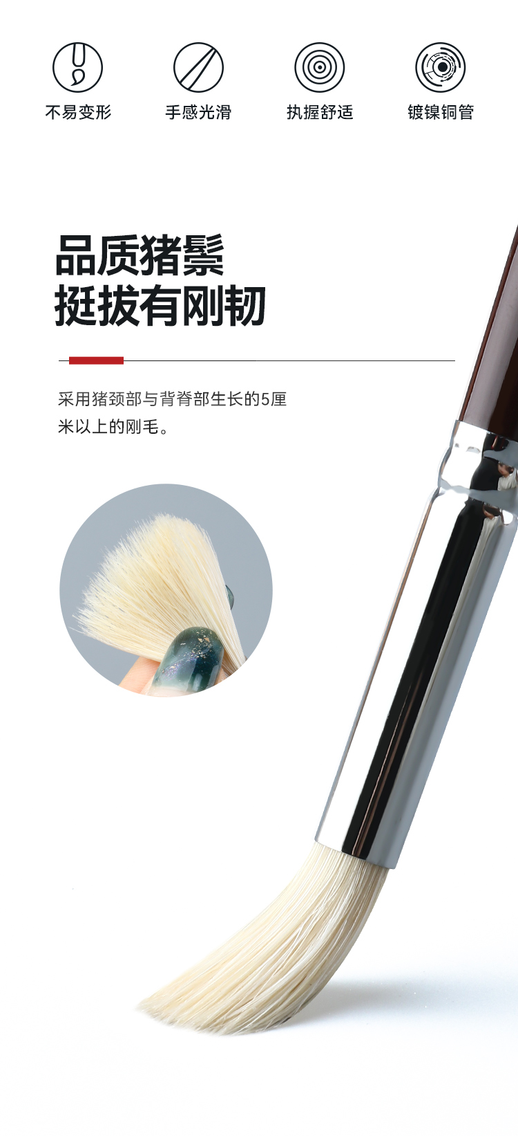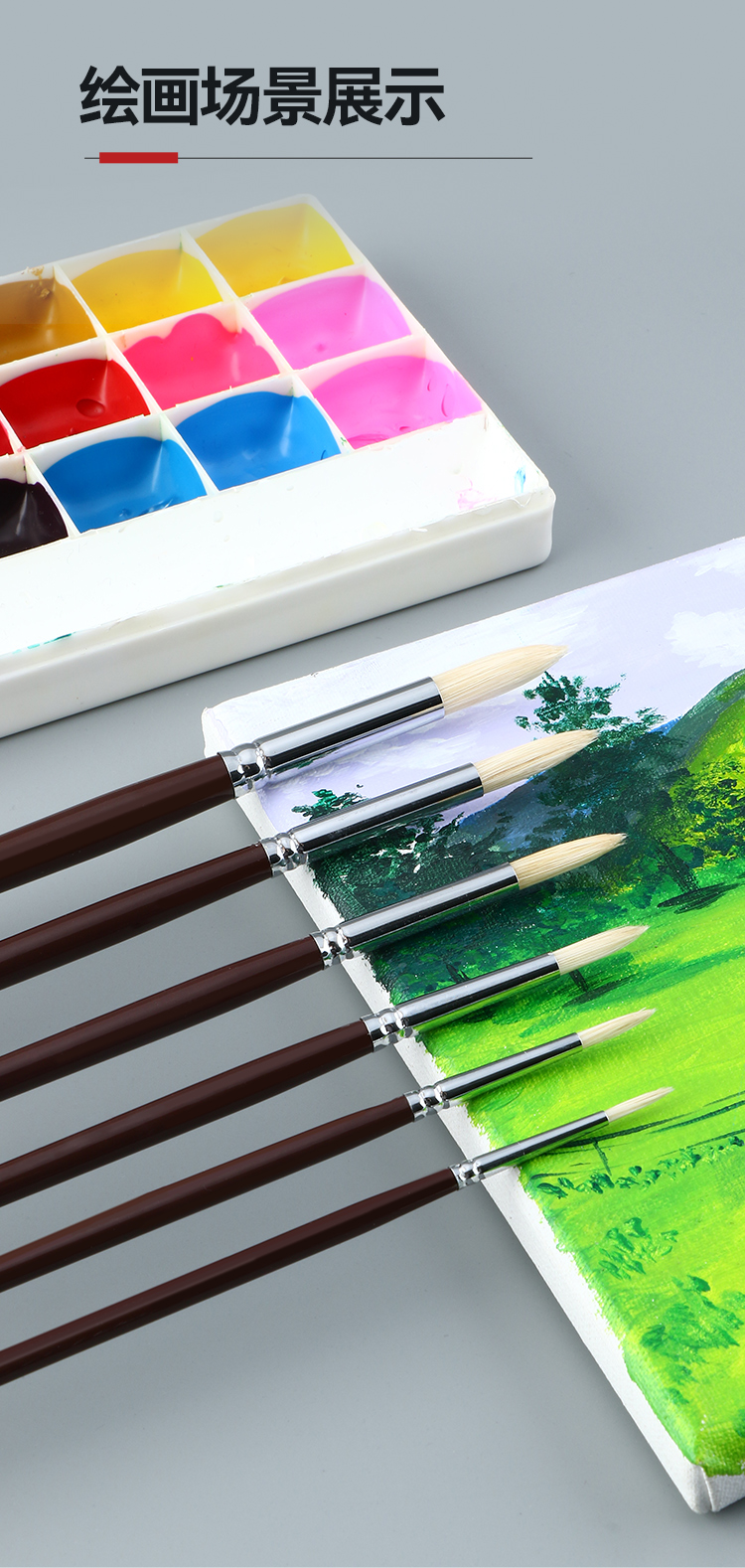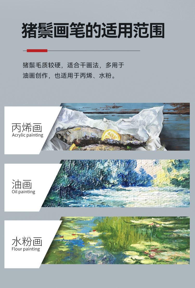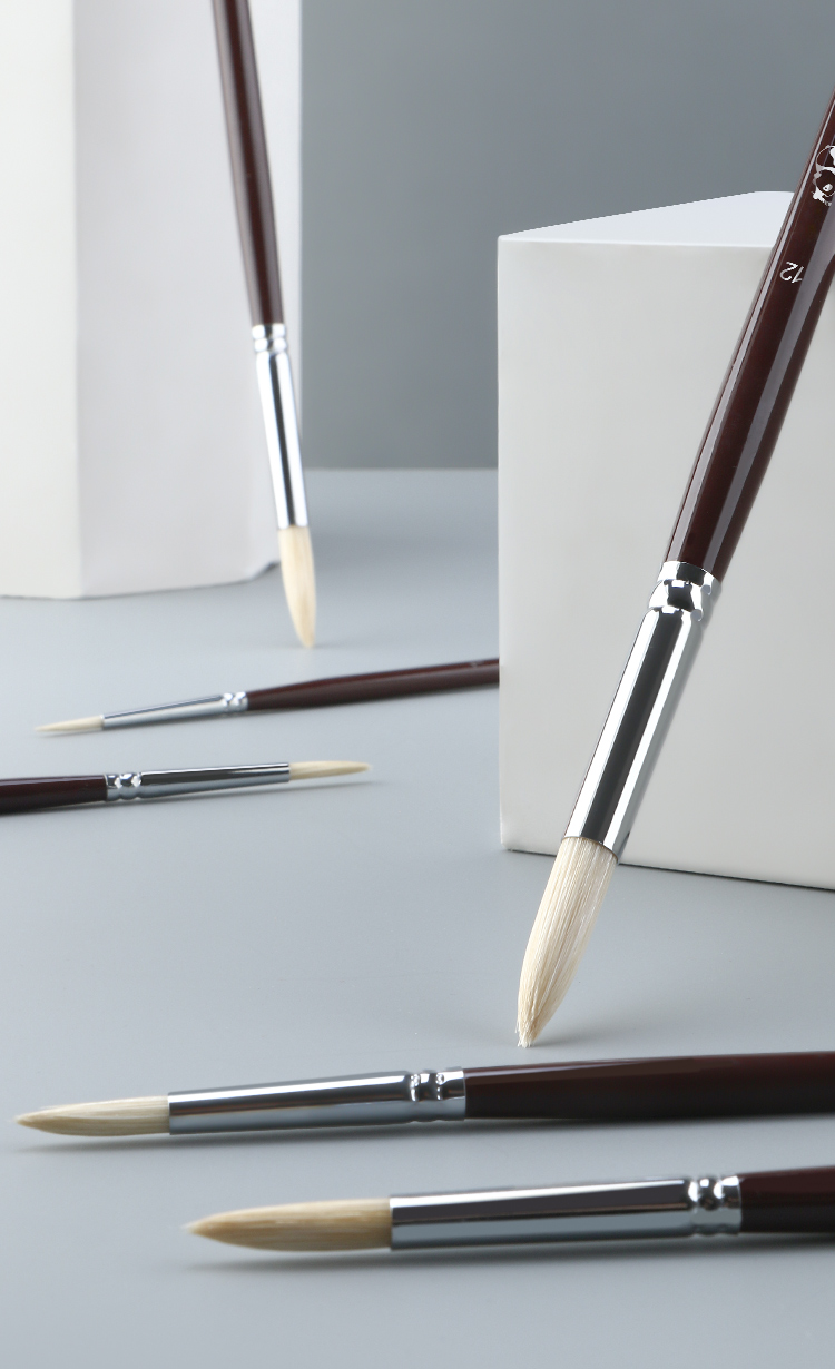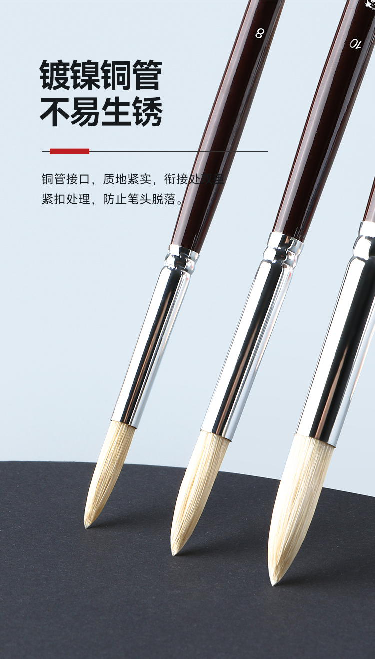 中盛画材 1650圆头猪鬃桦木UV漆杆油画笔 水粉笔 丙烯画笔