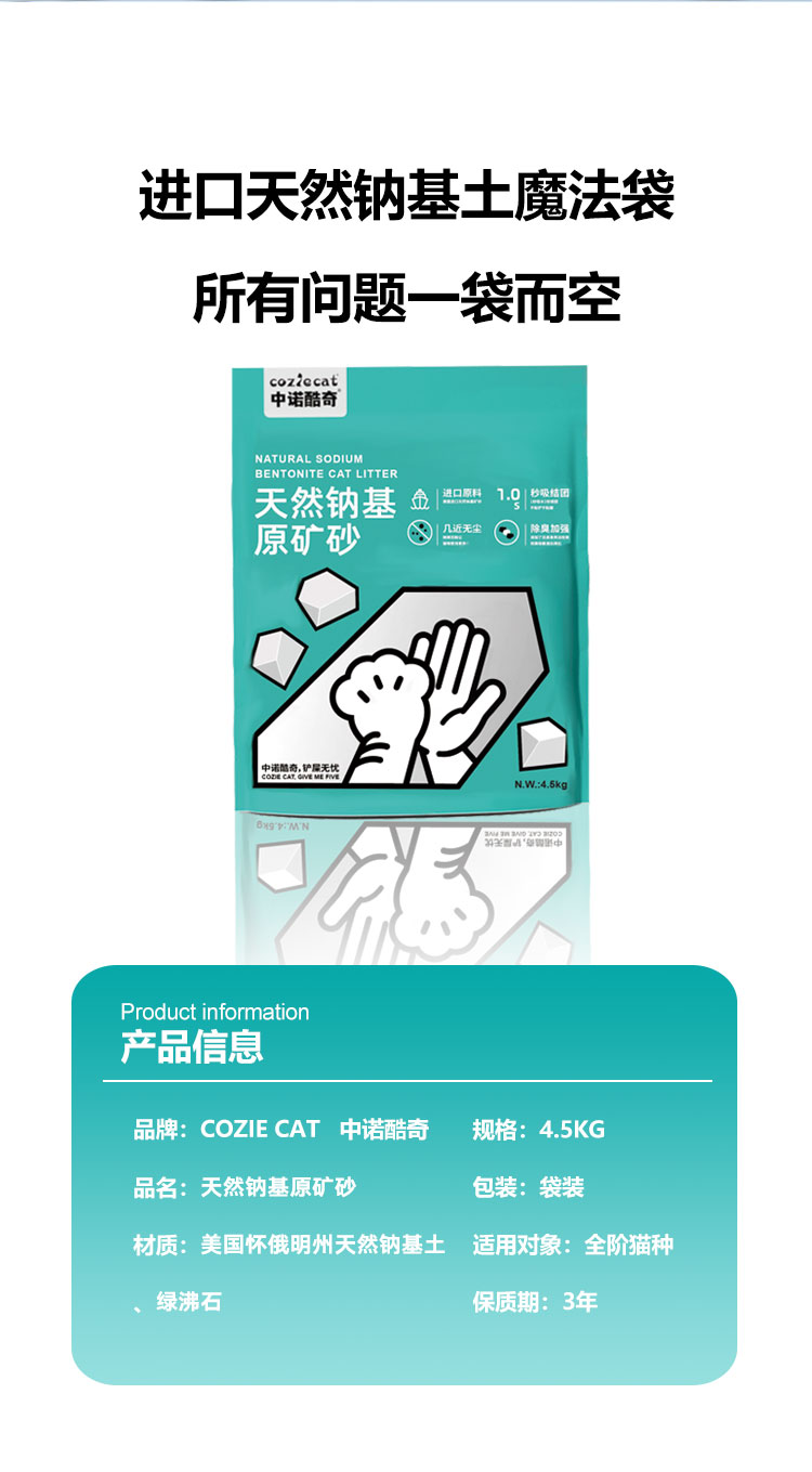 【厂家直发 不能自提】中诺酷奇Na基矿砂新版本猫砂 美国进口天然纳基膨润土 桶装/盒装/袋装 多规格可选