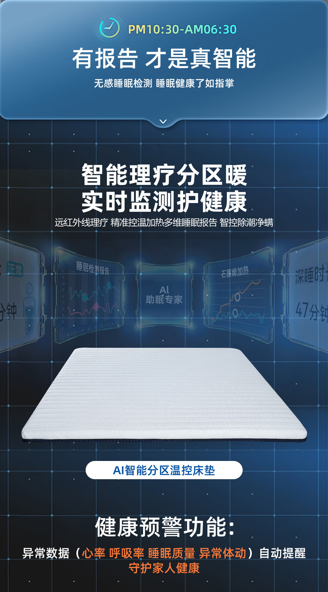 海尔康养加热助眠床垫AI检测石墨稀床垫