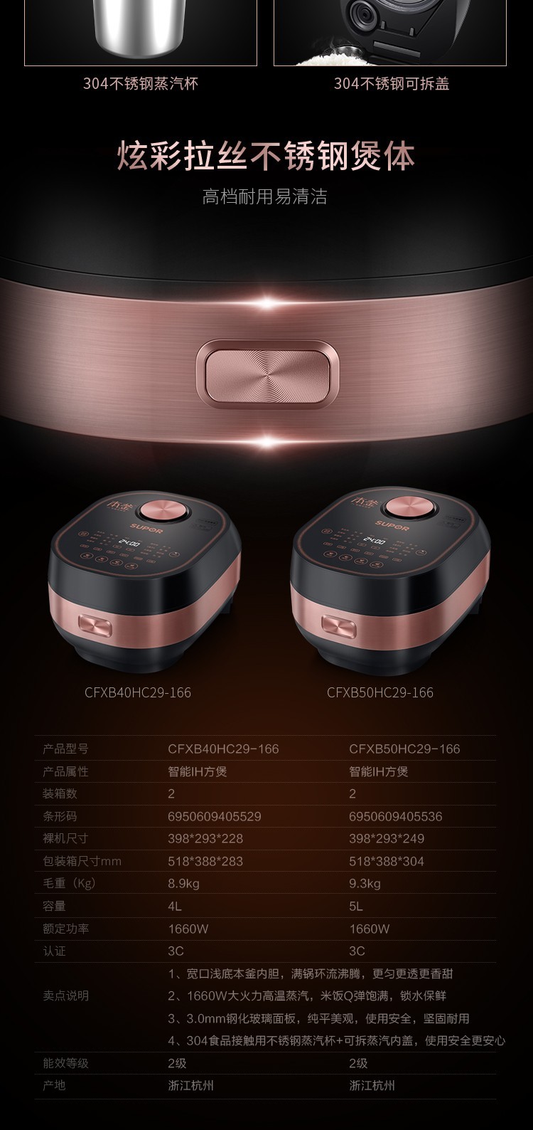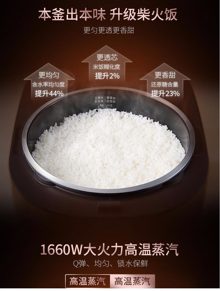 苏泊尔(SUPOR)电饭煲 4L/5L 蒸汽本釜IH电磁加热智能电饭煲 家用 大容量