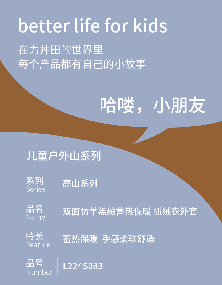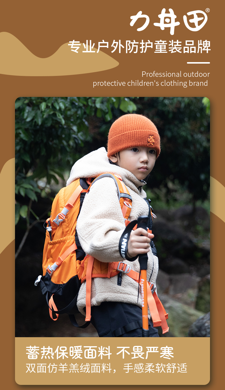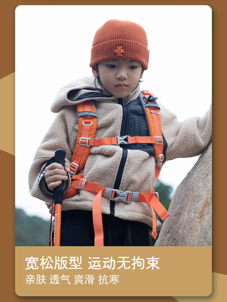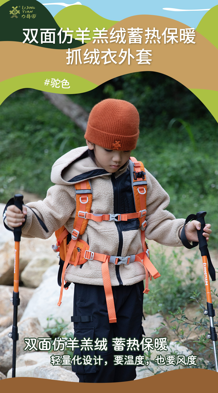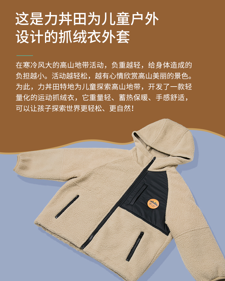 力丼田儿童户外攀山系列 双面仿羊羔绒抓绒衣外套 蓄热保暖柔软 L2211S083CAYW