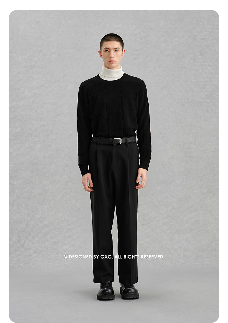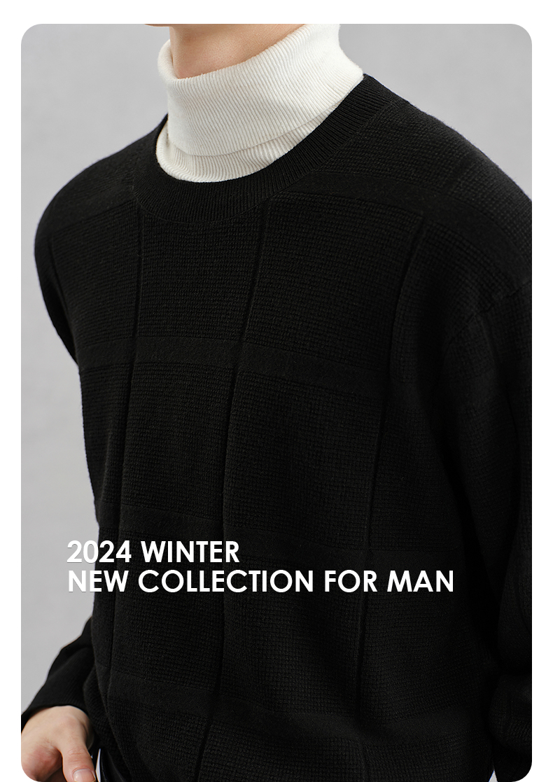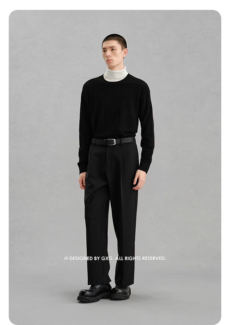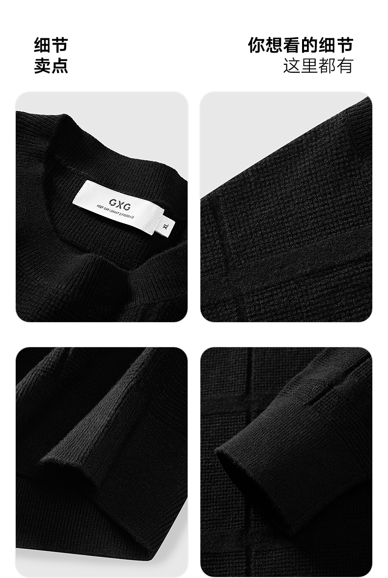 GXG男装黑色低领毛衣男士通勤打底衫 24年冬G24X204045