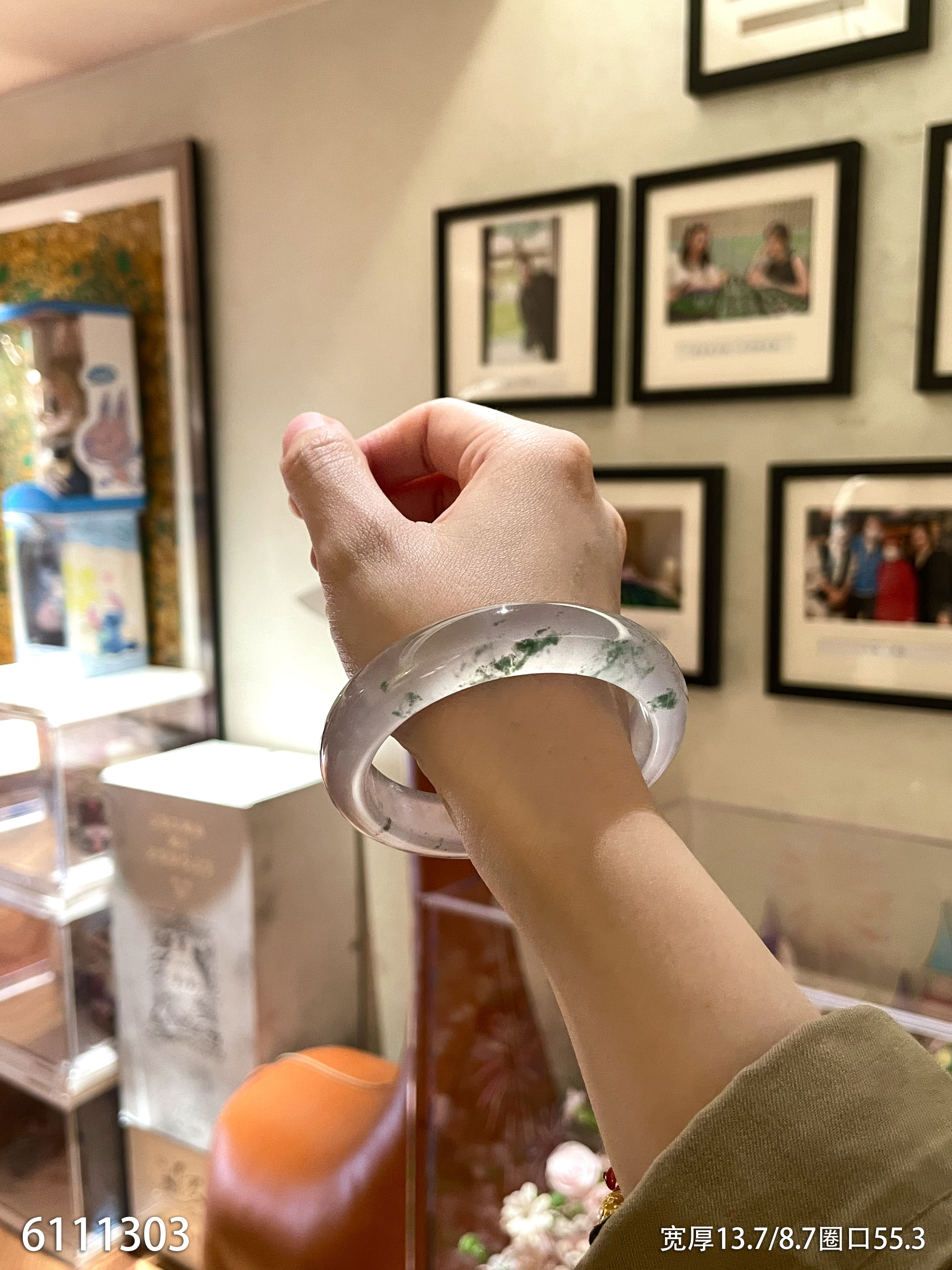 高冰种飘花手镯【6111303】圈口55.3~具体价格微信咨询