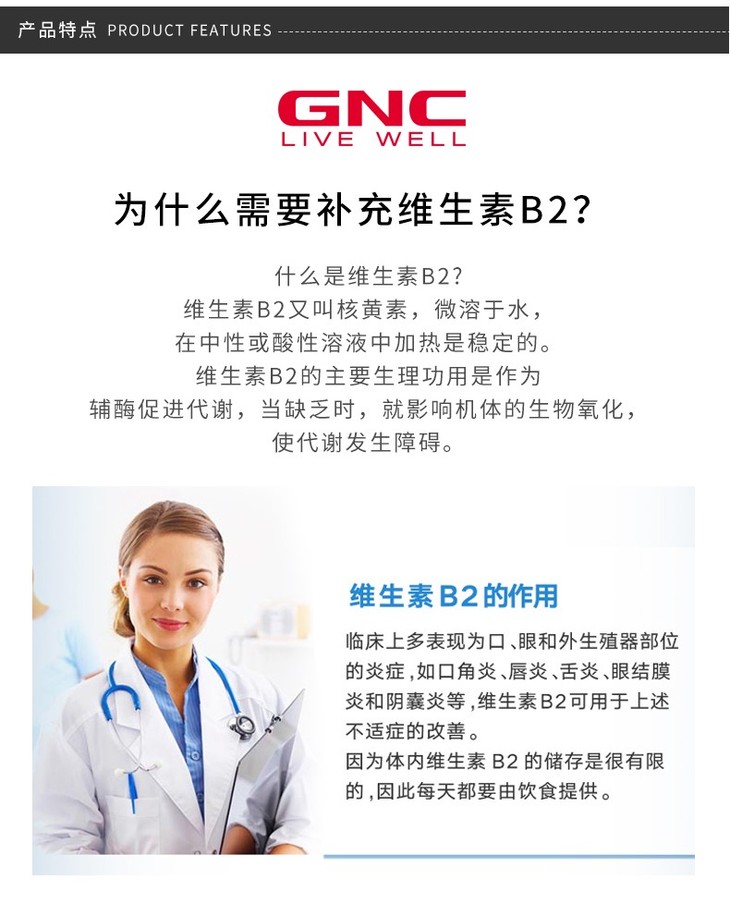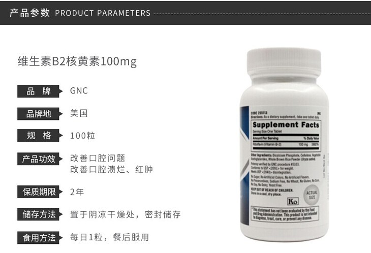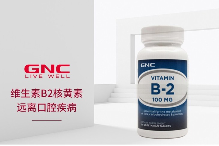 【香港直邮】GNC/健安喜 维生素B2核黄素片 口腔健康 100片JPY带授权招加盟代理