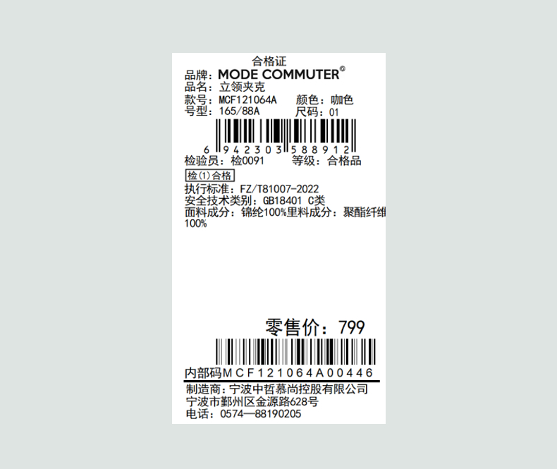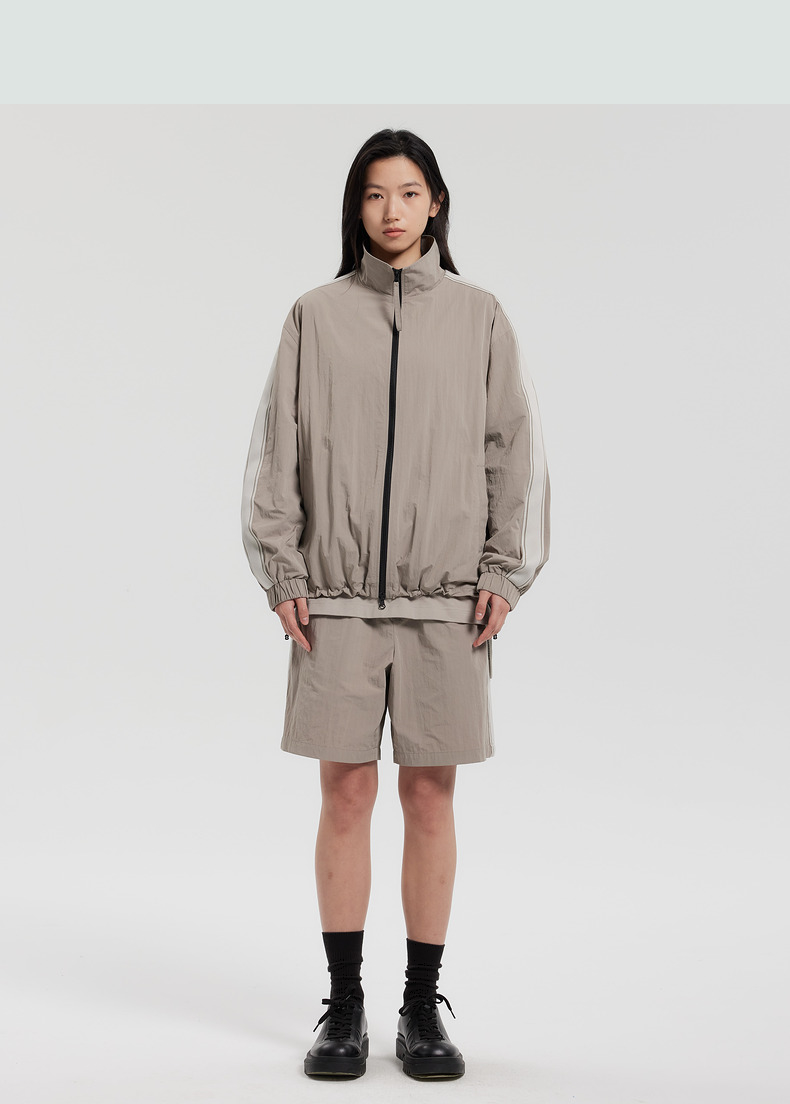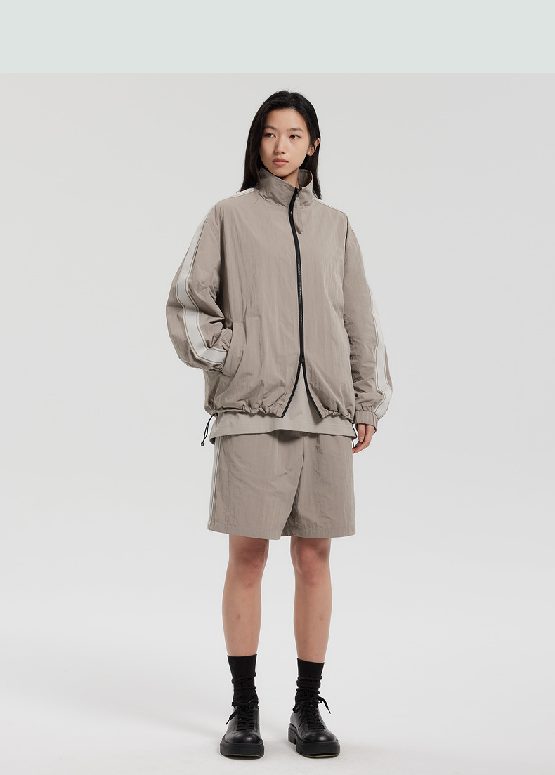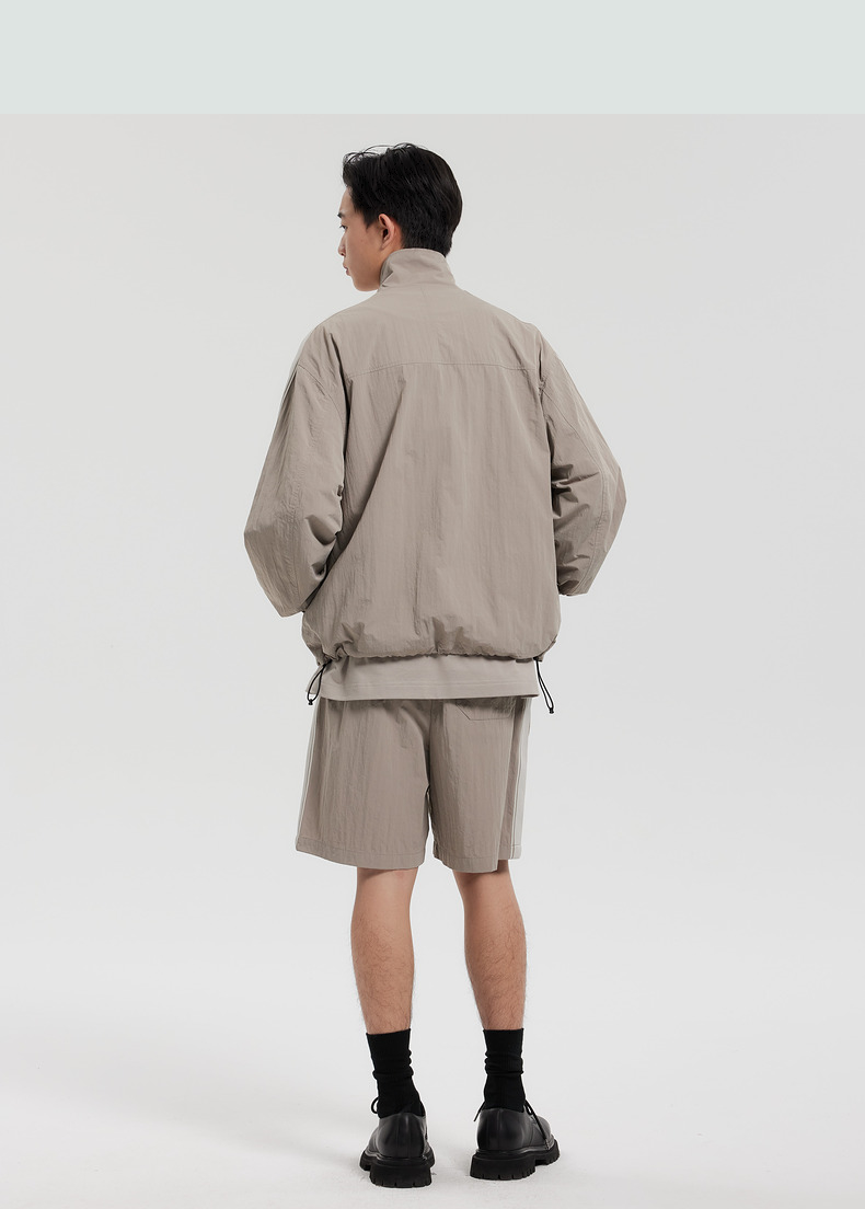 MODE COMMUTER | MC阔腿梭织长裤皱感面料立领夹克MCF121064A