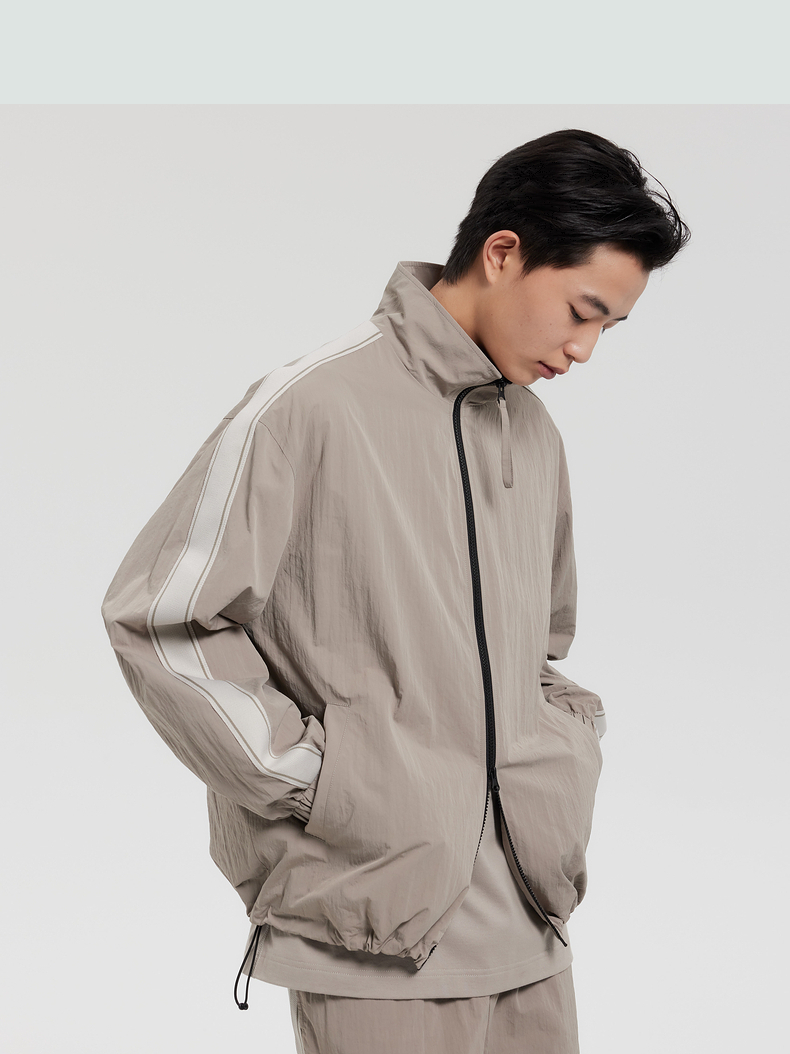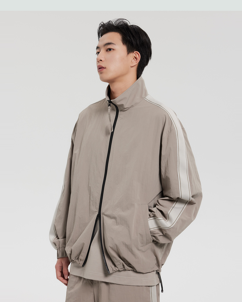 GXG男装 双色提花质感翻领夹克 下摆抽绳休闲好穿春季热卖夹克外套