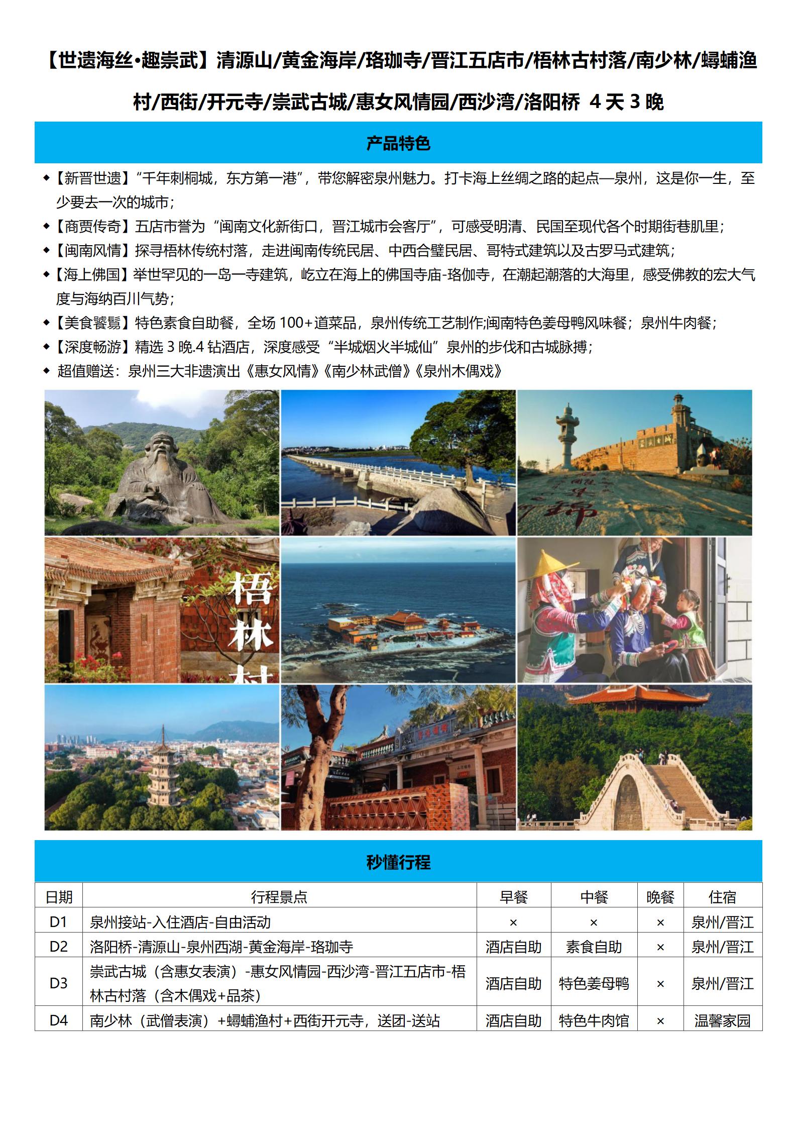 【五一】<福建泉州4天动车团>清源山/黄金海岸/珞珈寺/晋江五店市/梧林古村落/南少林/蟳蜅渔村/西街/开元寺/崇武古城/惠女风情园/西沙湾/洛阳桥