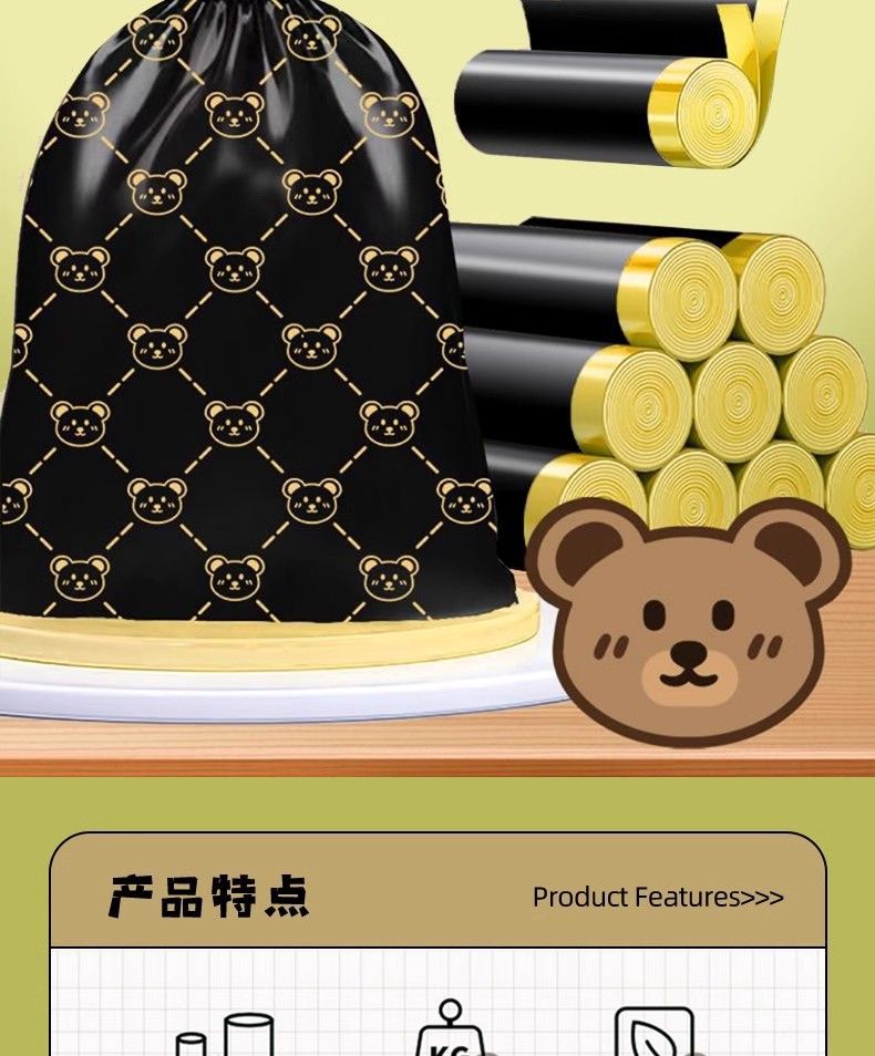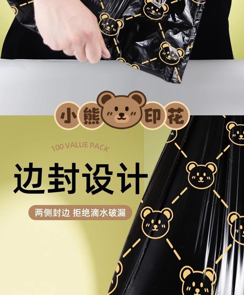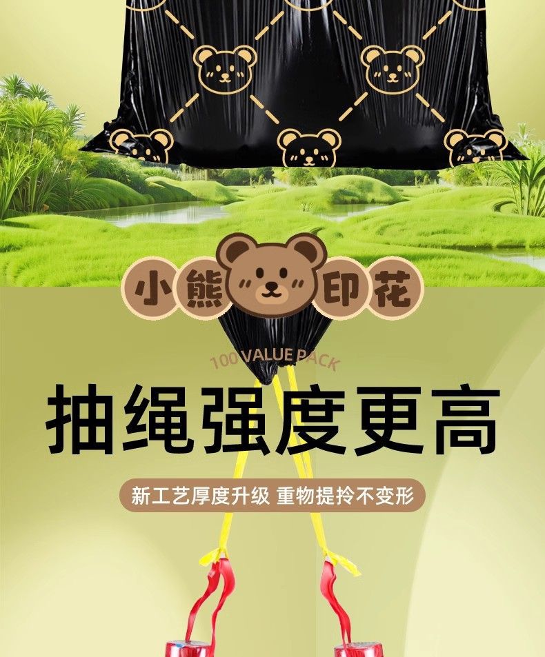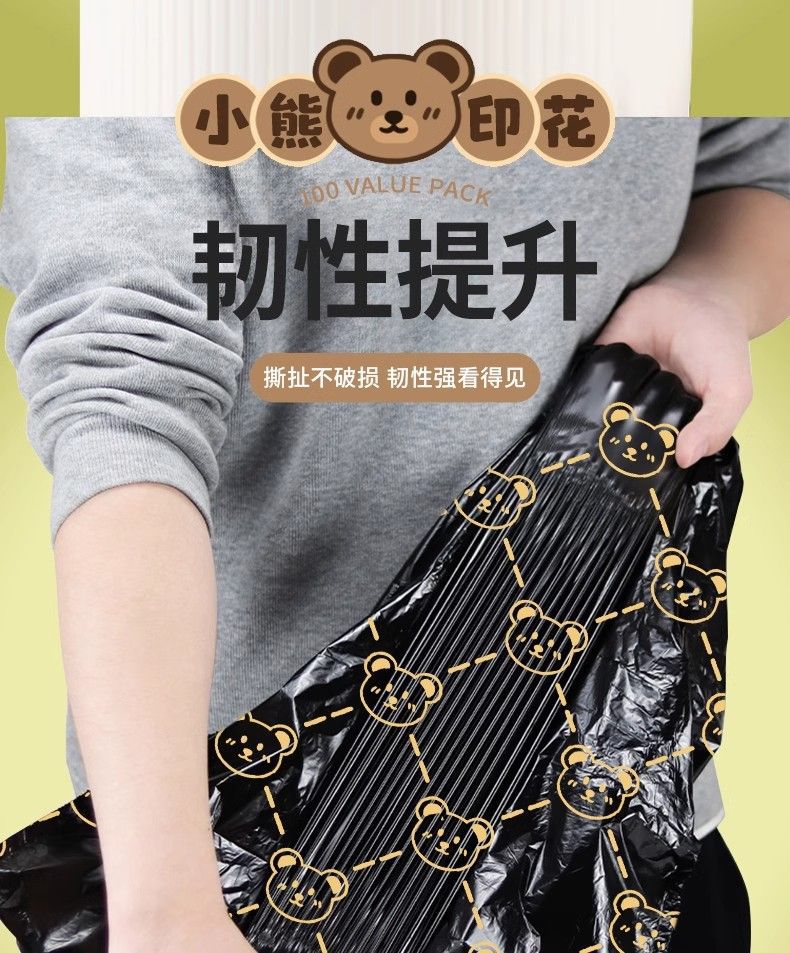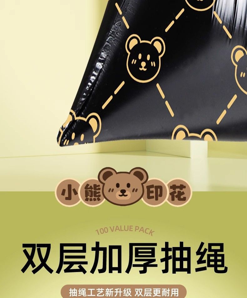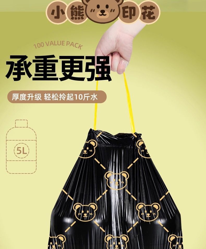 「高颜值!手提式」垃圾袋加厚手提式手提抽绳收口居家日用厨房宿舍一次性收纳整理小熊印花塑料袋