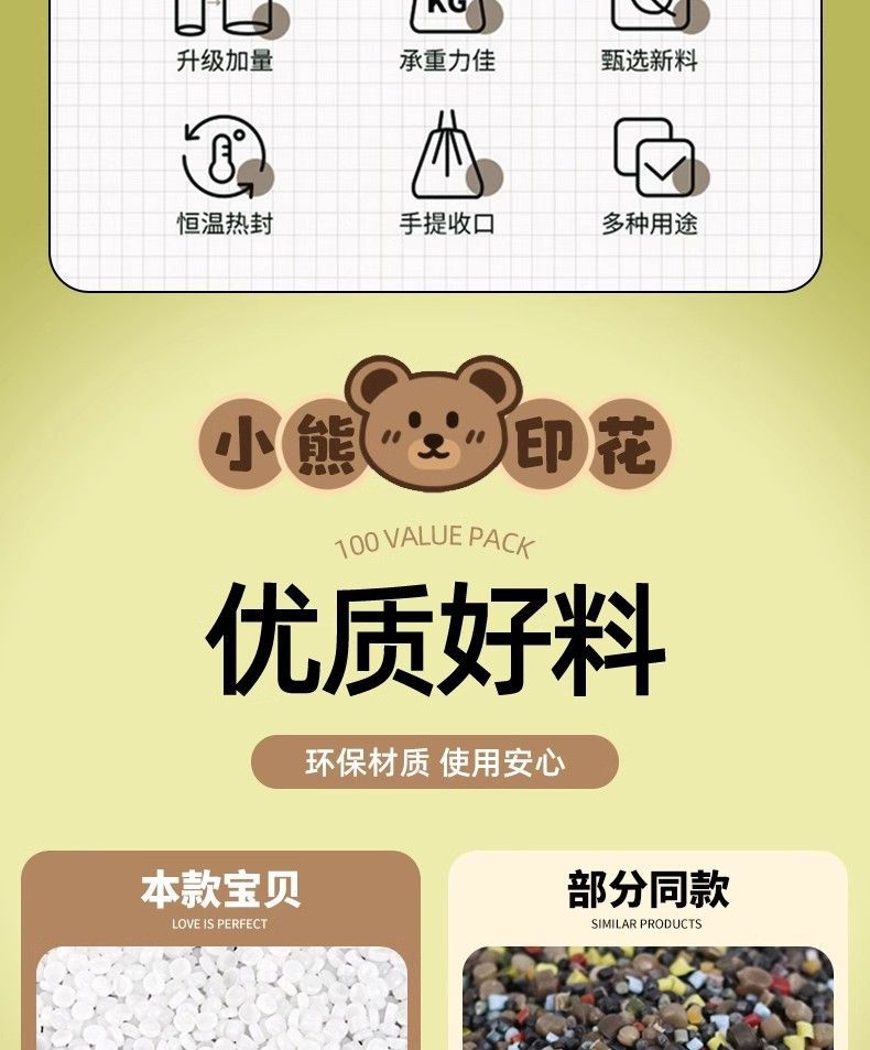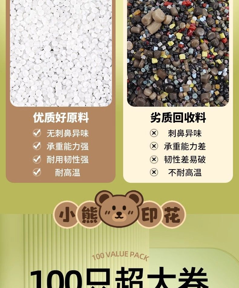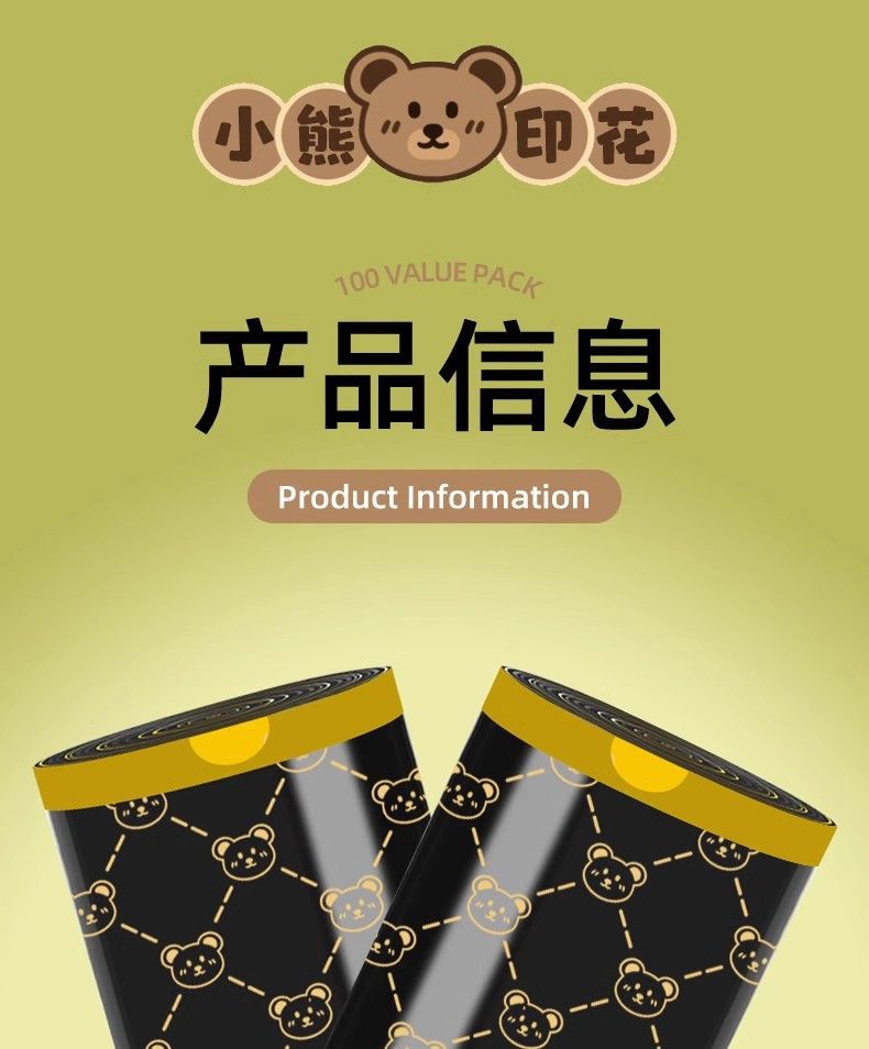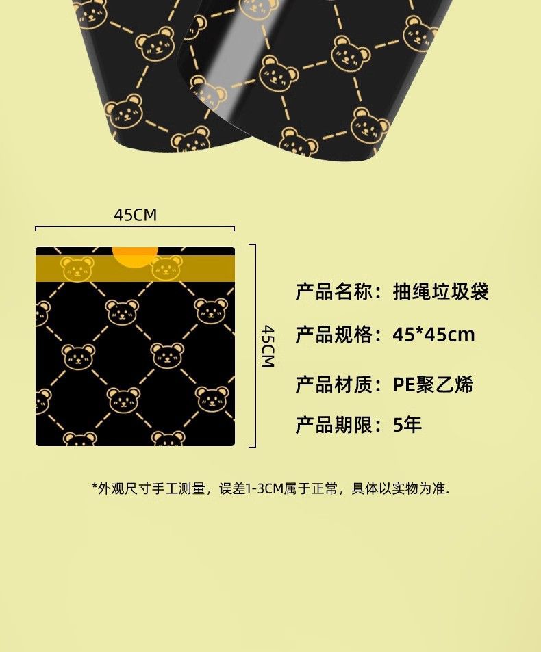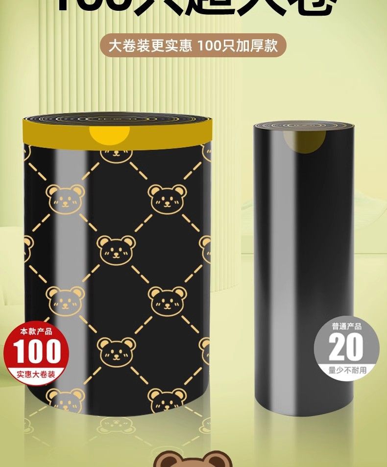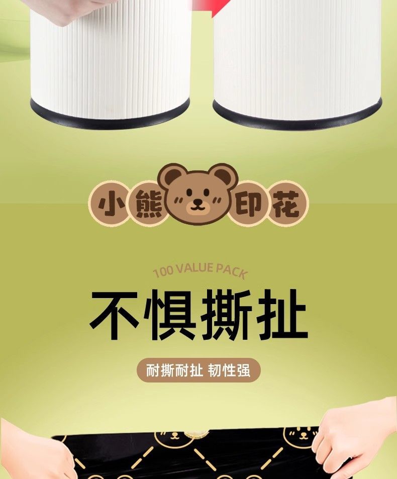 「高颜值!手提式」垃圾袋加厚手提式手提抽绳收口居家日用厨房宿舍一次性收纳整理小熊印花塑料袋