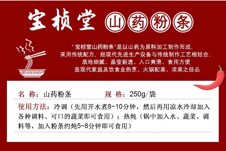 宝桢堂铁棍山药粉条12袋家庭装