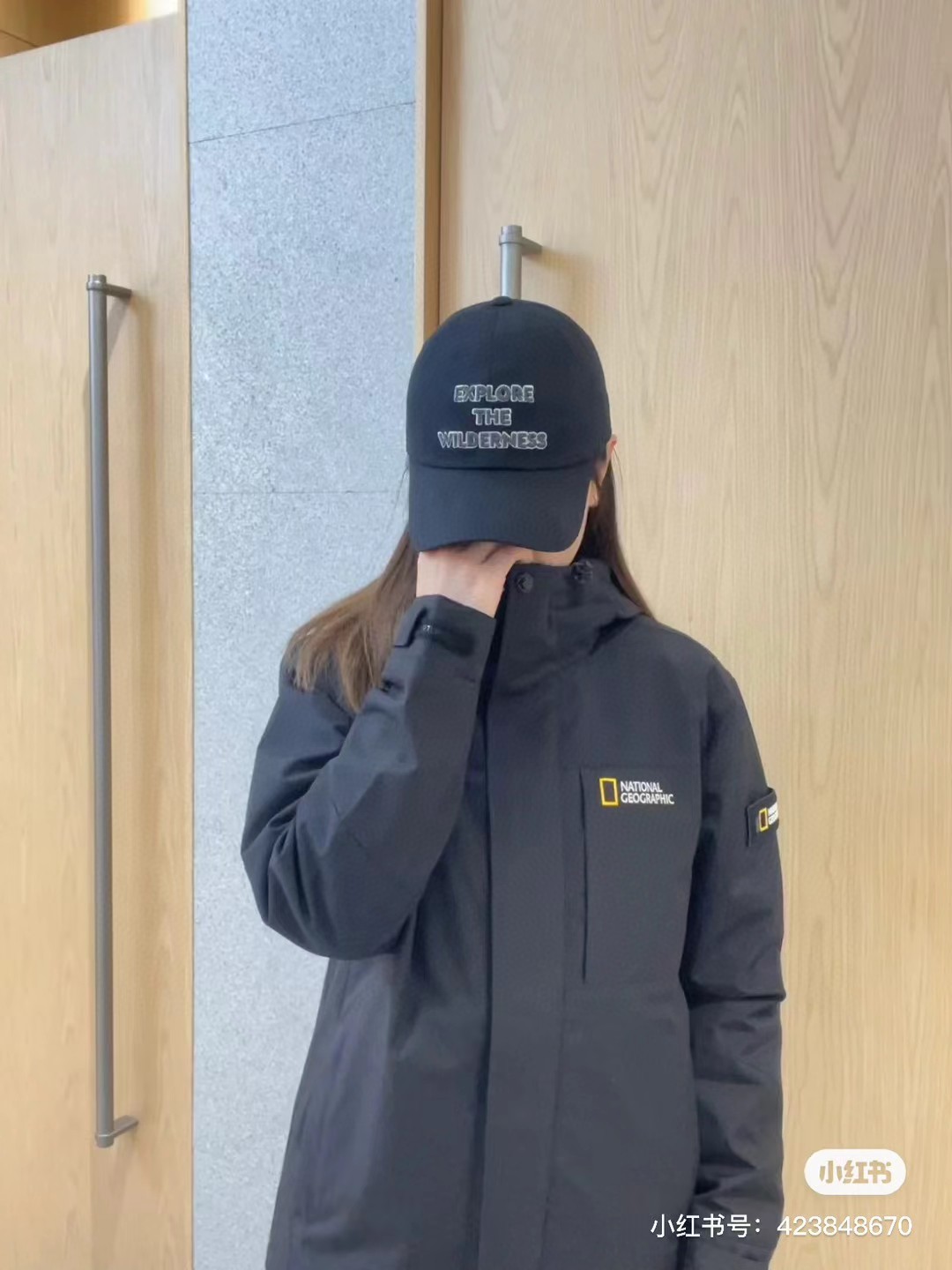 两层面料,好大三处高密度刺绣。帽子出的织带非常有质感,每一个配角都有 国家地理的logo。