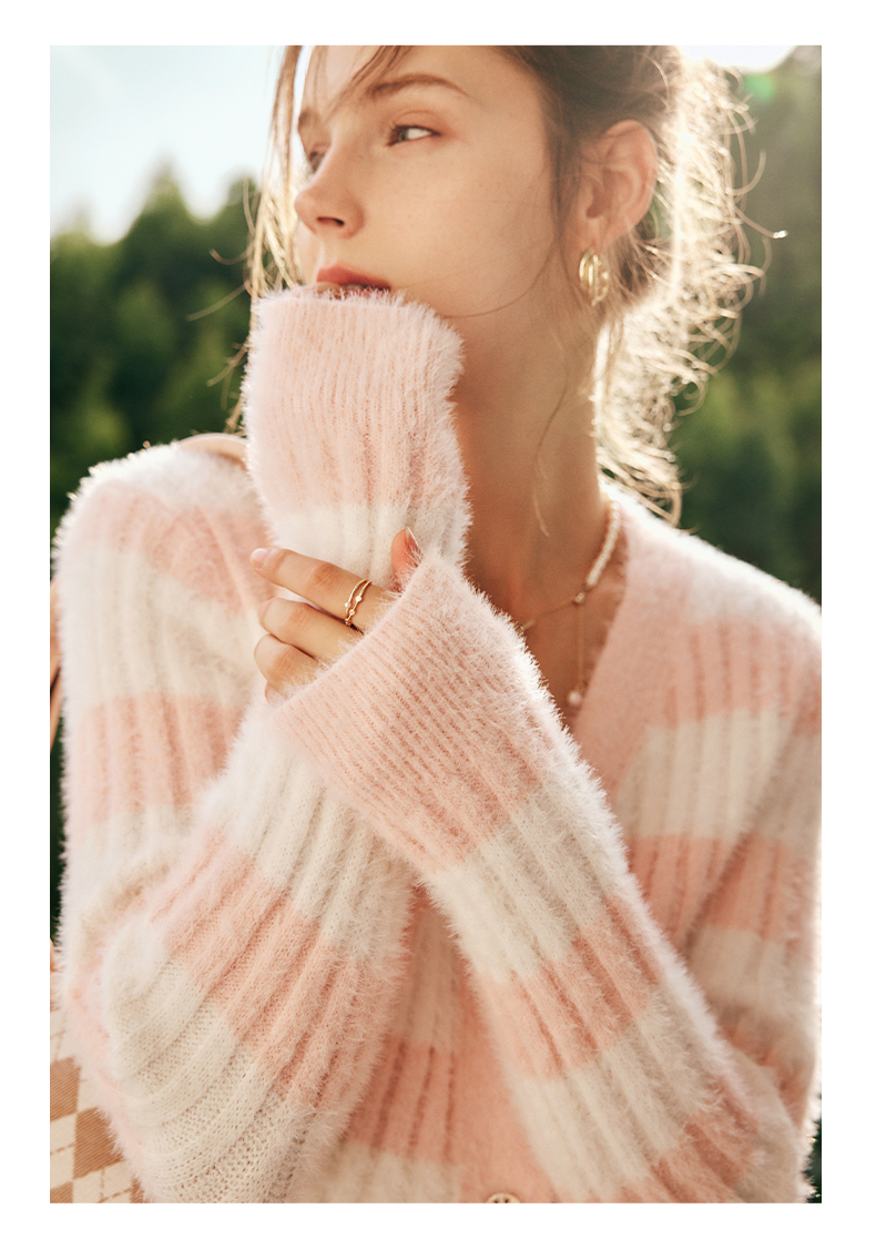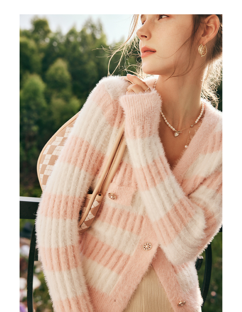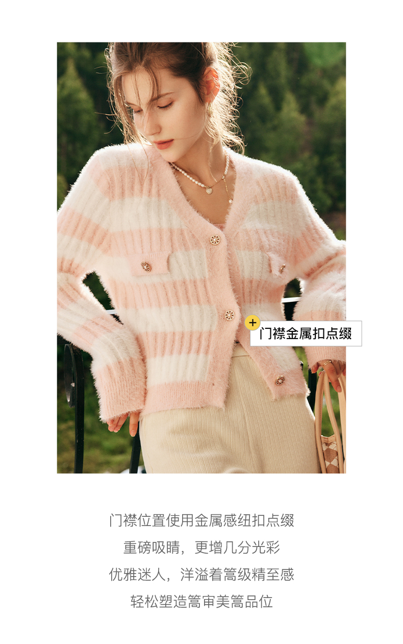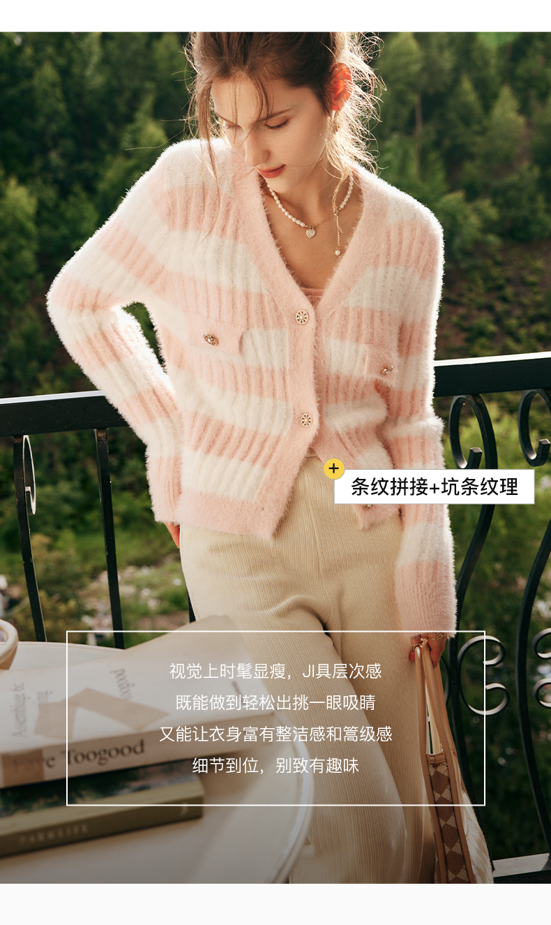 OLrain欧芮儿法式小香风毛衣外套女秋冬2022年新款条纹马海毛开衫