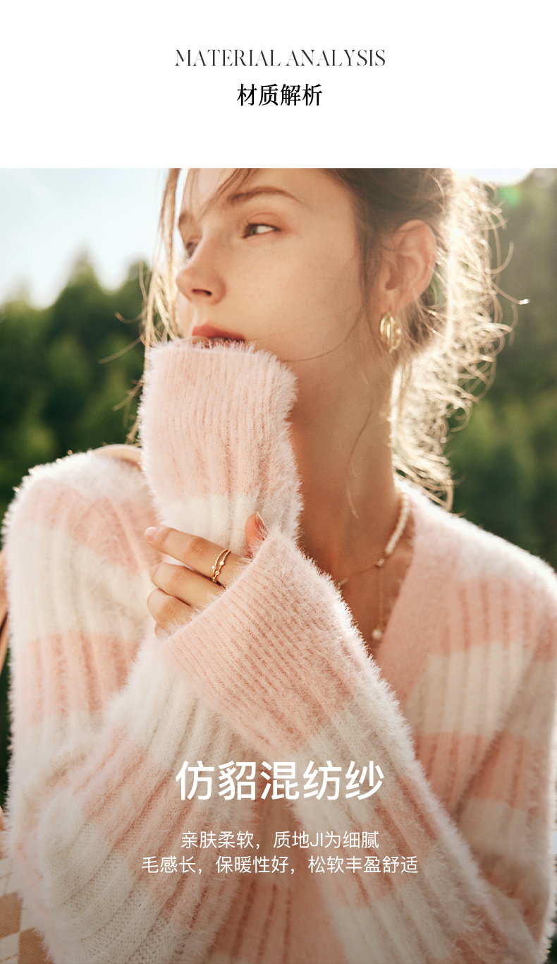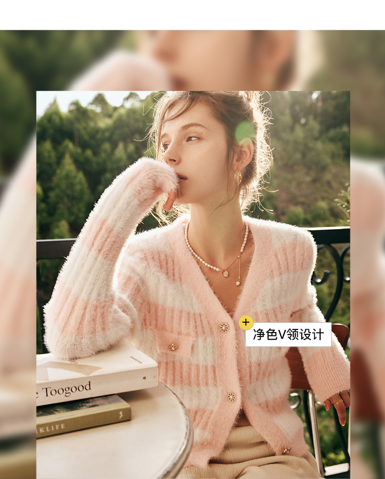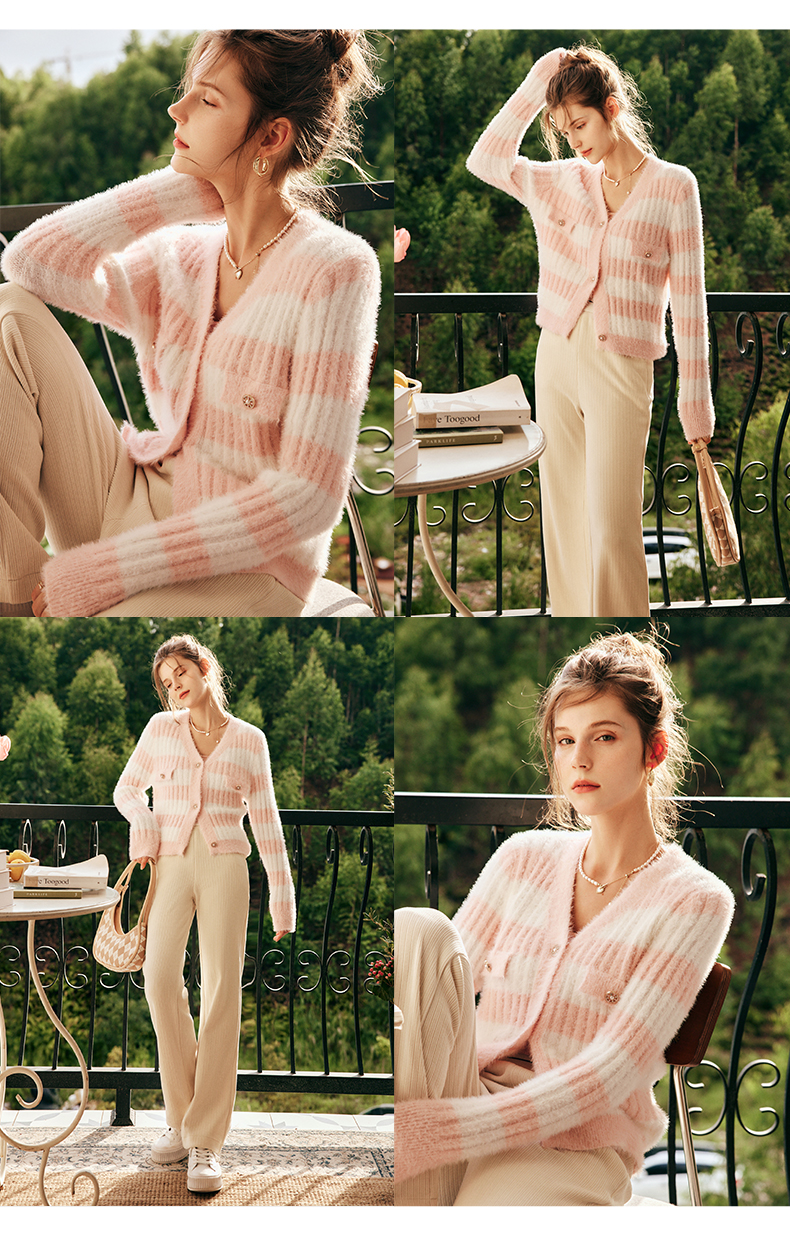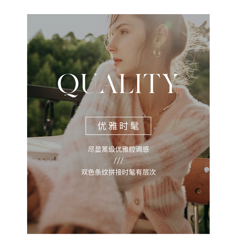 OLrain欧芮儿法式小香风毛衣外套女秋冬2022年新款条纹马海毛开衫