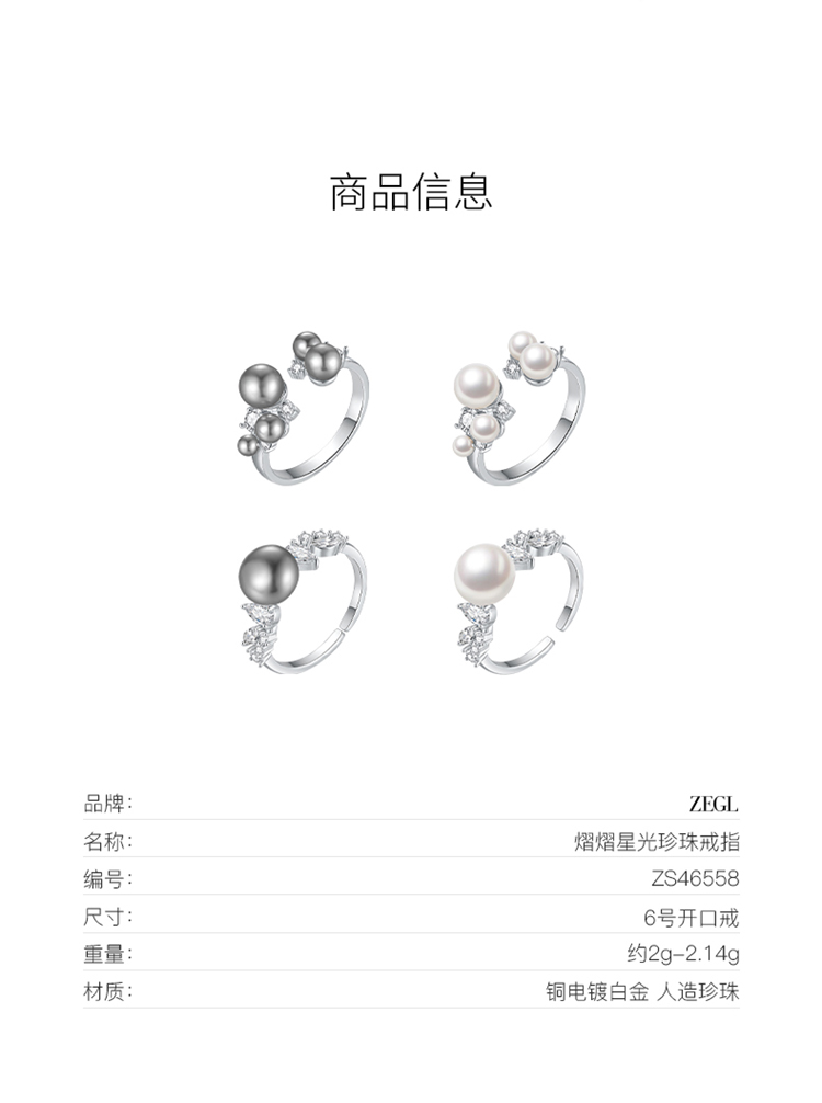 ZEGL法式人造珍珠戒指女小众设计轻奢高级感指环时尚个性食指戒子