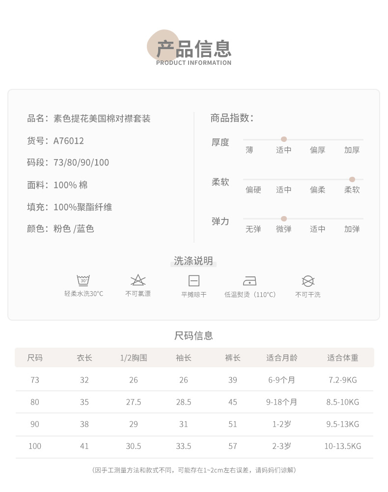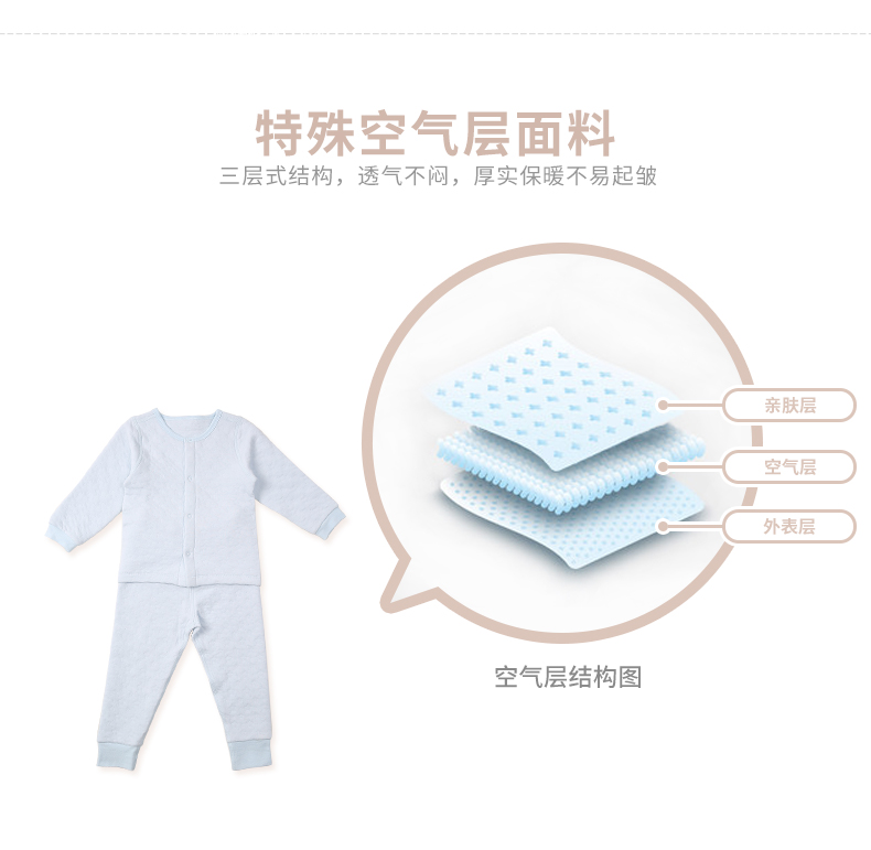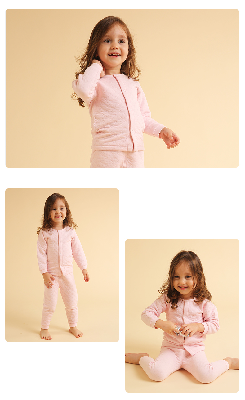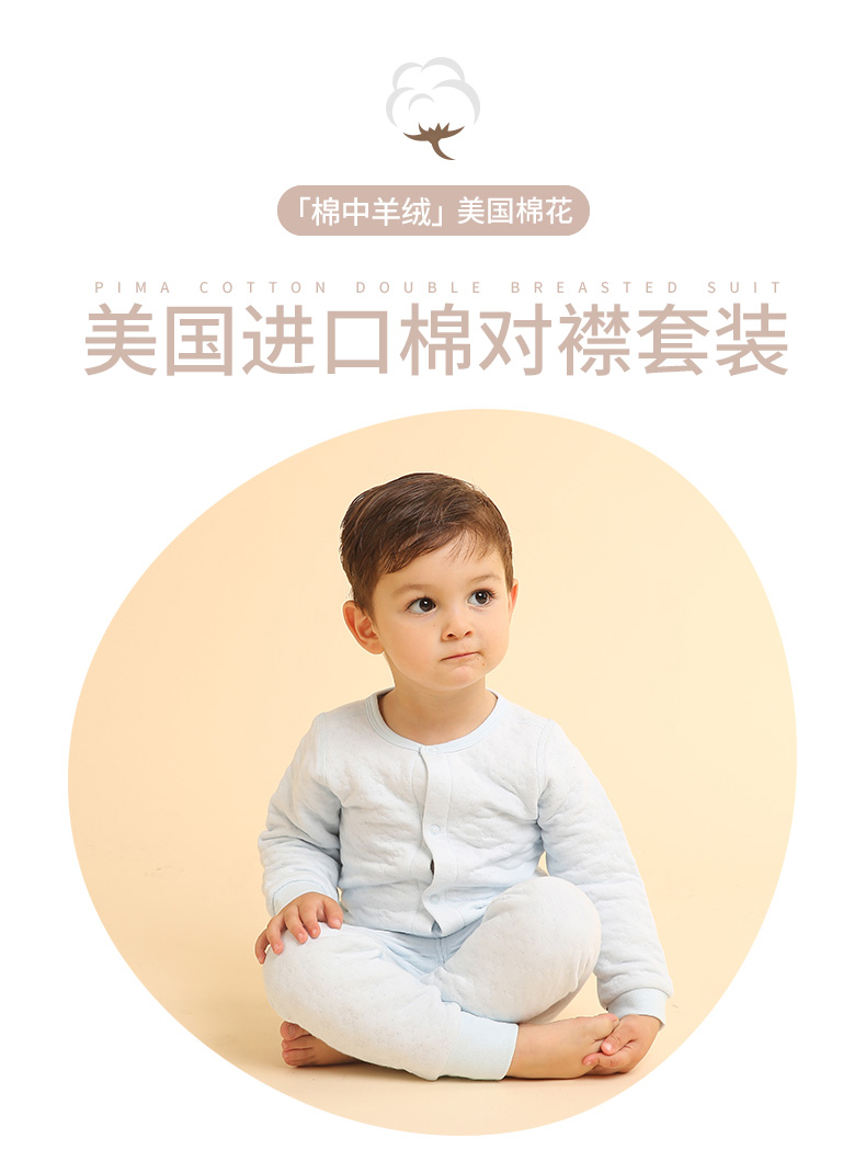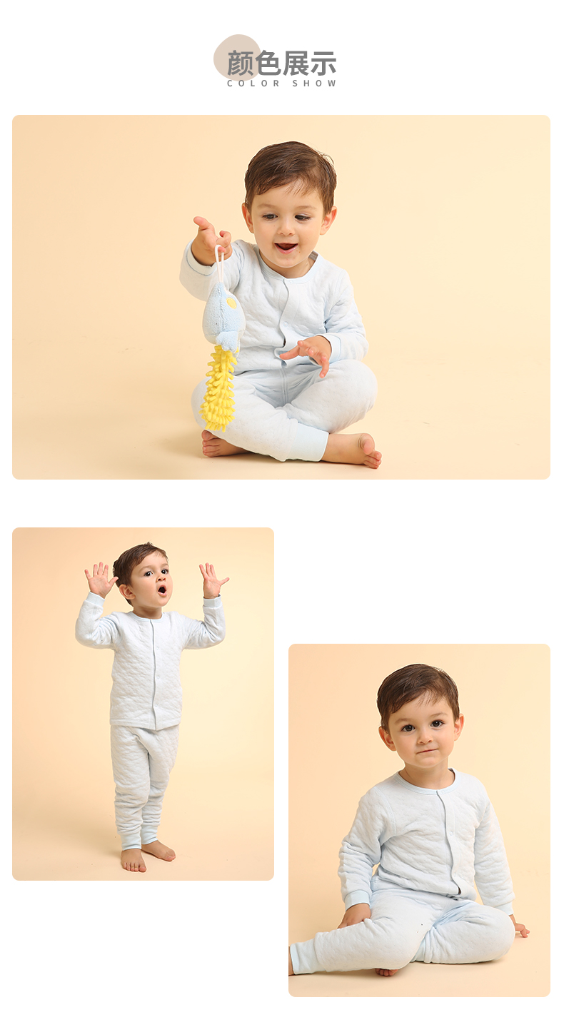 i-baby素色提花美国棉花空气层儿童内衣套装宝宝家居服幼儿套装厚