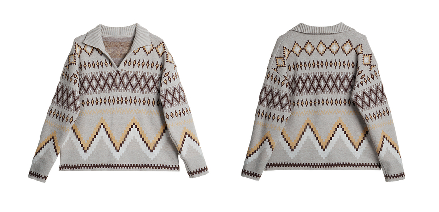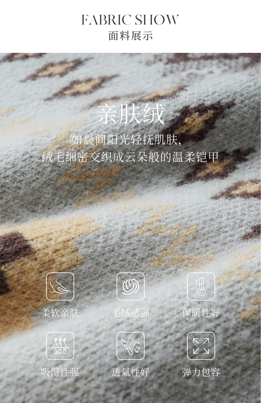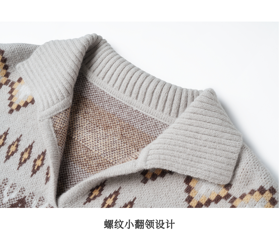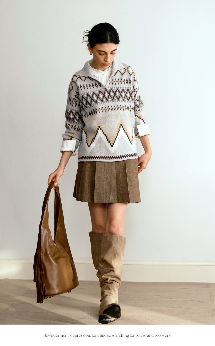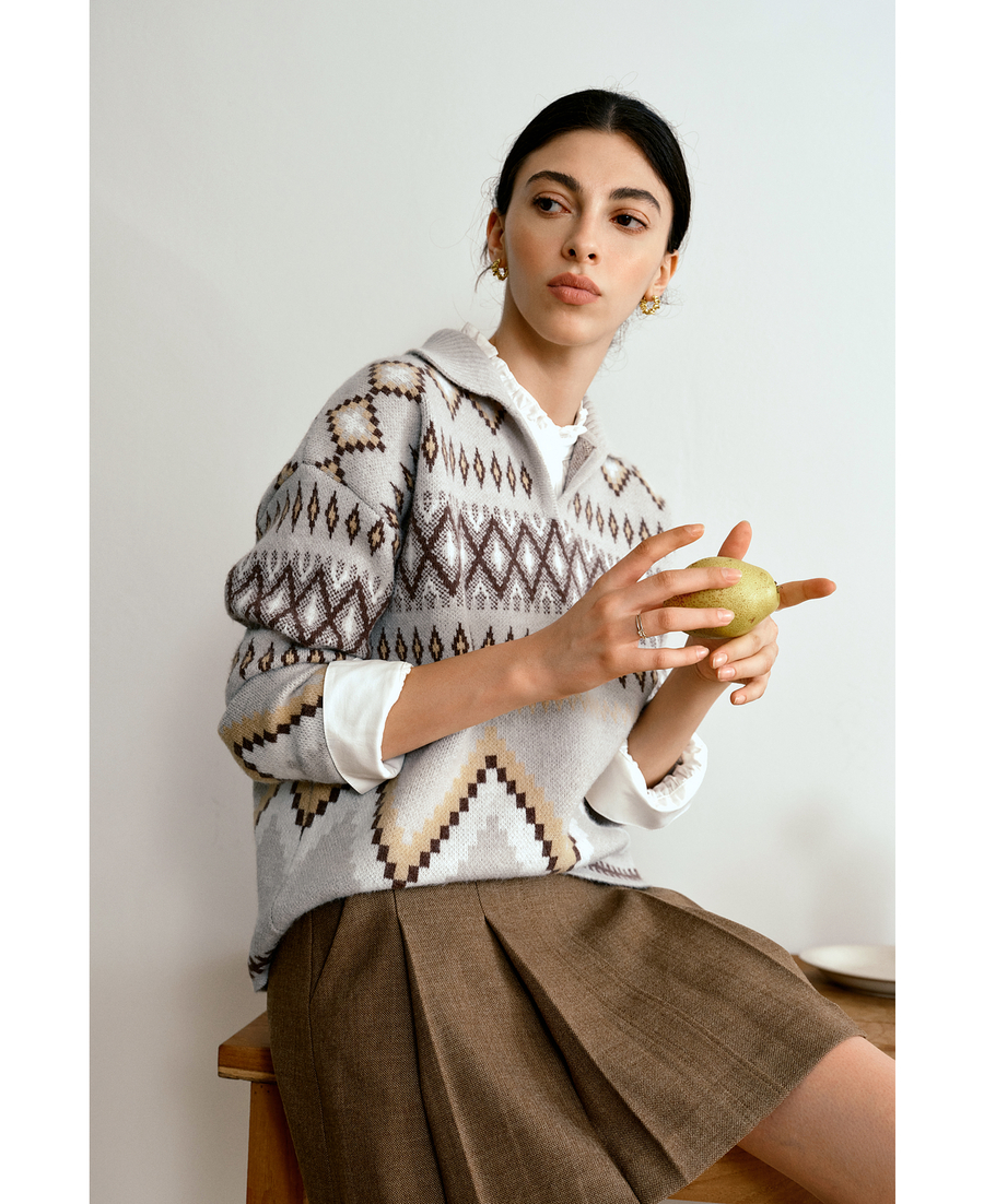 OLrain欧芮儿2025新款女秋季费尔岛复古几何毛织套头衫宽松上衣