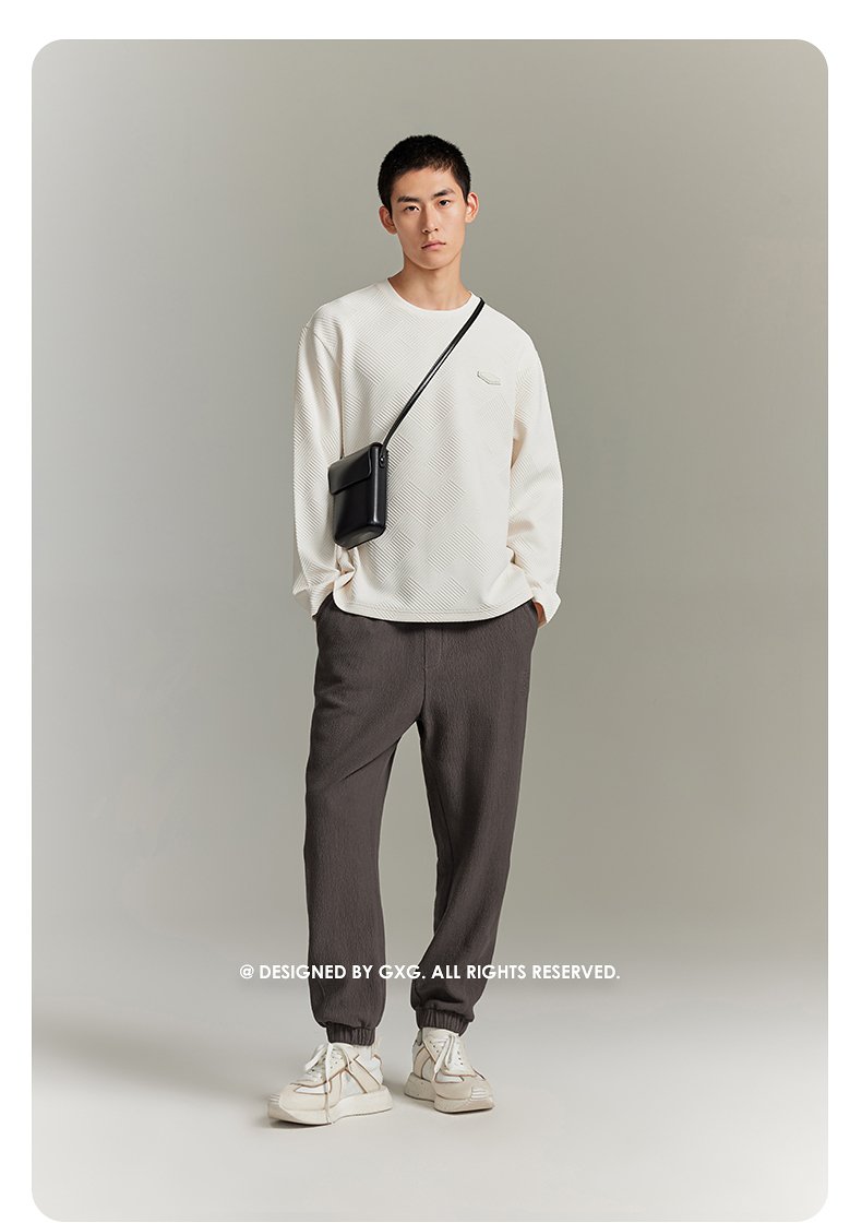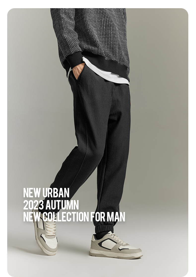 GXG男装 城市回溯系列双色肌理感宽松休闲收口长裤 秋季热卖