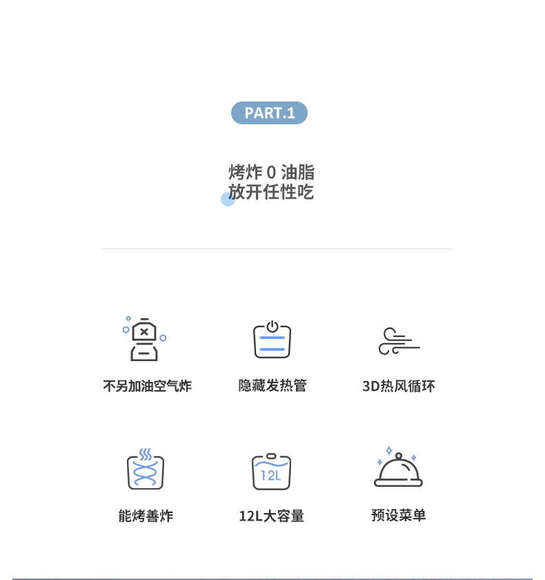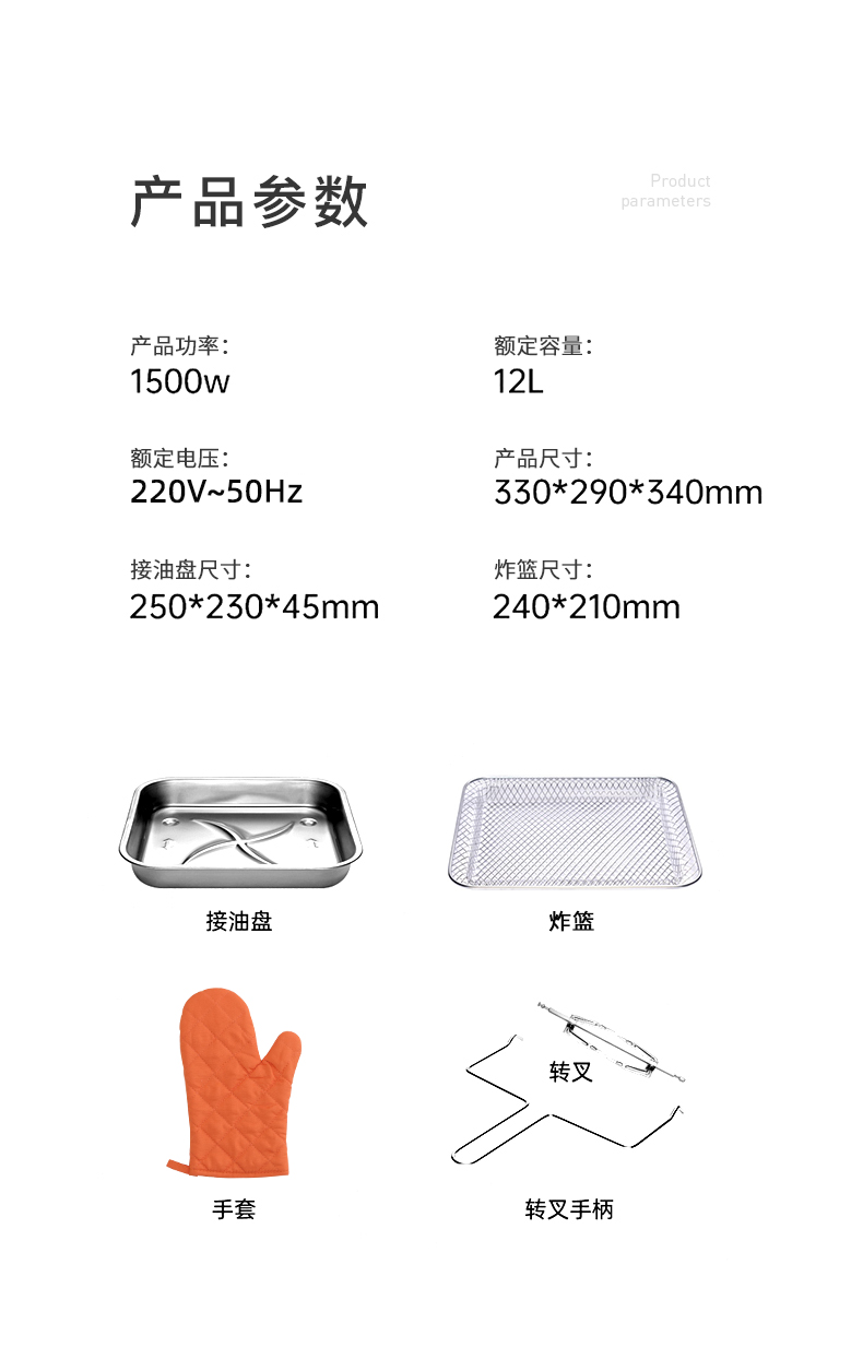 西屋(Westinghouse)空气炸锅烤箱一体机家用多功能烘焙12升大容量无油低脂电炸锅 WAF-LZ1210C