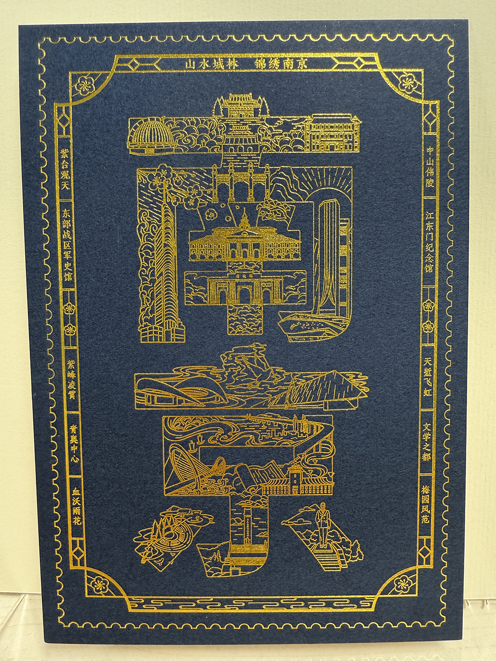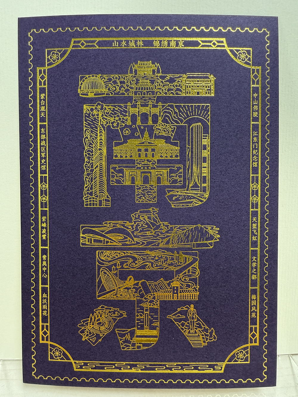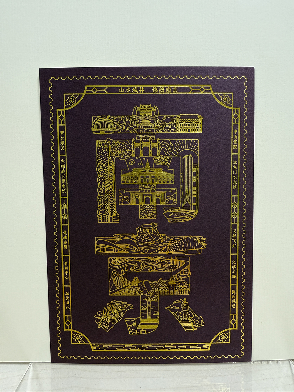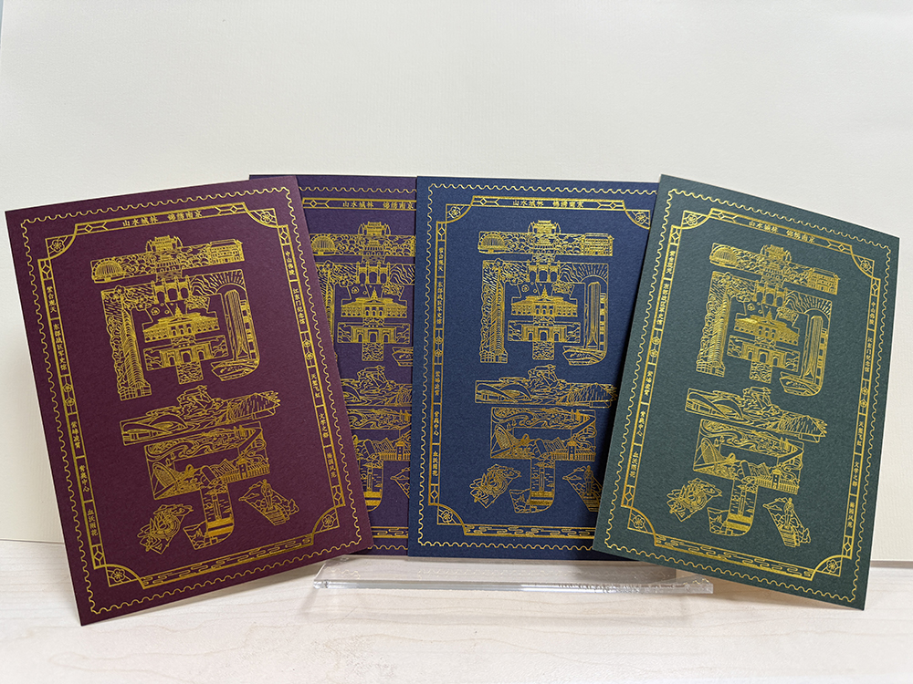 《南京》烫金明信片(红、紫、绿、蓝四色)一套四枚