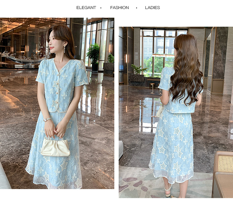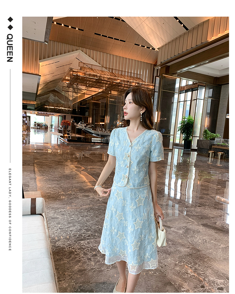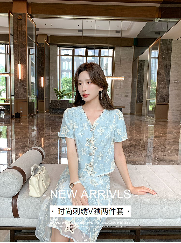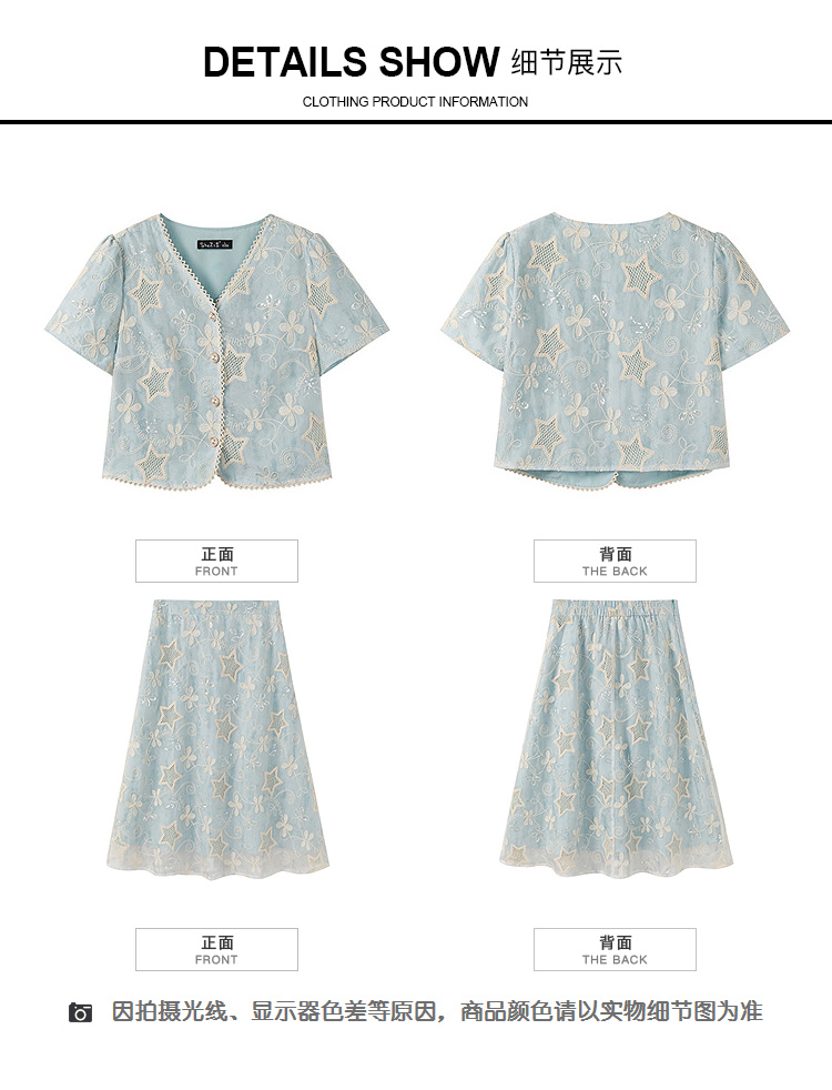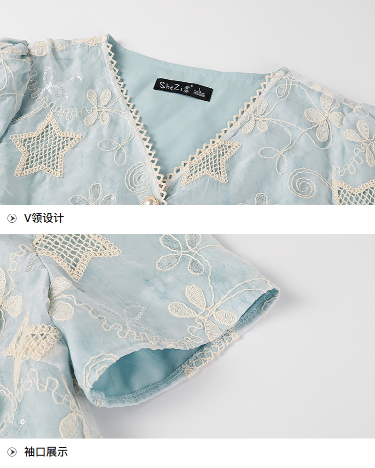 奢姿大码女装2026夏季时尚V领镂空套装胖妹妹减龄星星刺绣两件套9952922135
