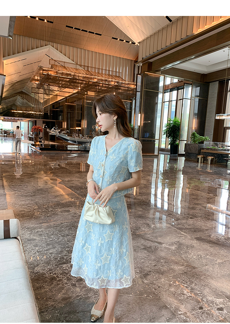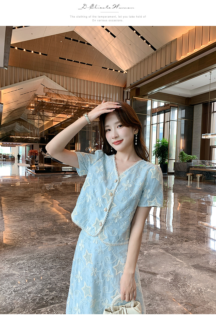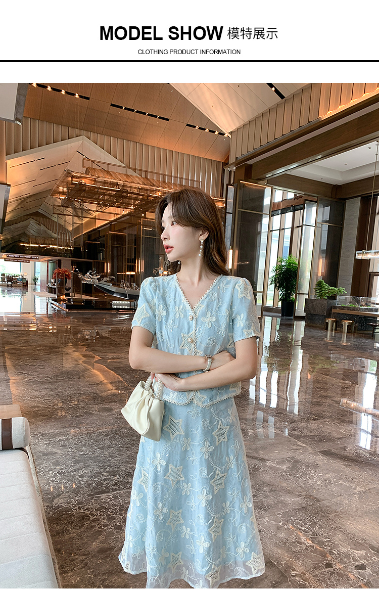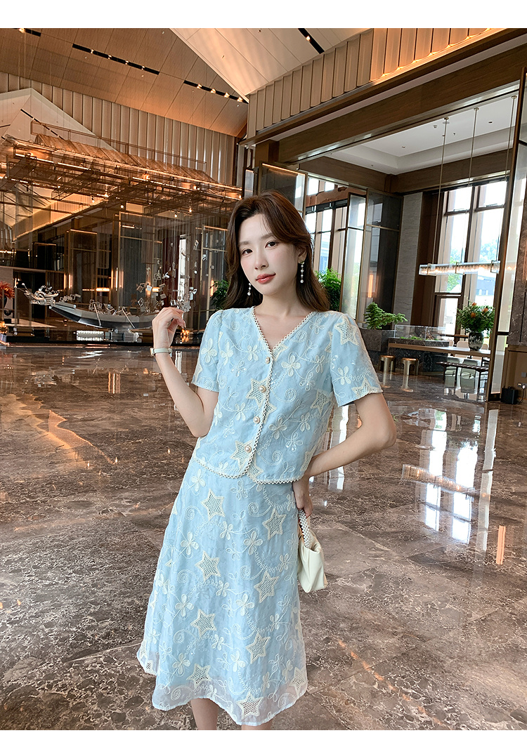 奢姿大码女装2026夏季时尚V领镂空套装胖妹妹减龄星星刺绣两件套9952922135
