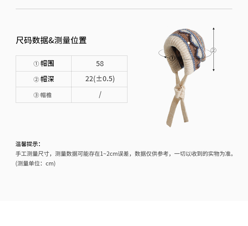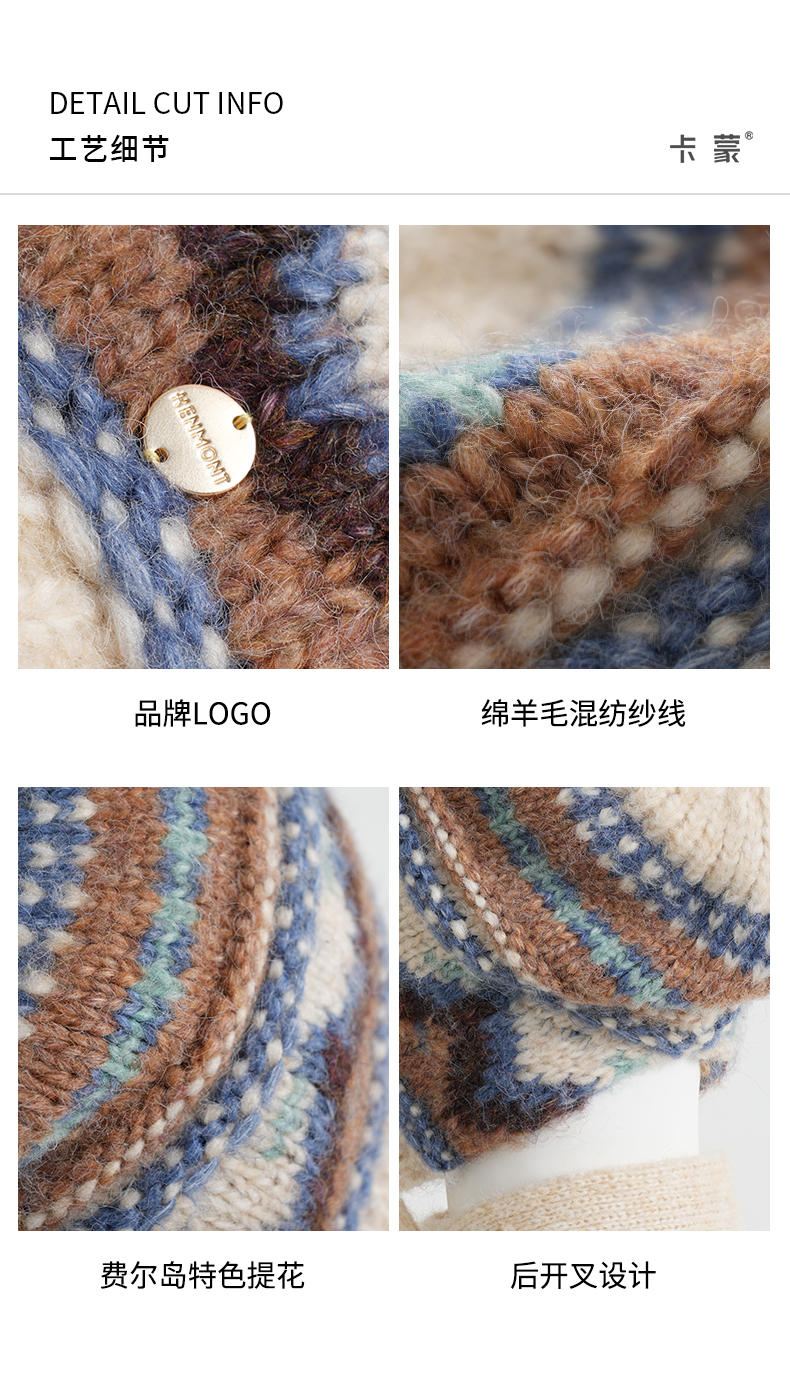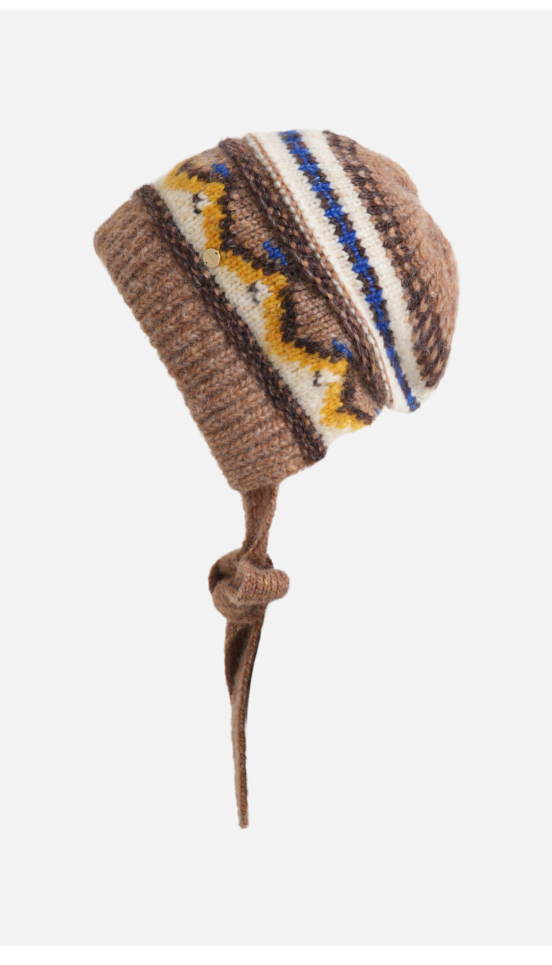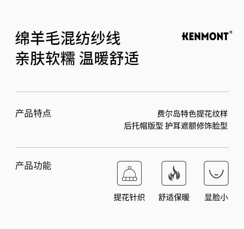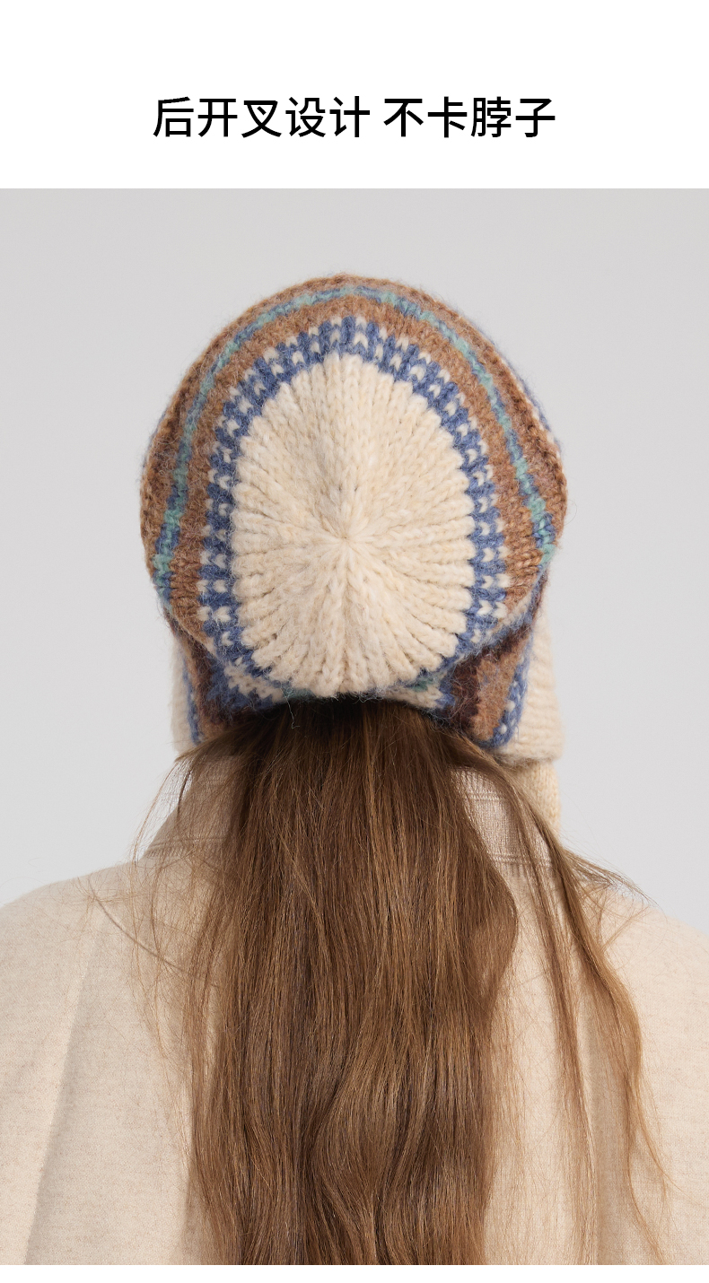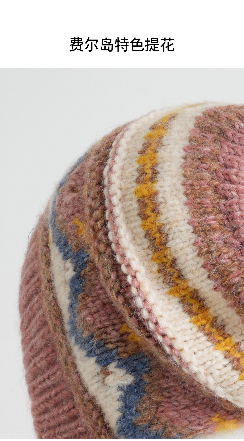 *【卡蒙】秋冬女款加厚保暖护耳系带费尔岛特色提花针织帽KM-9614