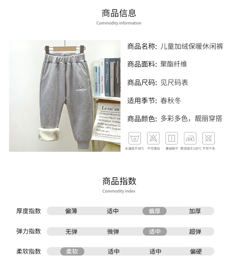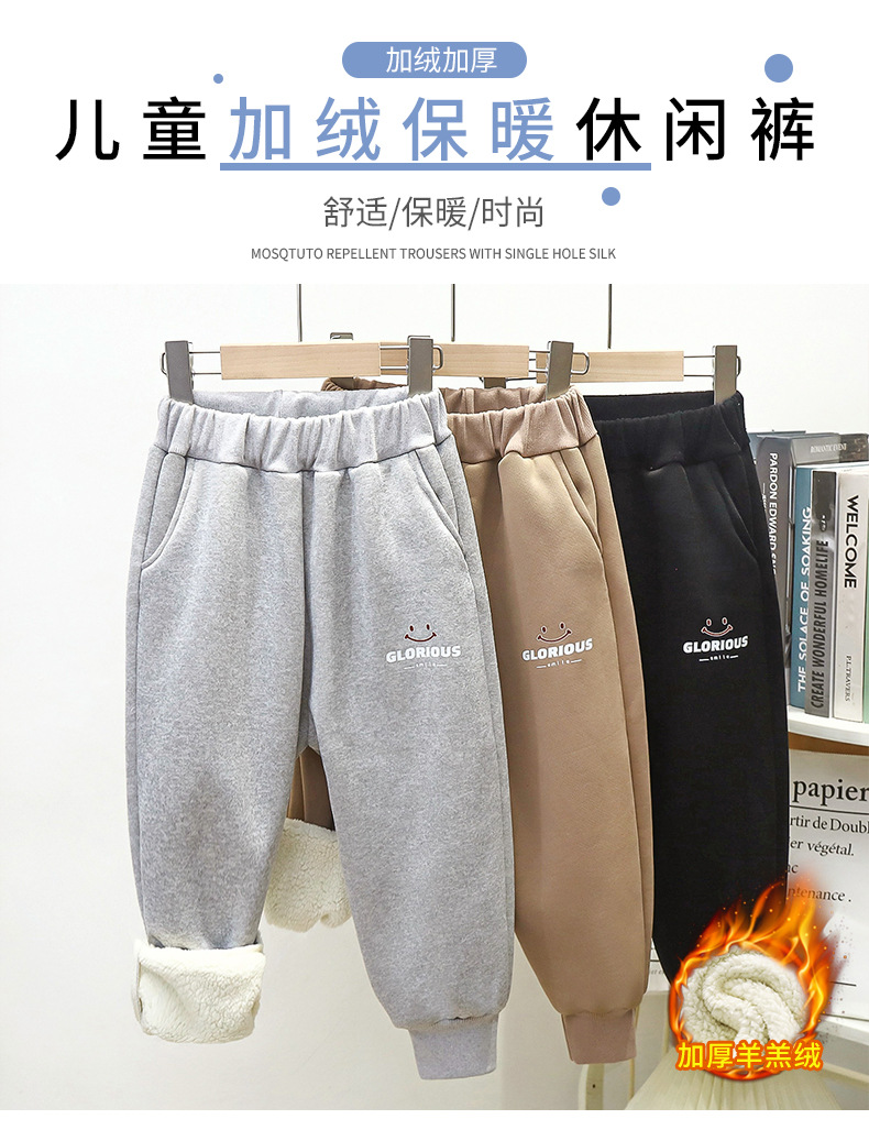 儿童加绒裤加厚裤子加绒冬季新款男童保暖裤宝宝外穿卫裤童裤童装