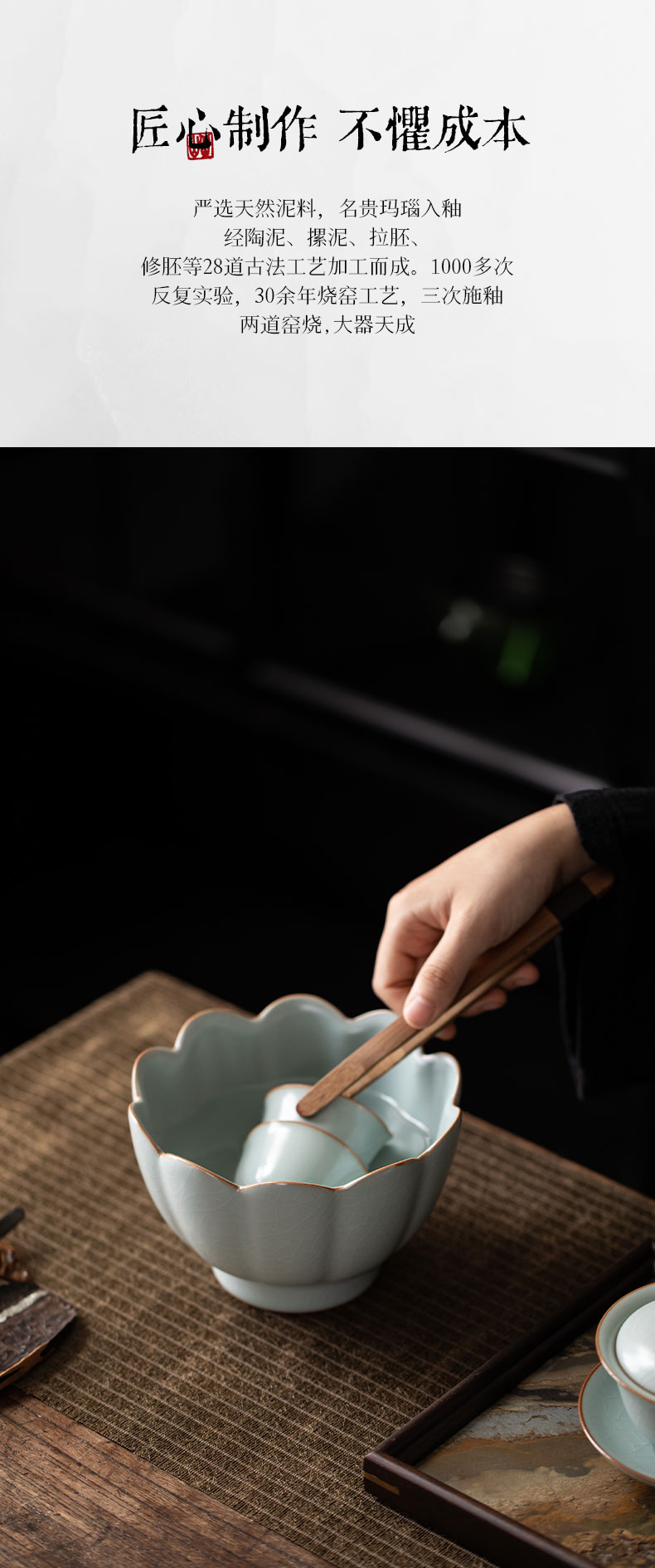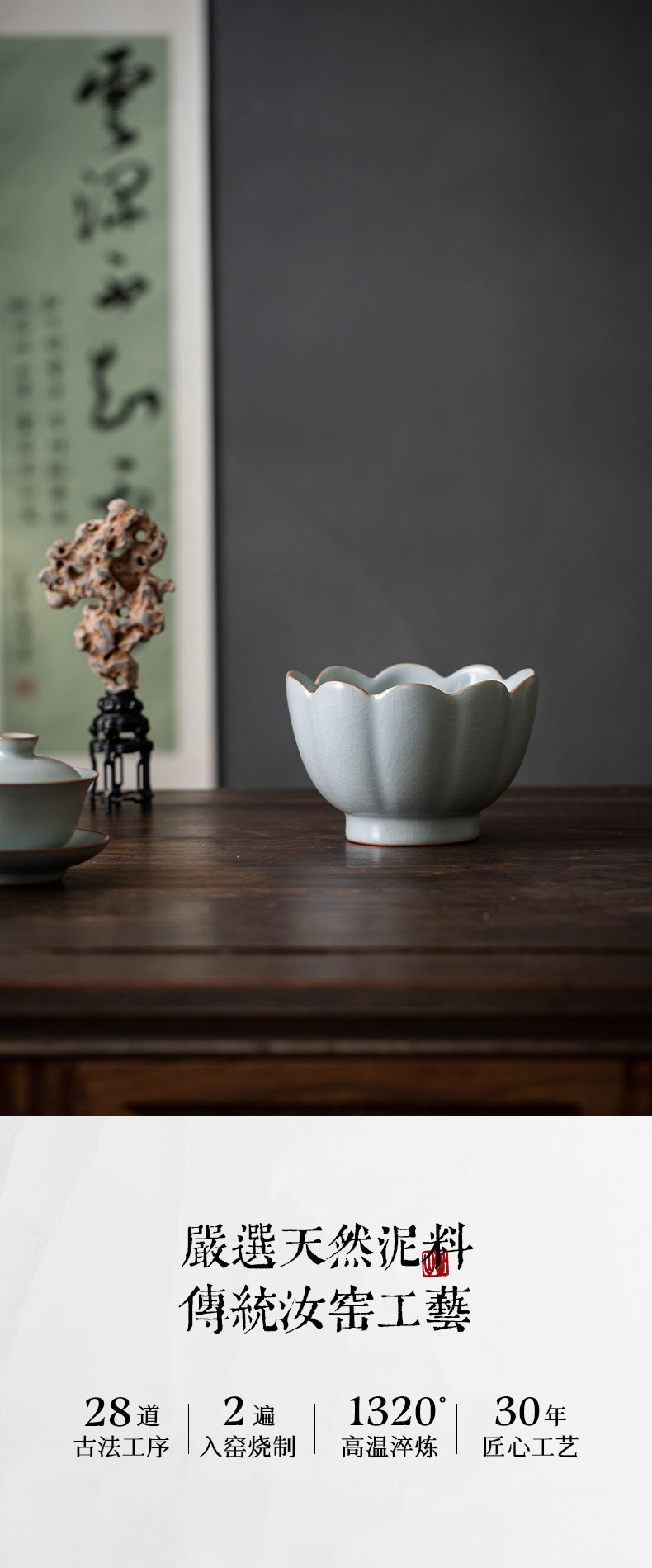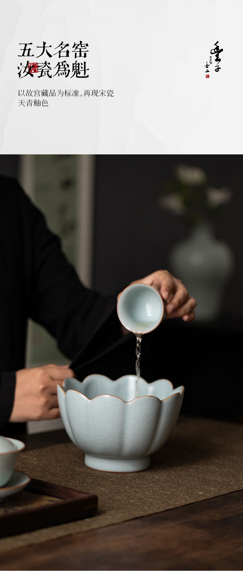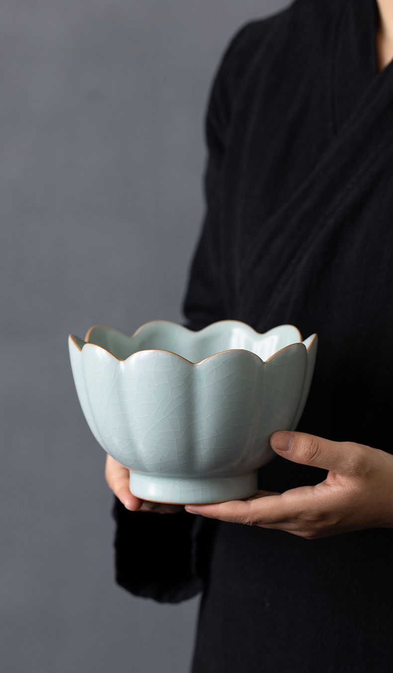 【丰子汝窑】莲花温碗 天青汝窑 茶洗 特大号家用笔洗水盂收纳碗