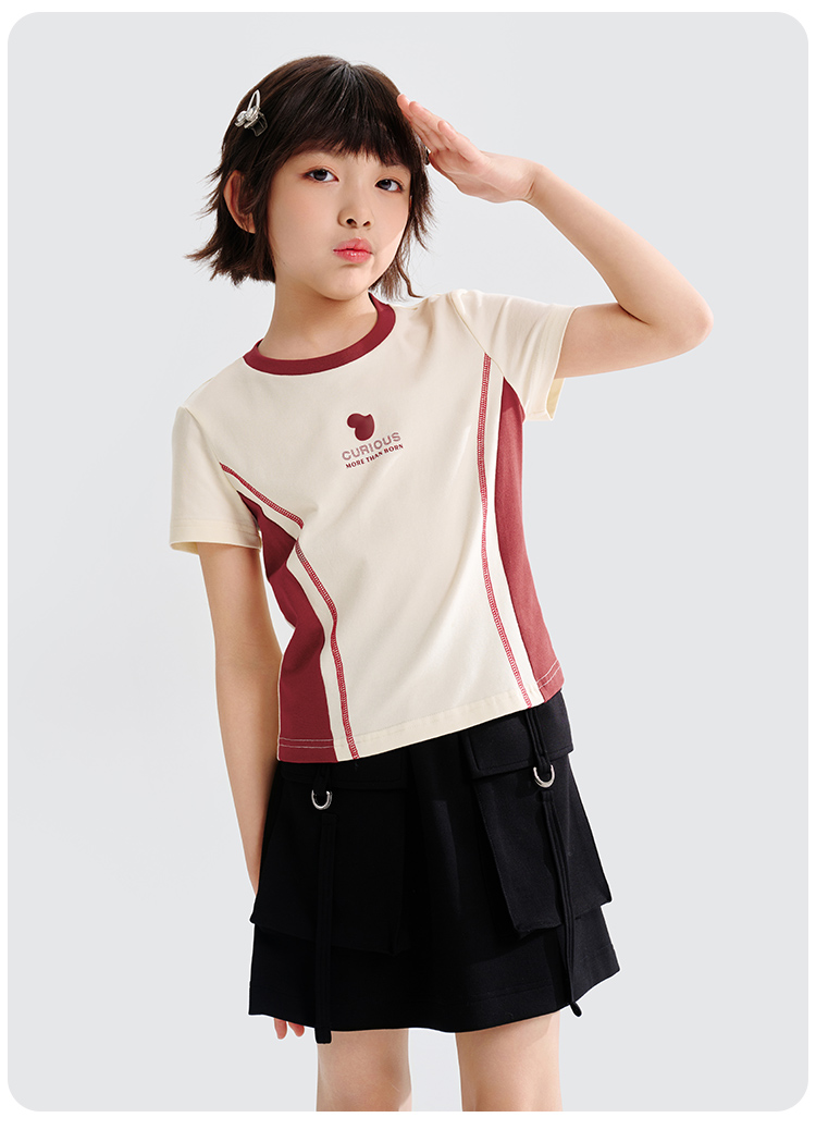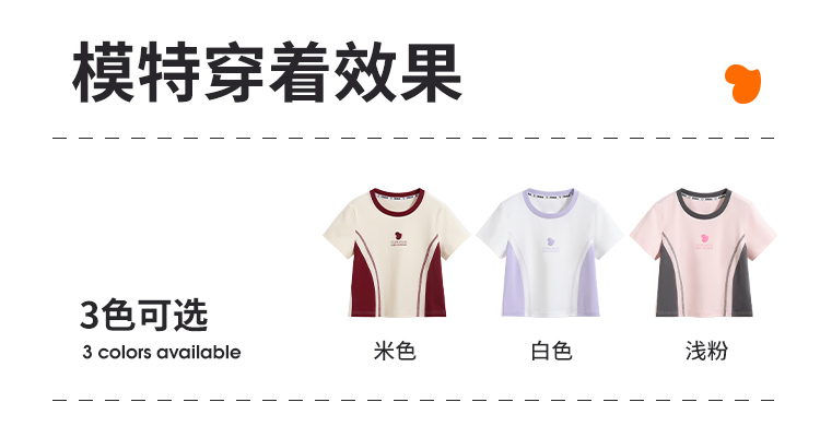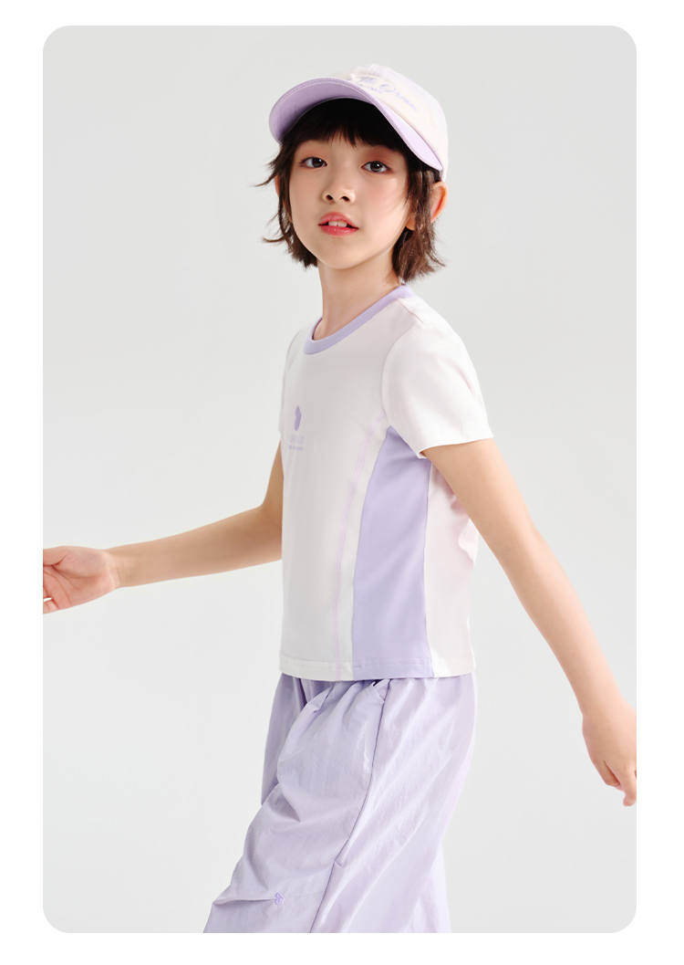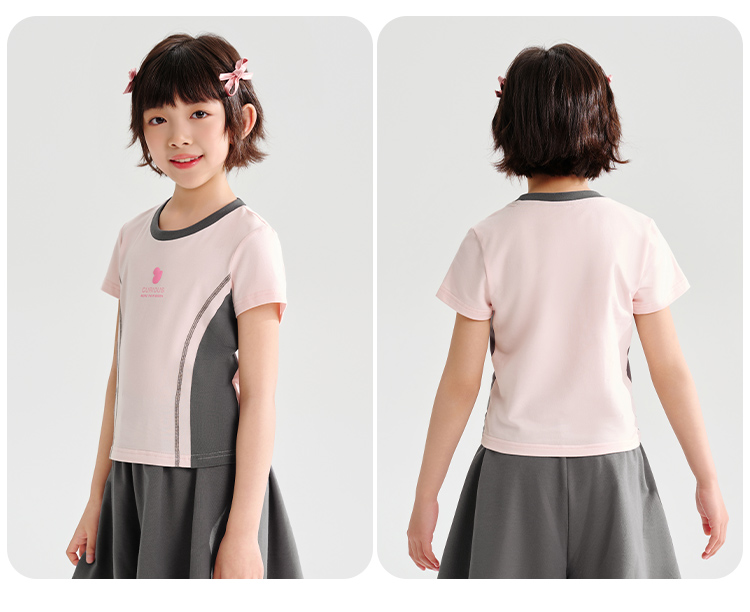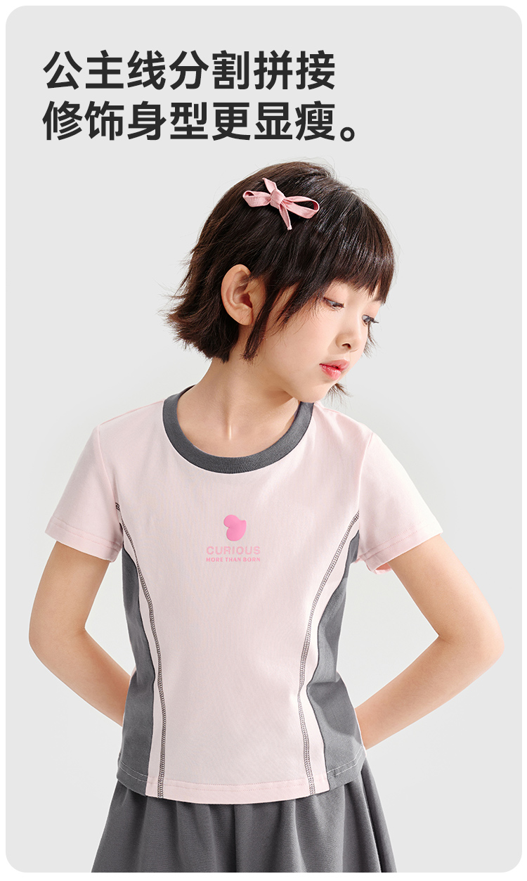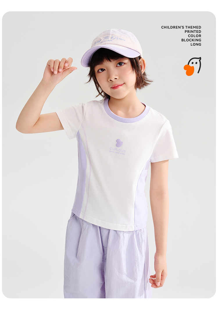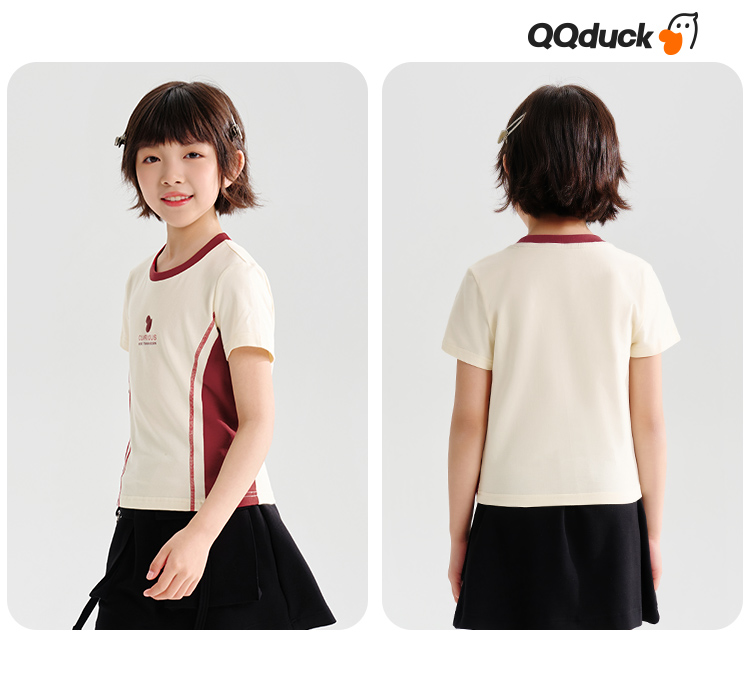 【120-165】【可可鸭】女童夏季短袖T恤休闲短款上衣(95%棉 5%氨纶)