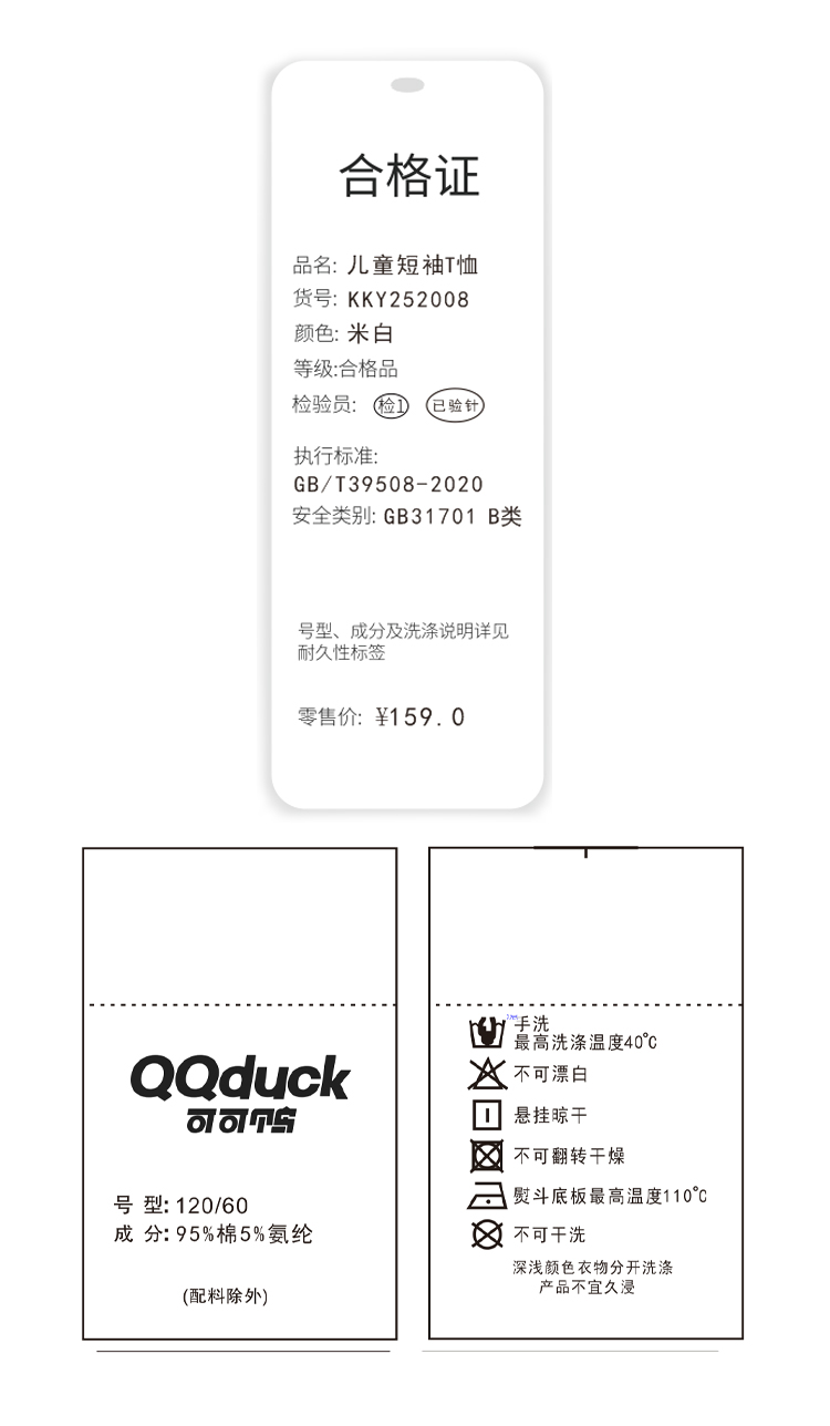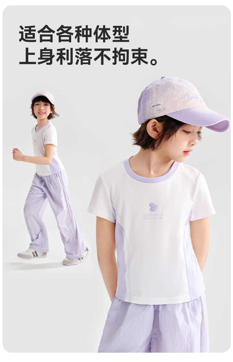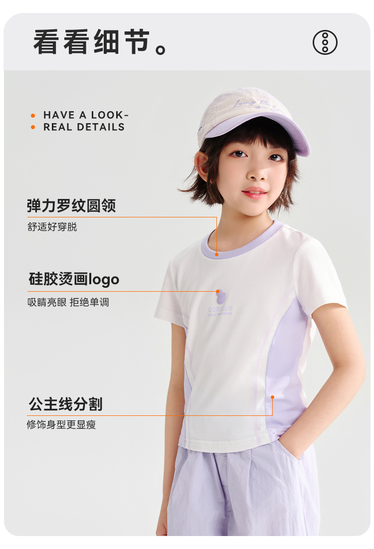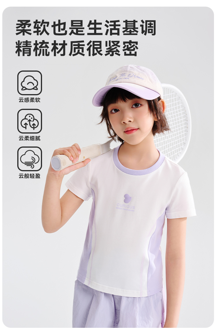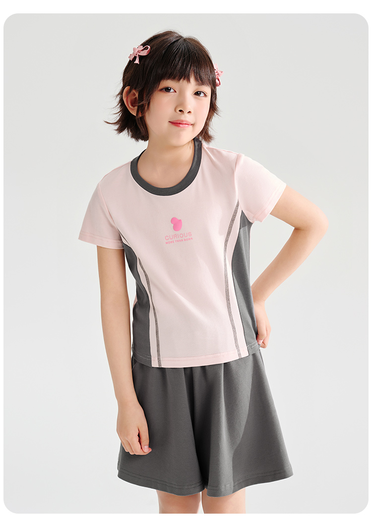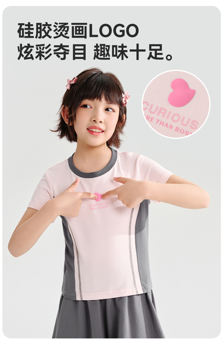 【120-165】【可可鸭】女童夏季短袖T恤休闲短款上衣(95%棉 5%氨纶)